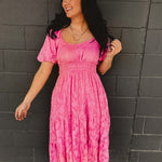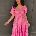 Textured Embroidered Midi Dress - Hibiscus