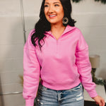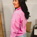 Fleece Half Zip Sweatshirt - Candy Pink