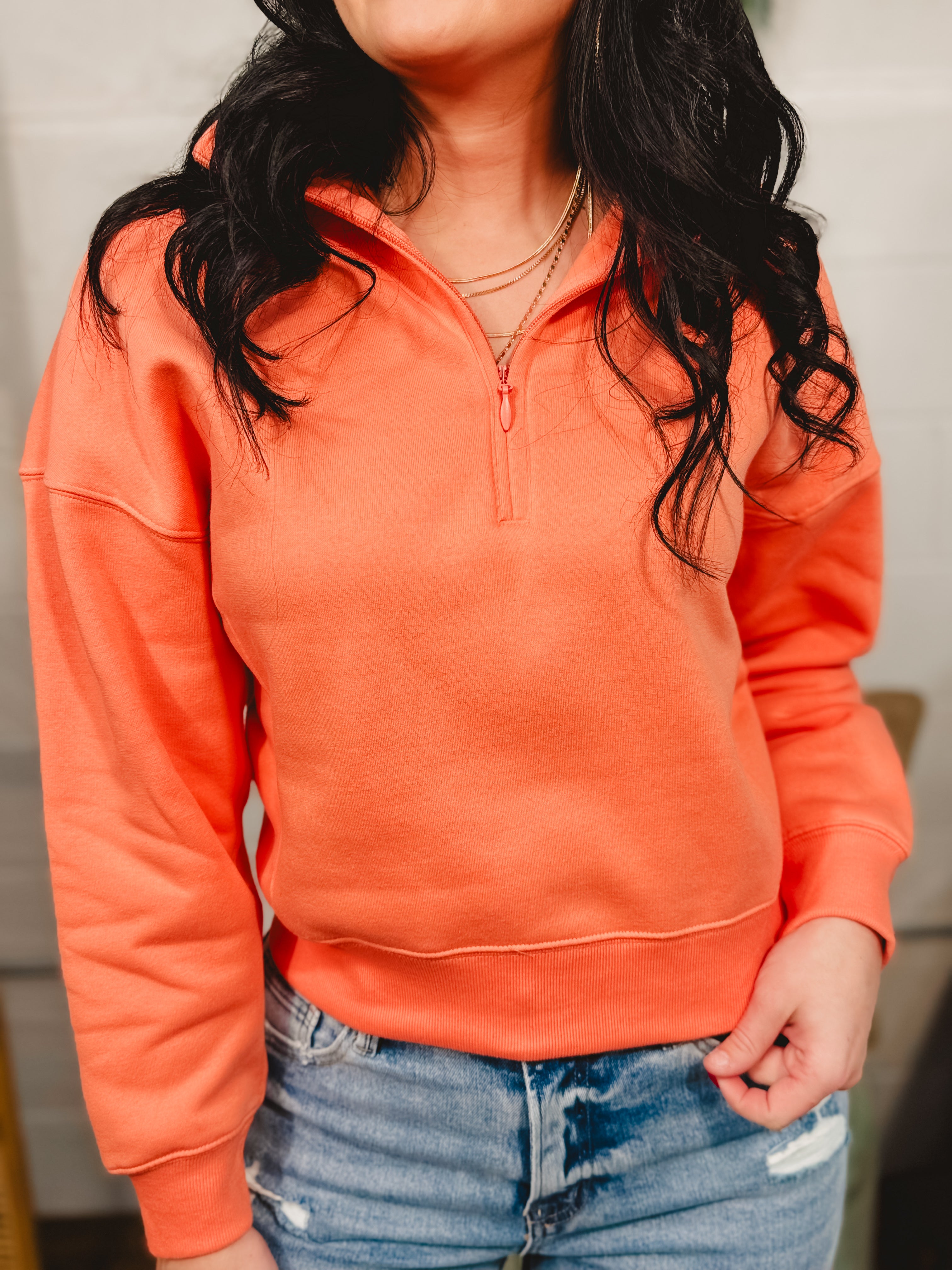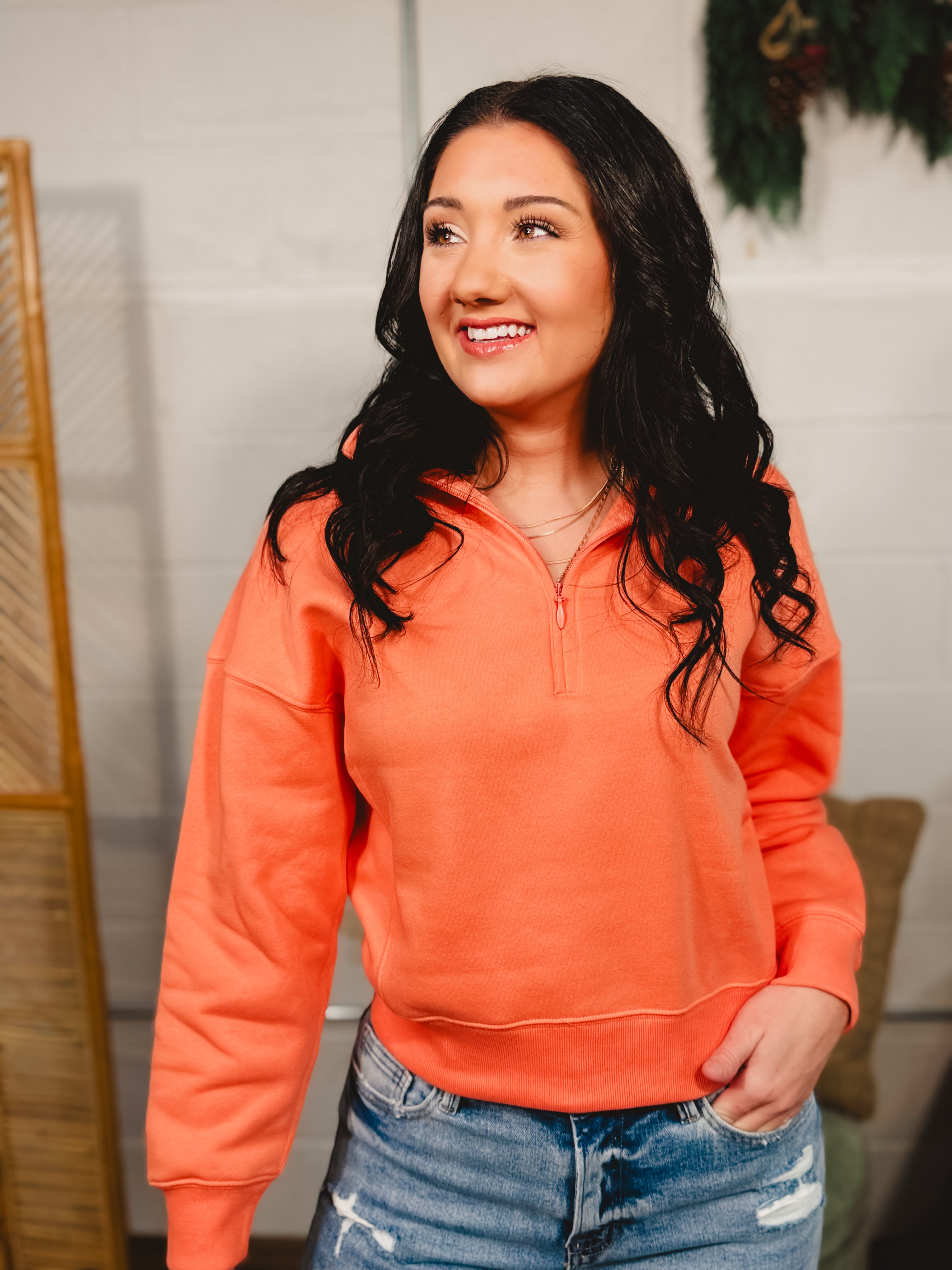 Bright, soft, and effortlessly comfy, this coral fleece half-zip brings a cheerful twist to a classic everyday layer. Whether zipped up for warmth or left open for a laid-back vibe, it’s a piece you’ll reach for again and again.