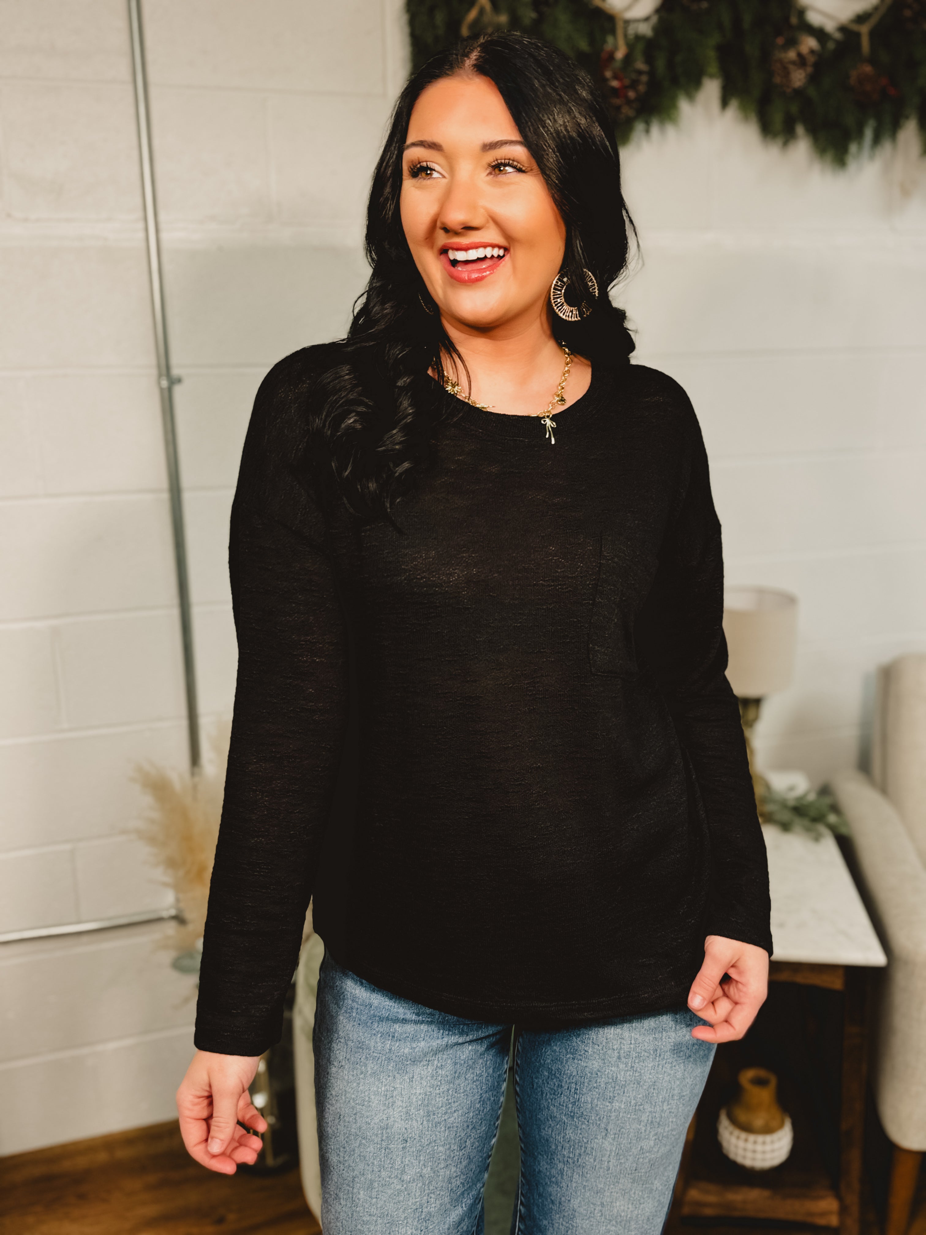 Classic, effortless, and endlessly versatile—this black long sleeve pocket tee is a must-have staple for every closet. Soft, sleek, and perfect for layering, it’s the piece you’ll reach for day after day.