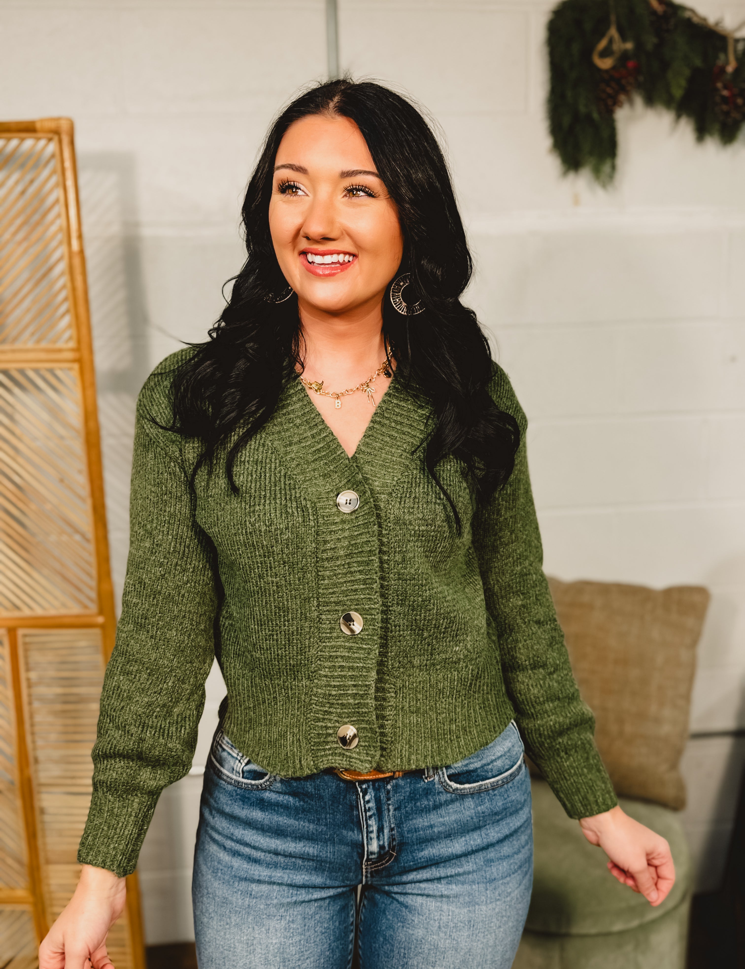 Button Front Sweater Cardigan - Heather Olive