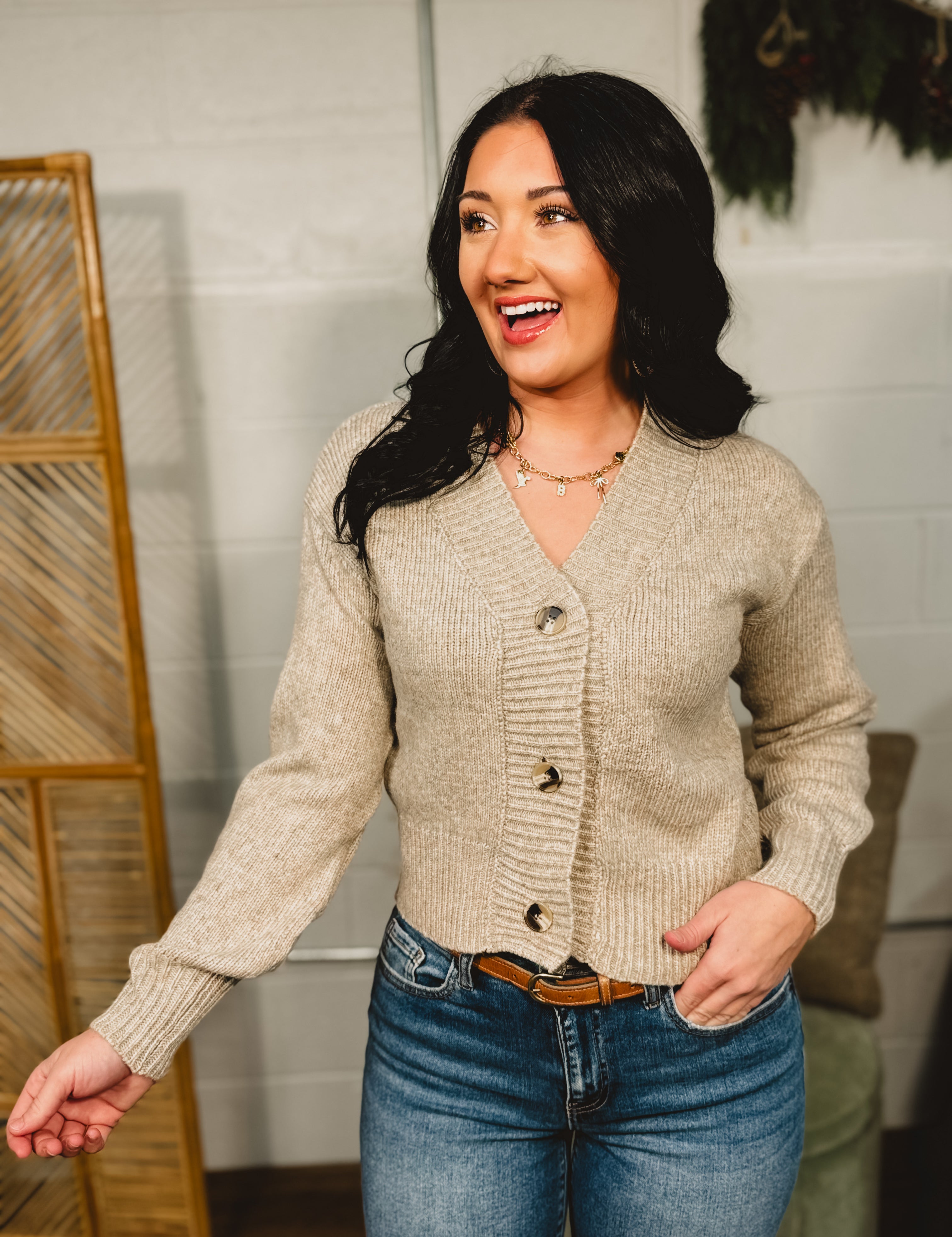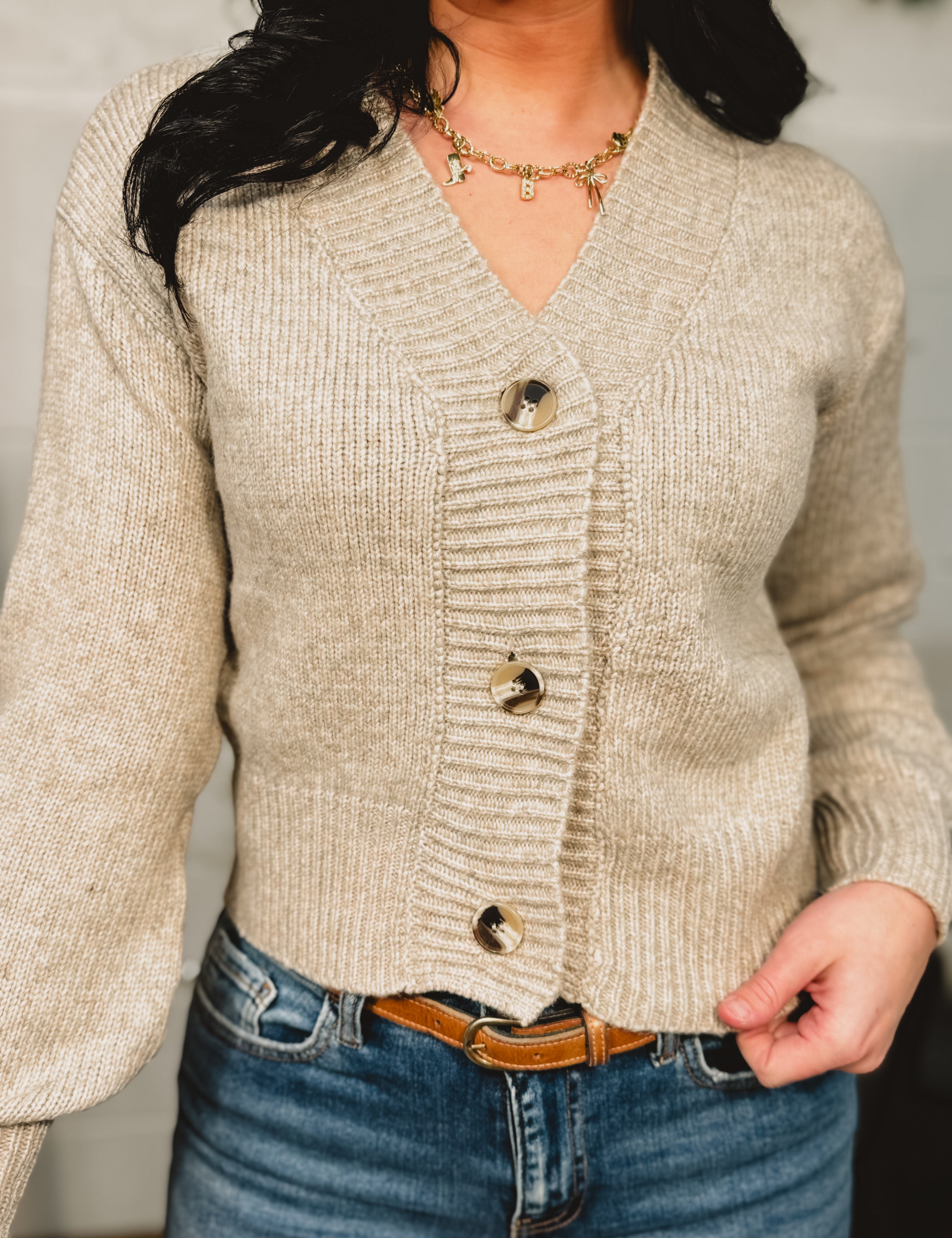 Button Front Sweater Cardigan - Heather Taupe