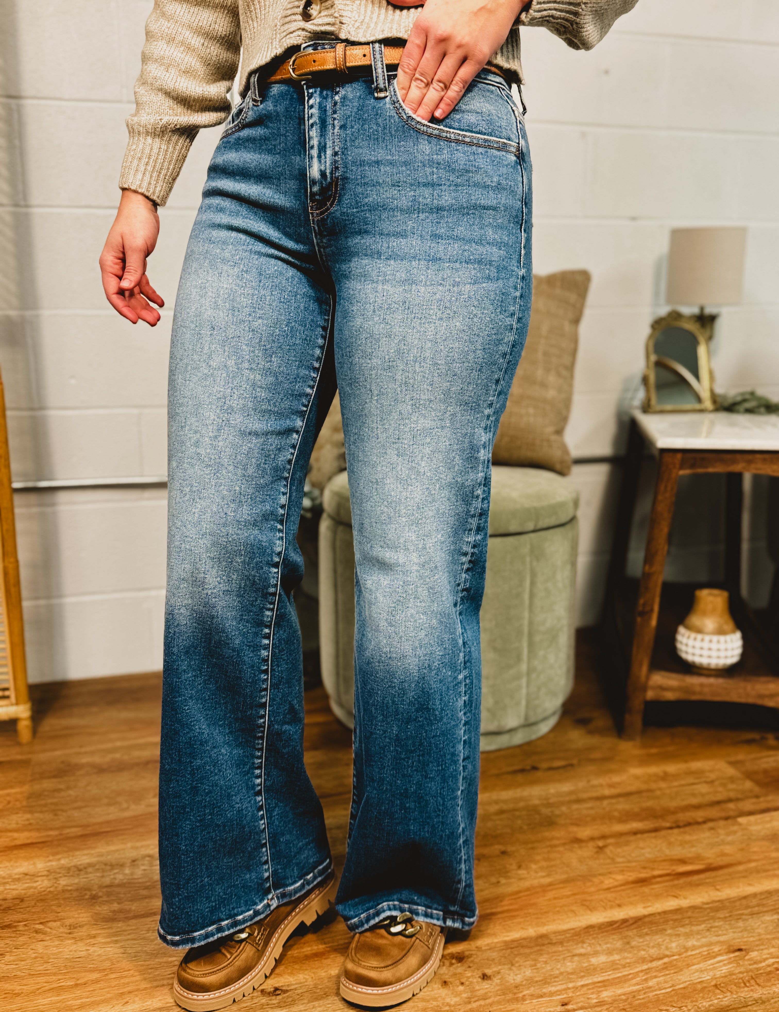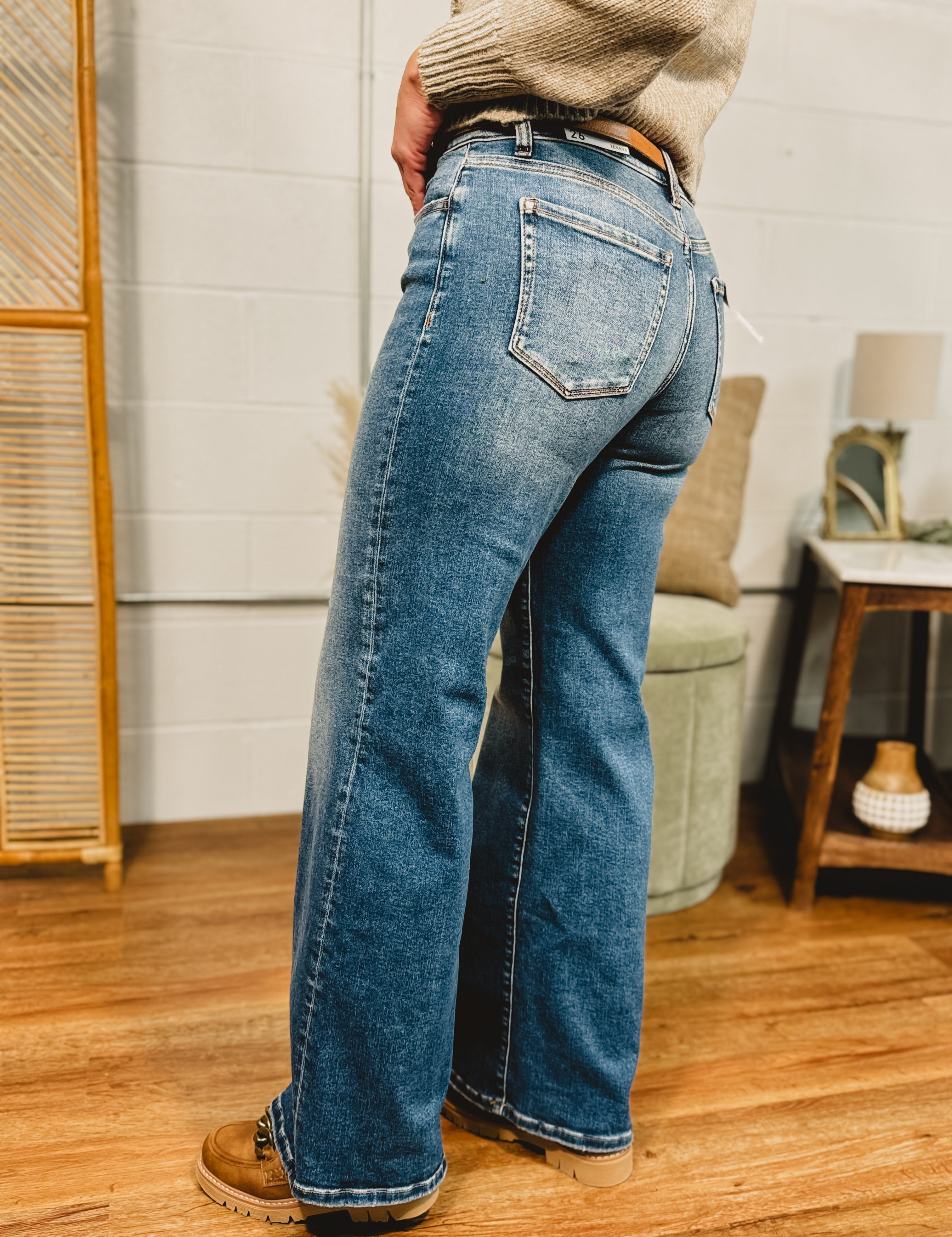 High Waisted Straight Leg Jean - Medium Wash
