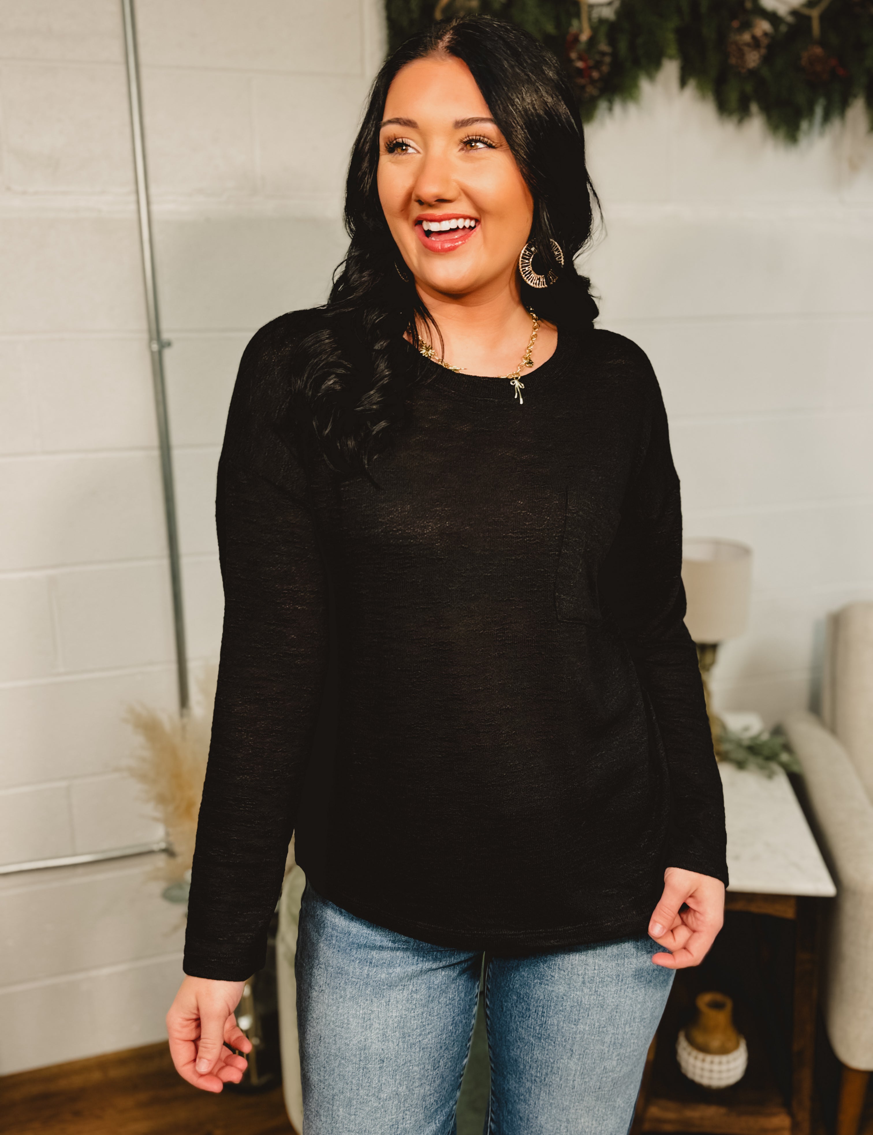 Long Sleeve Basic Pocket Tee - Black
