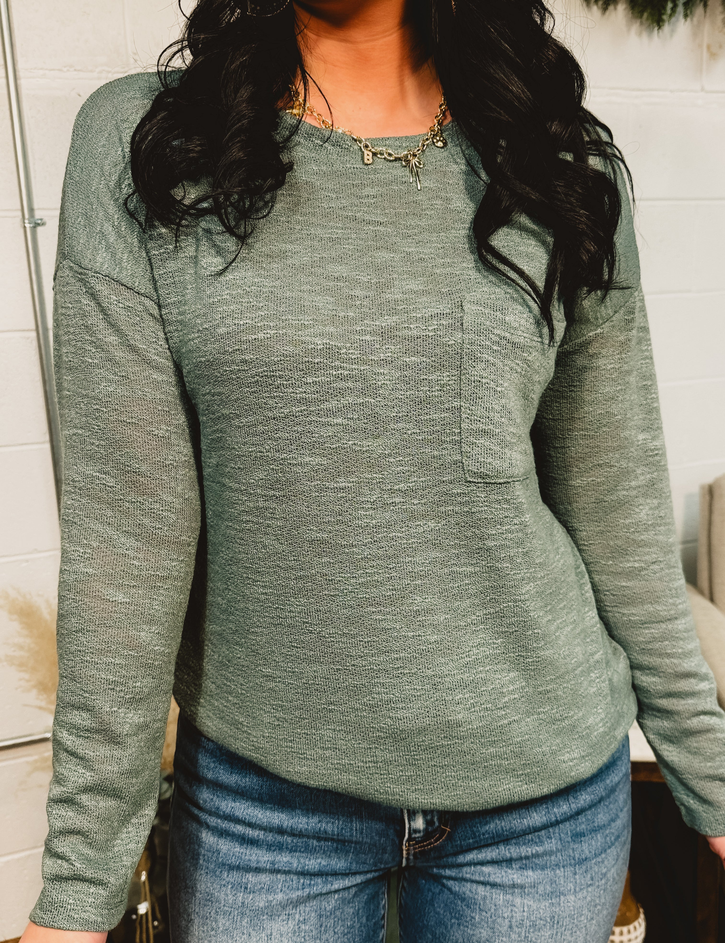 Long Sleeve Basic Pocket Tee - Ash Jade