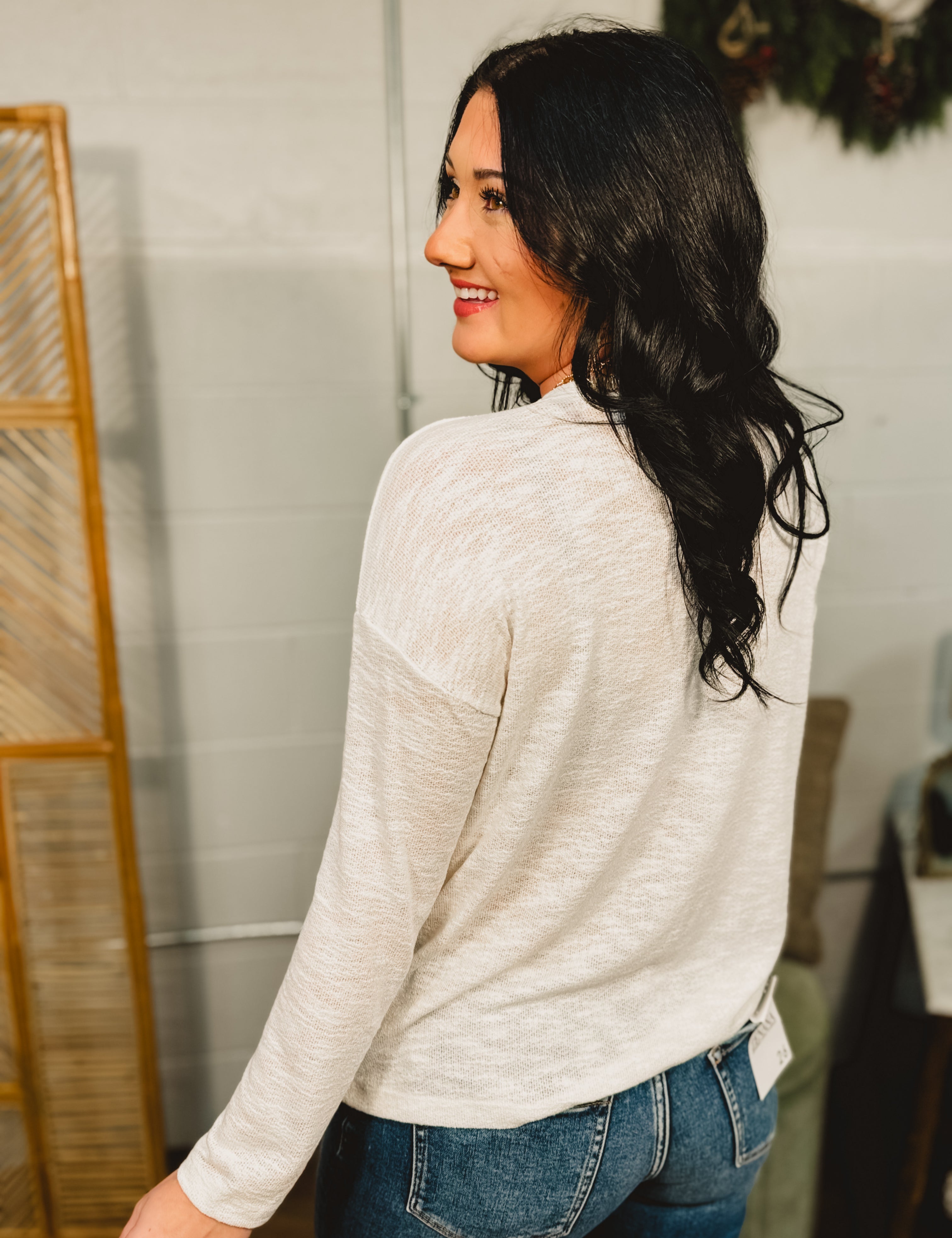 Long Sleeve Basic Pocket Tee - Ivory