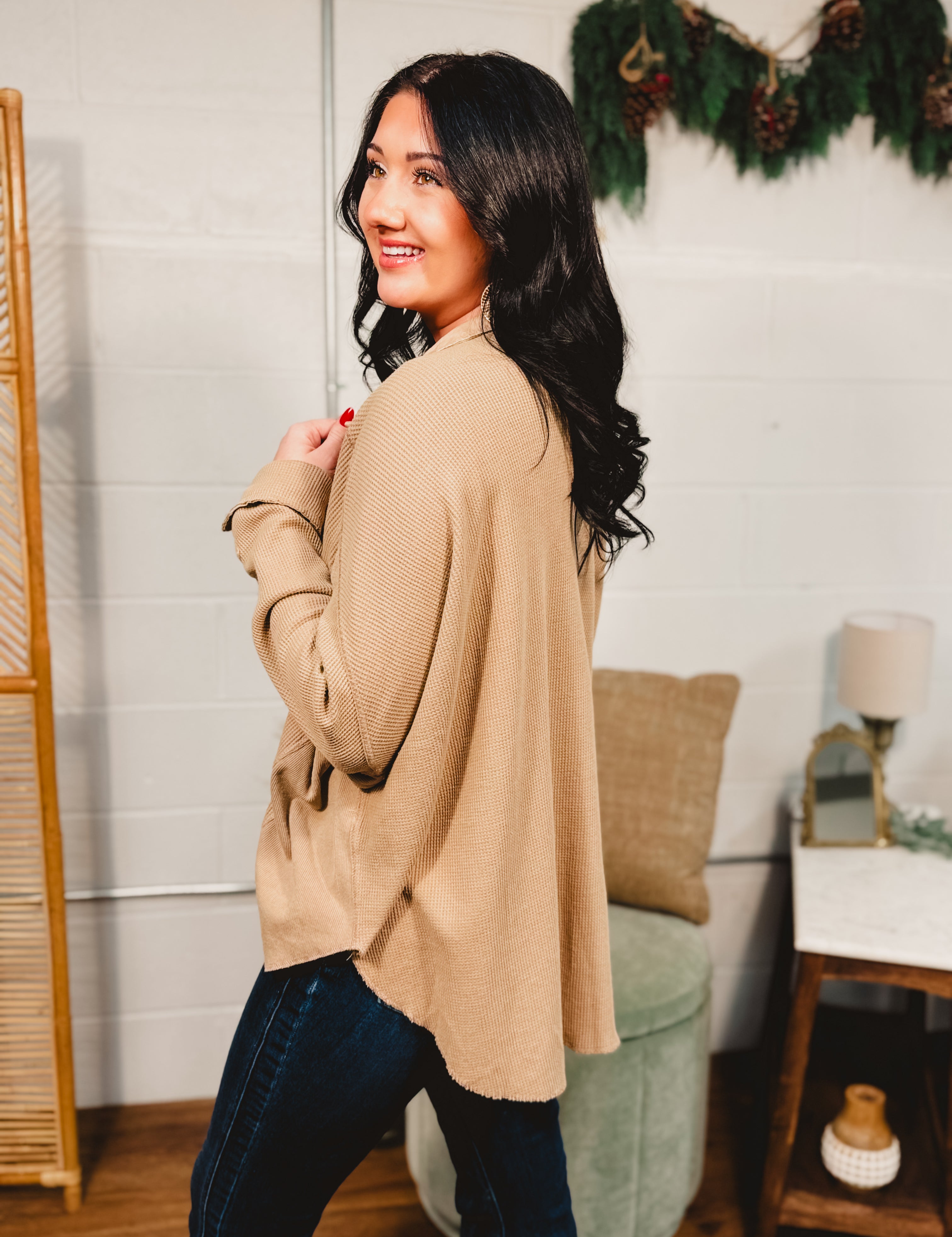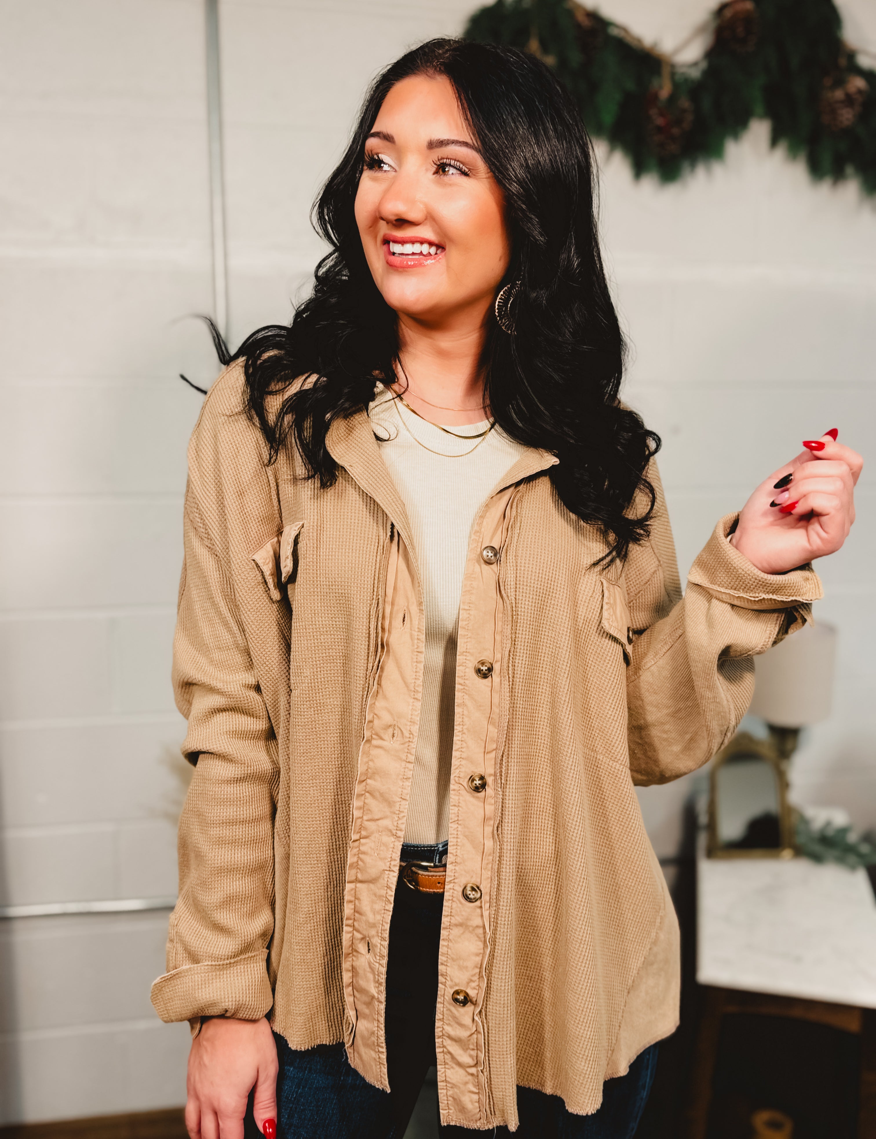 Thermal Knit Button-Up Jacket - Taupe