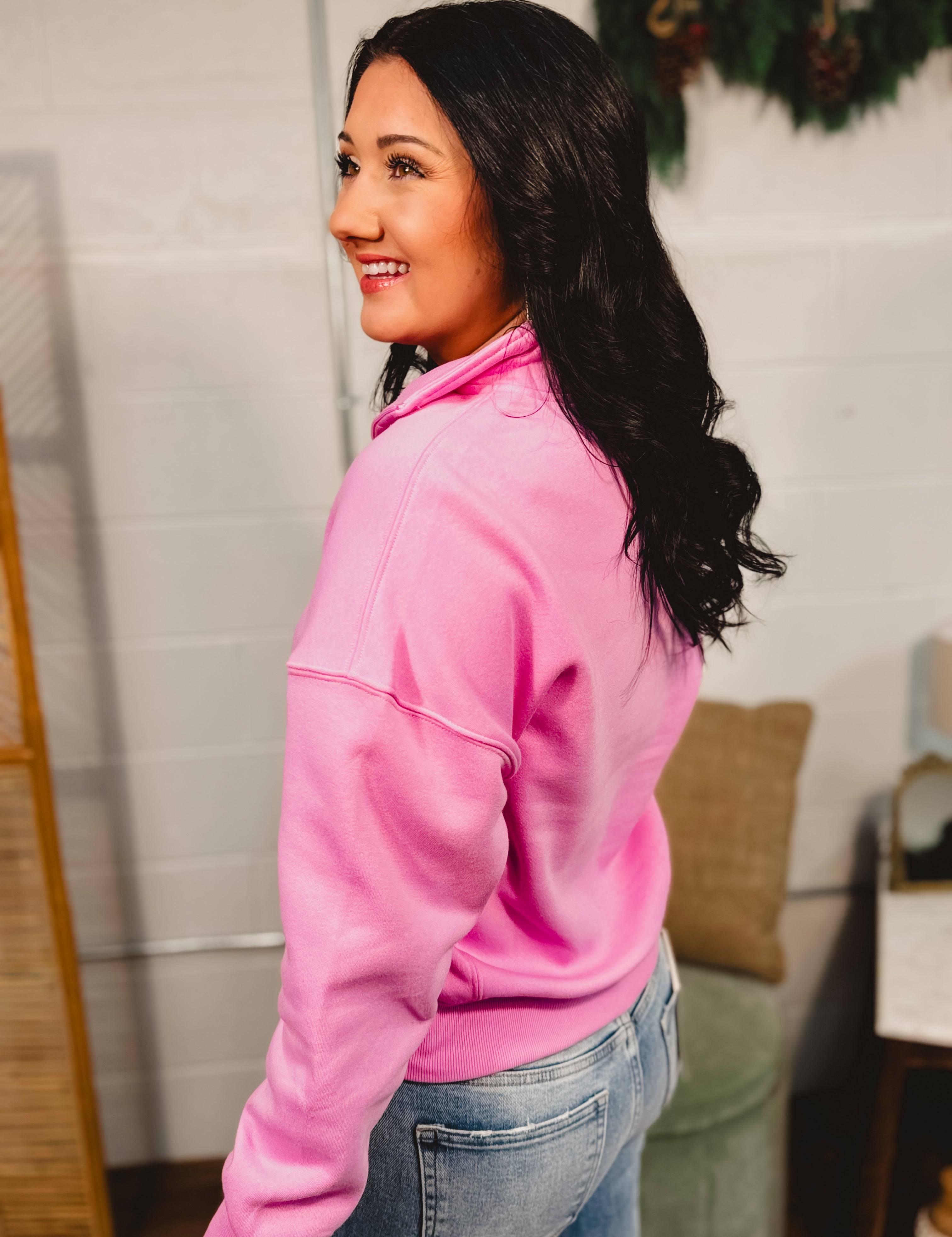 Fleece Half Zip Sweatshirt - Candy Pink