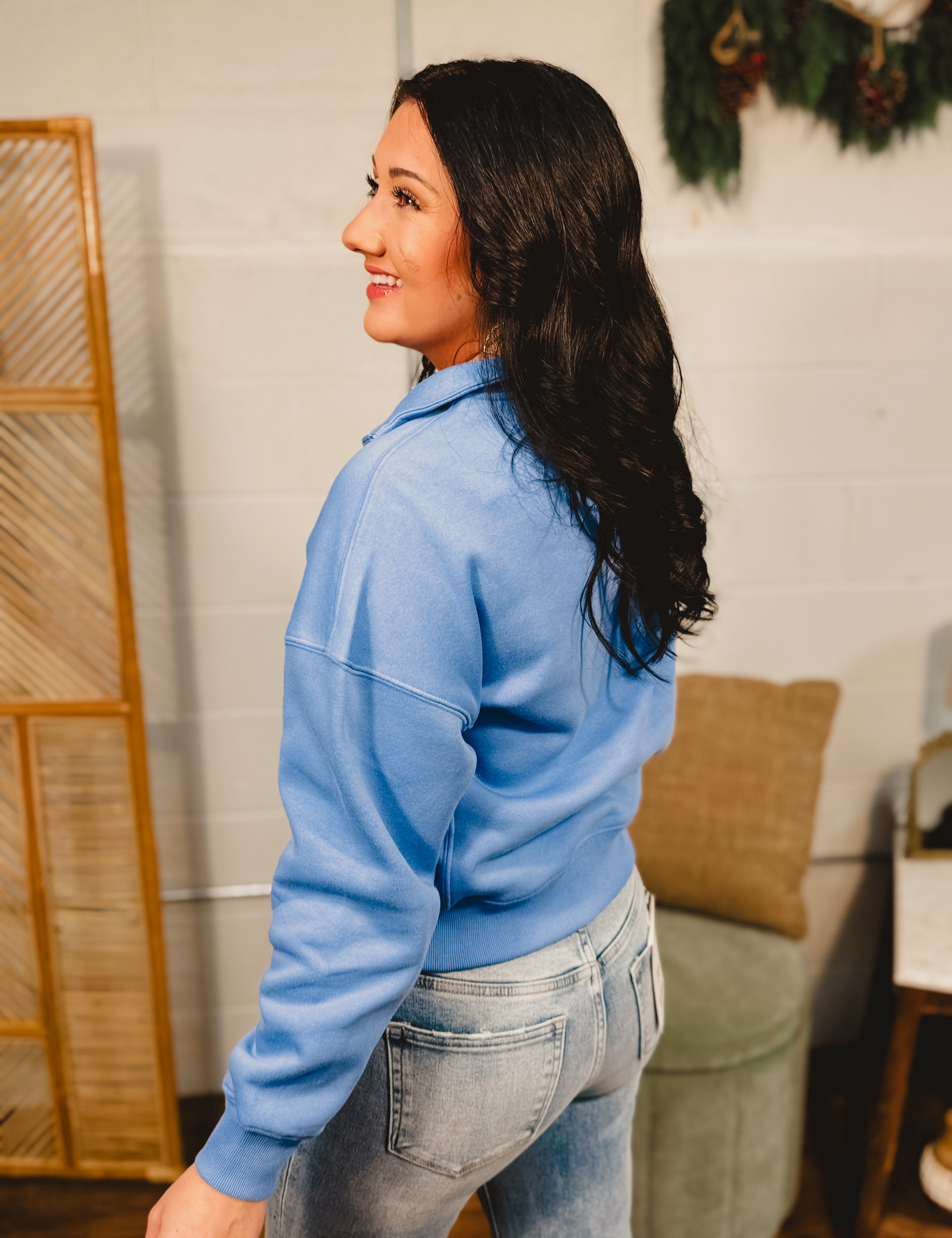 Fleece Half Zip Sweatshirt - Cornflower Blue