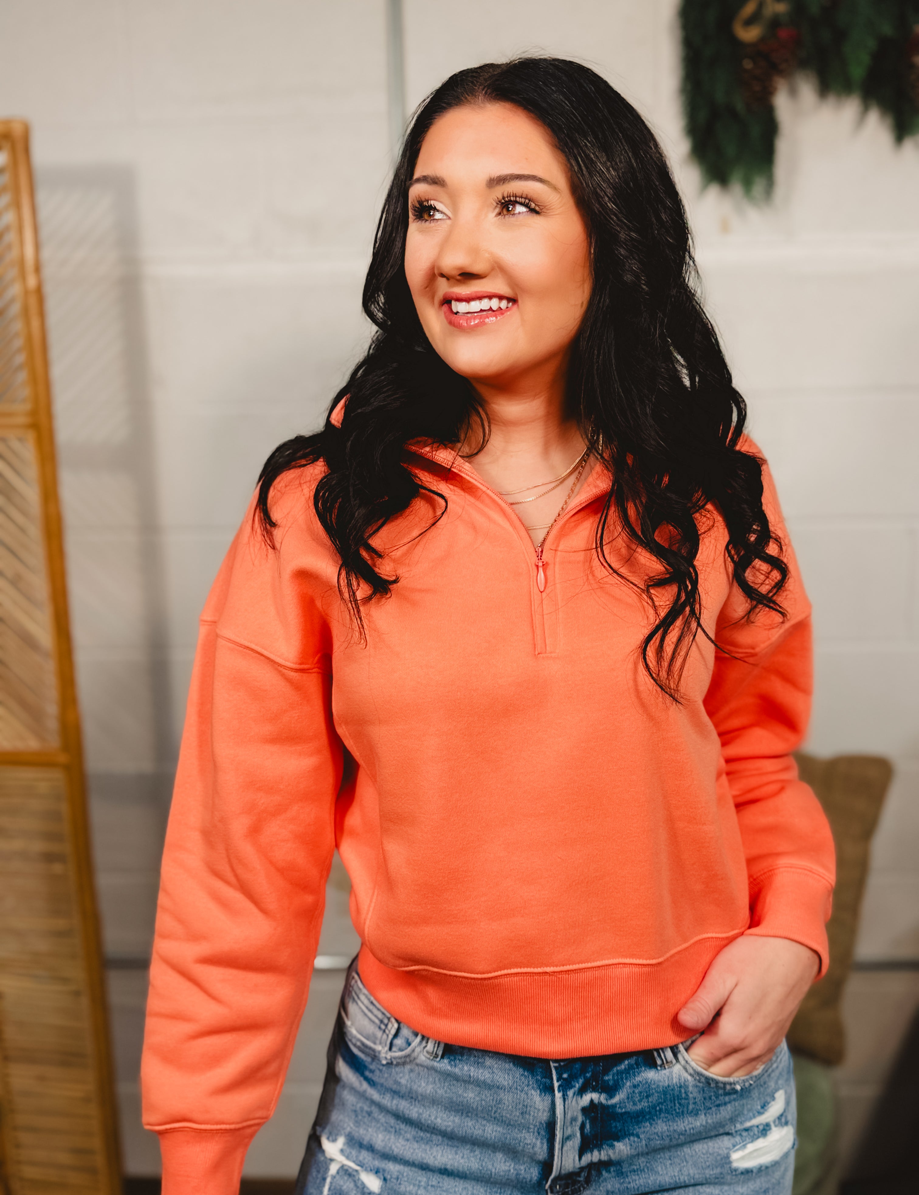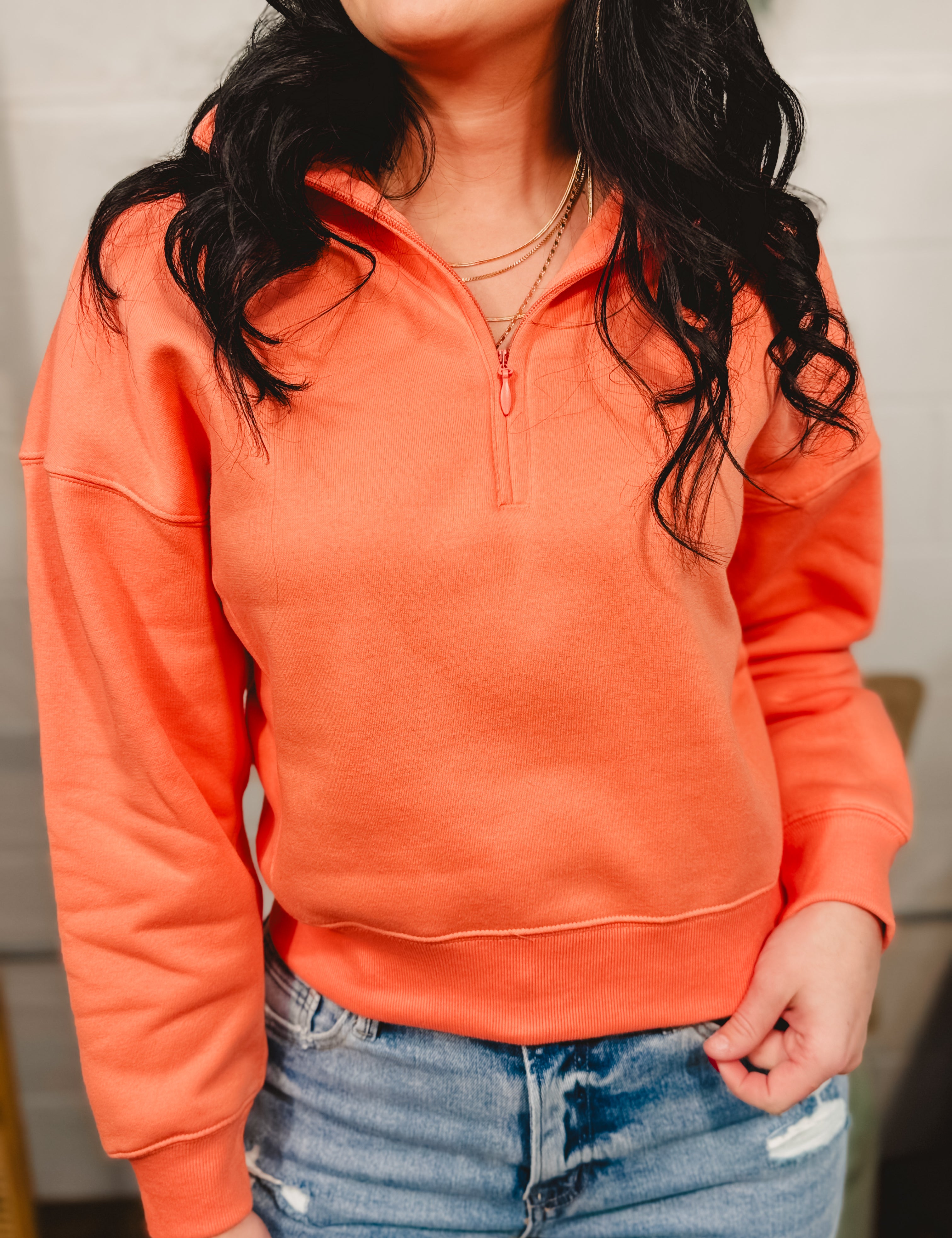 Fleece Half Zip Sweatshirt - Coral