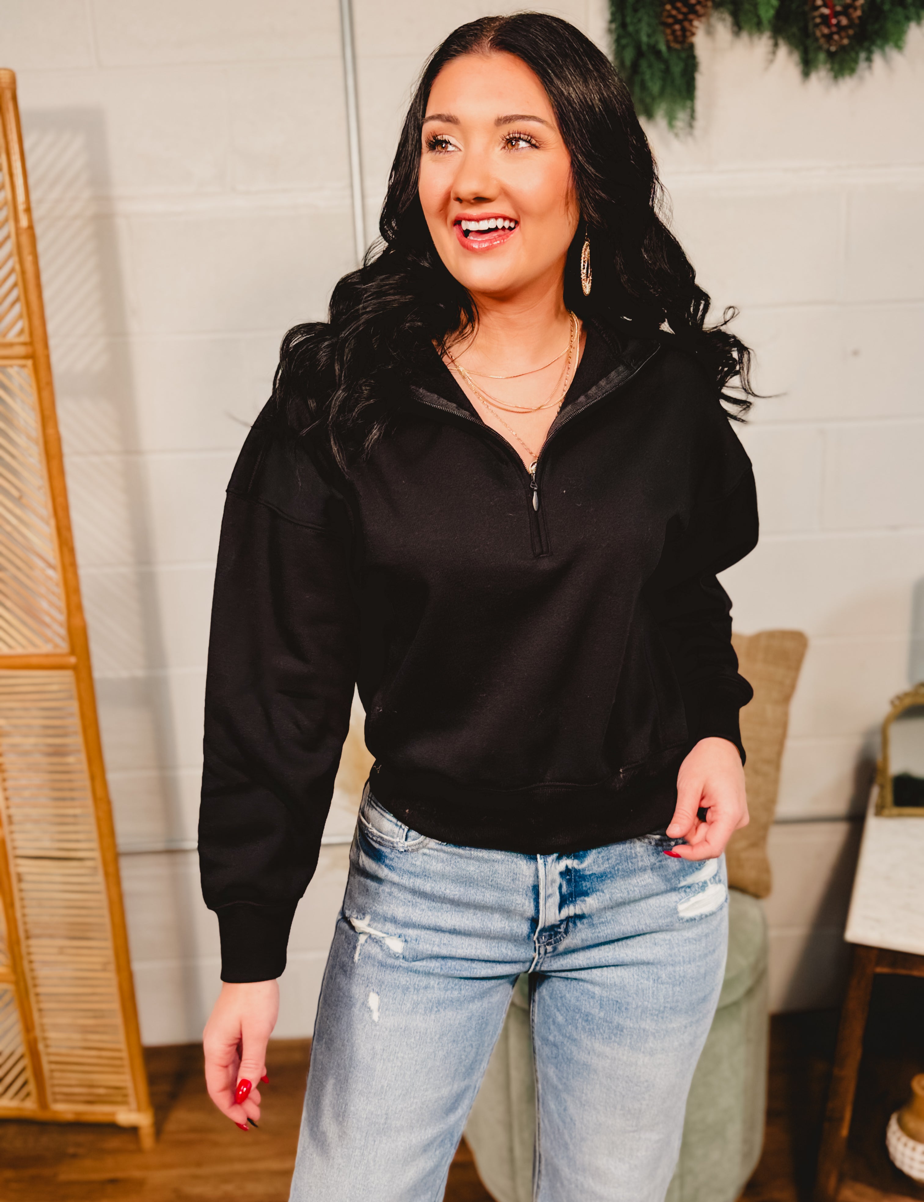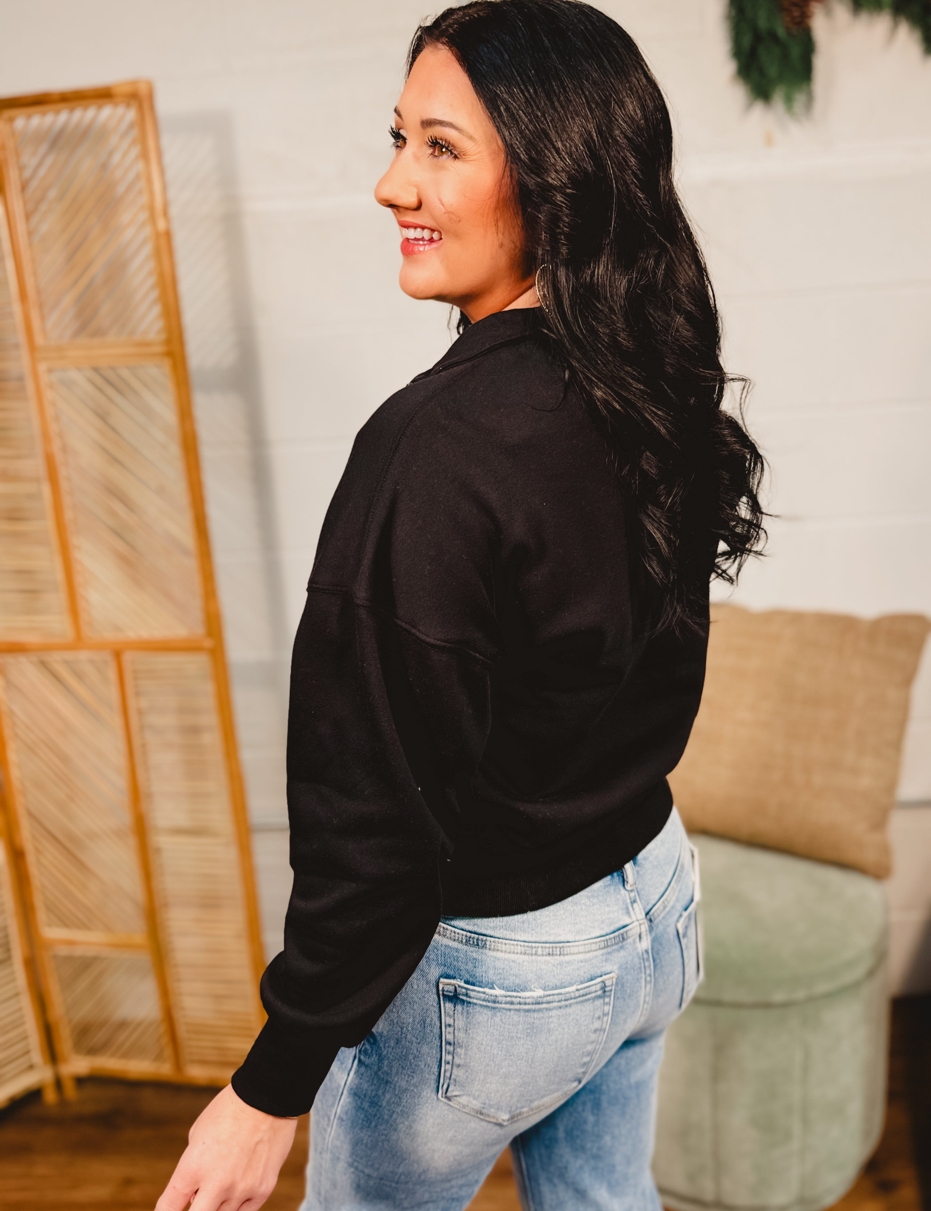 Fleece Half Zip Sweatshirt - Black
