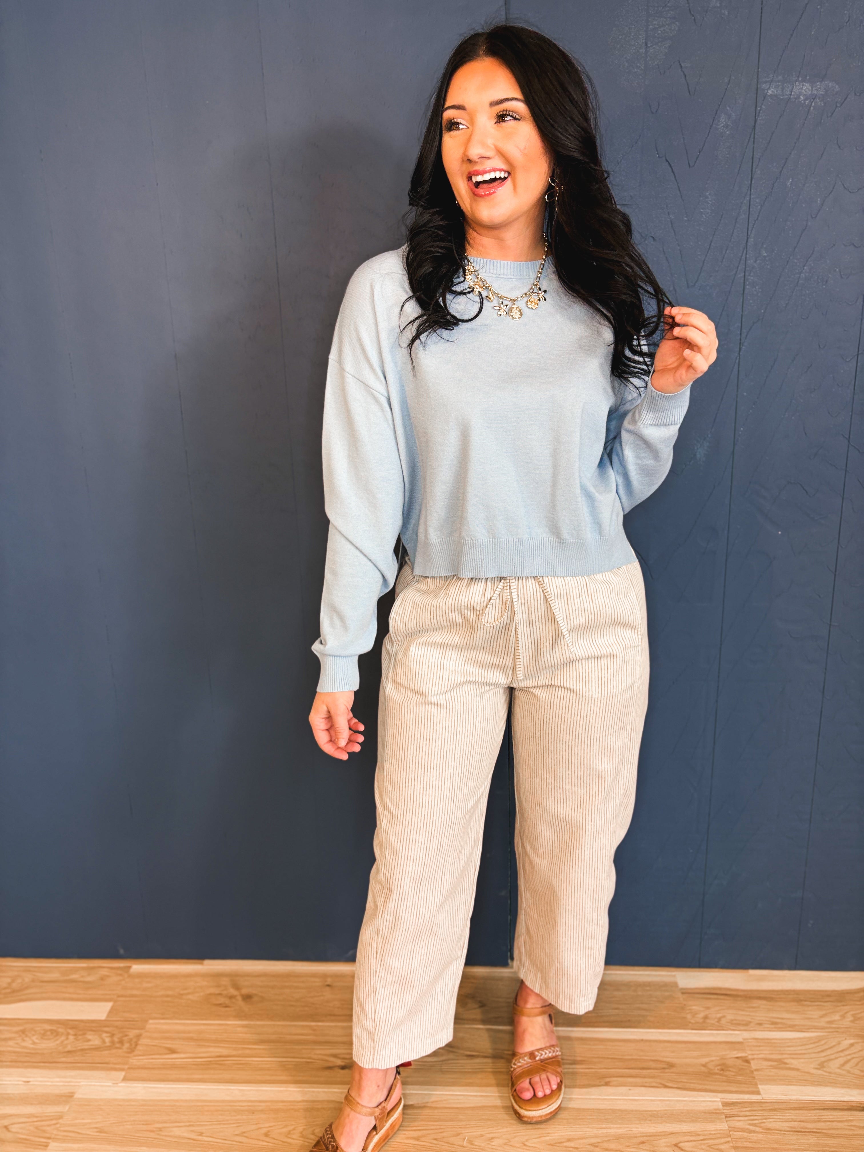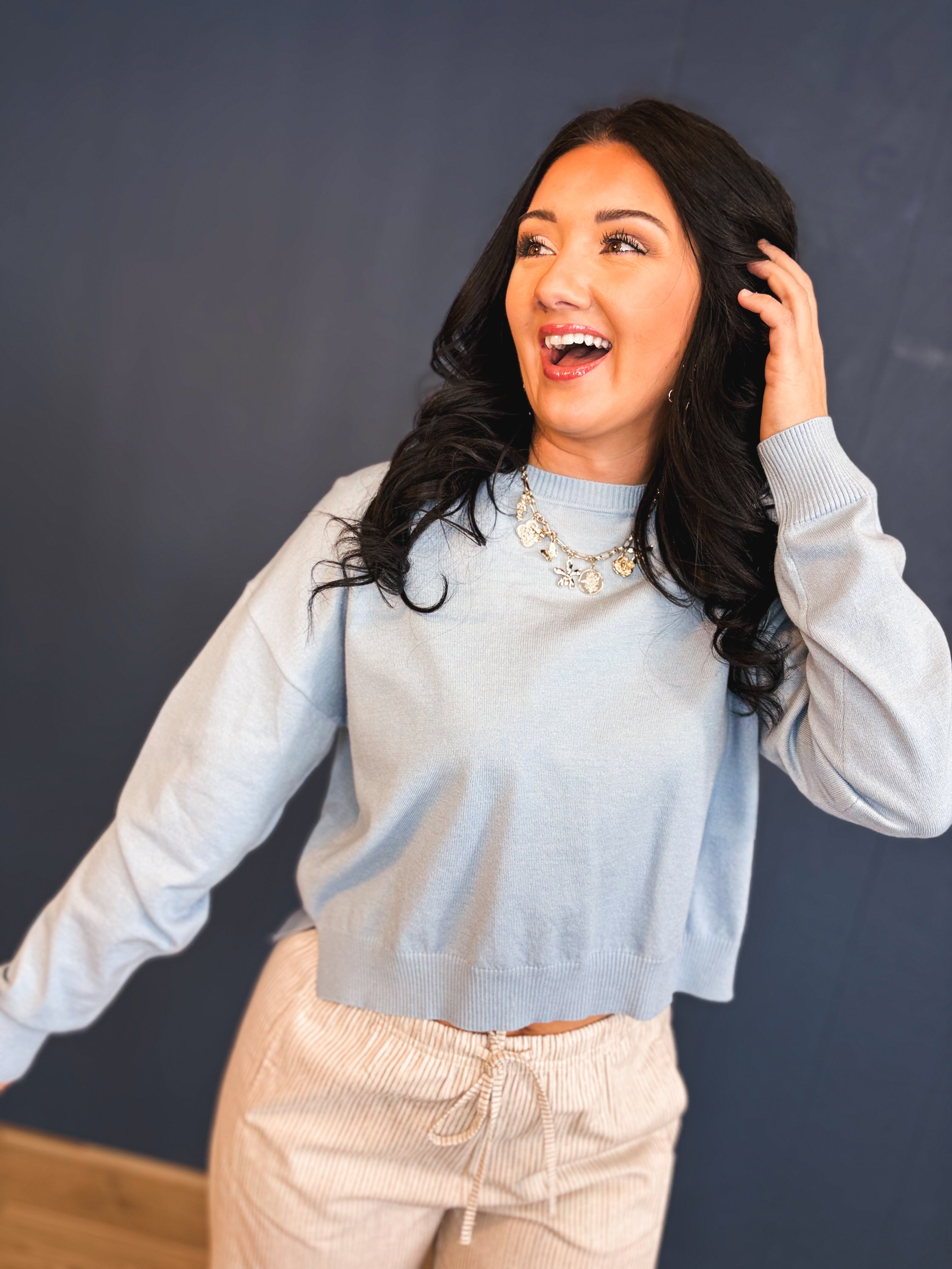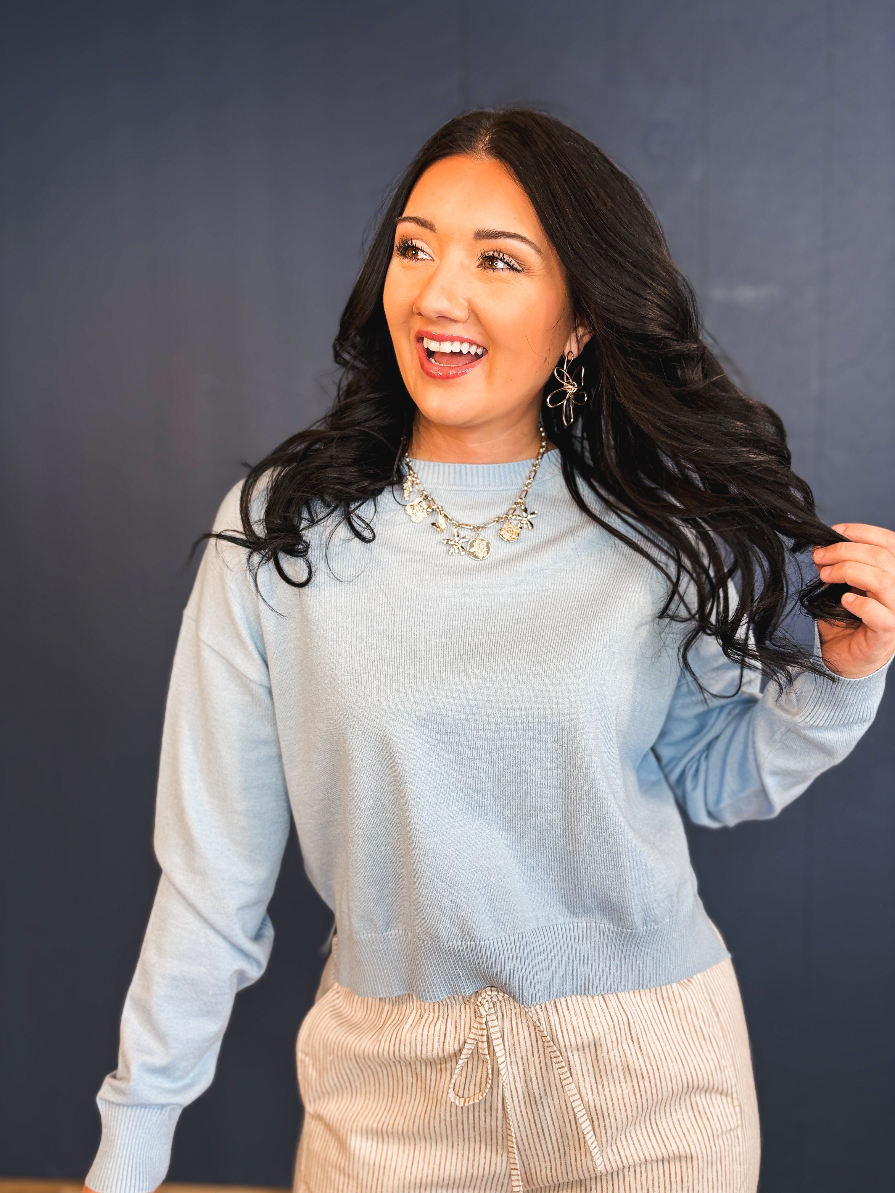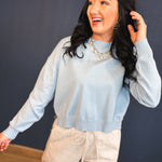 Basic Drop Shoulder Crewneck Sweater - Sky