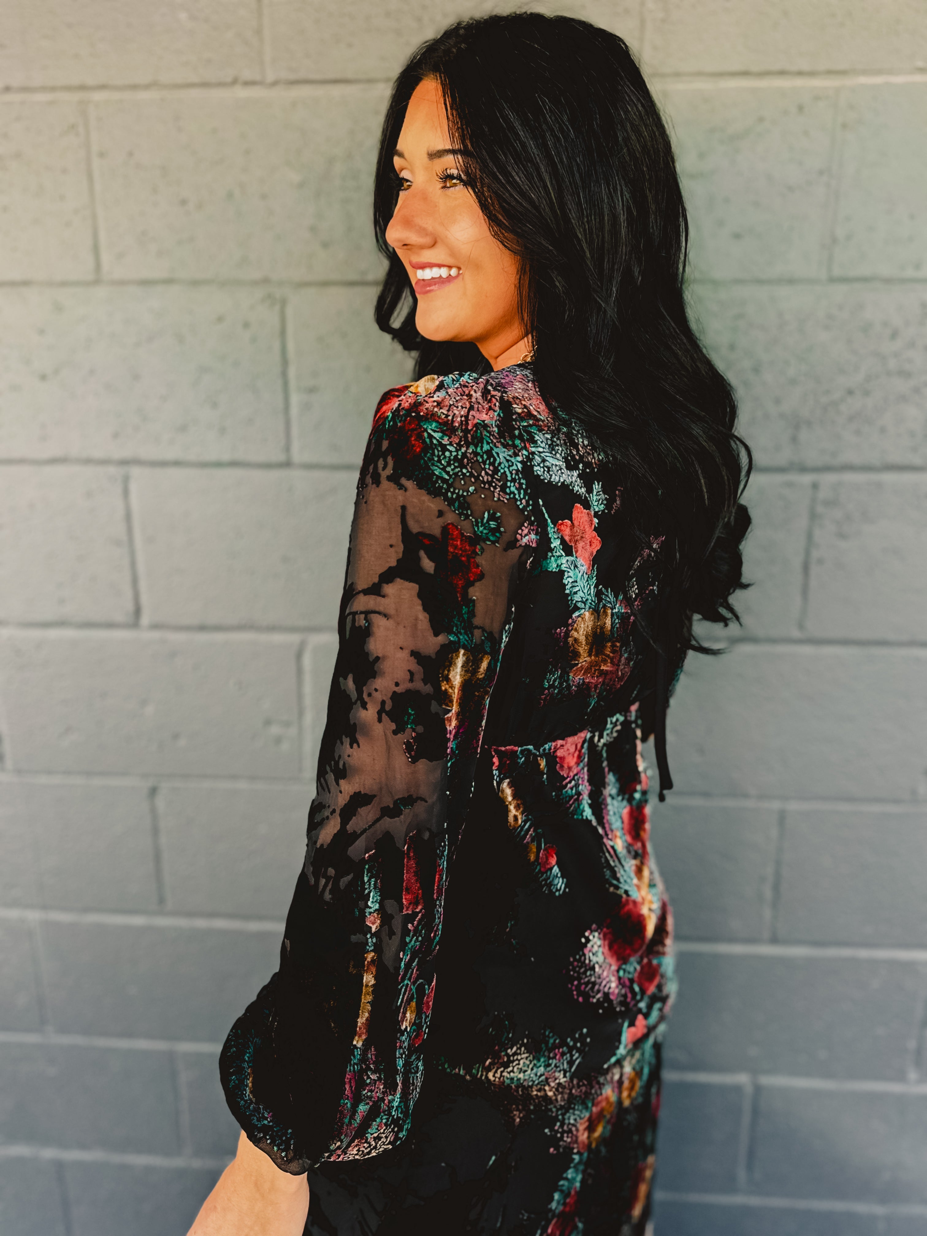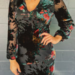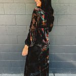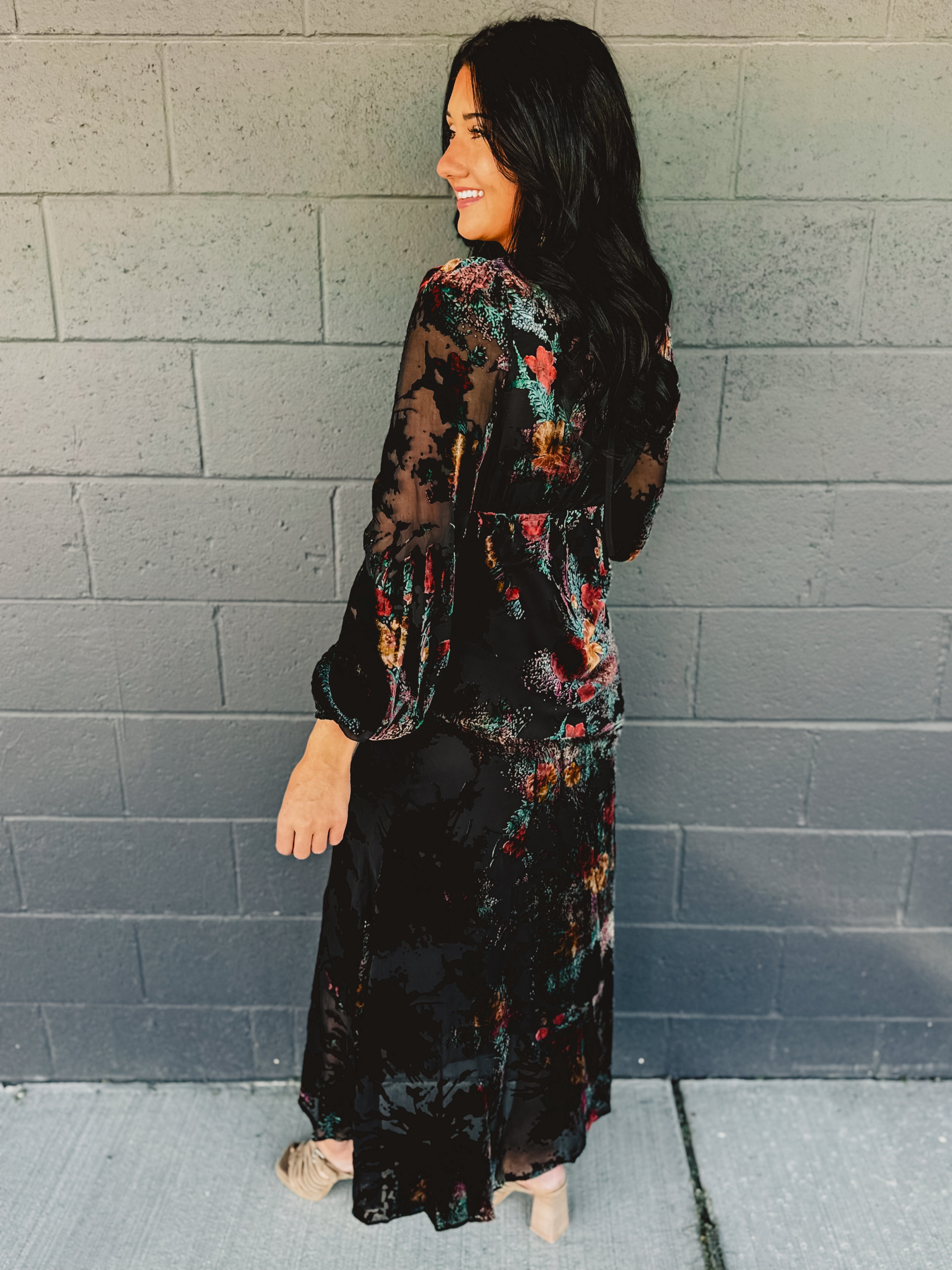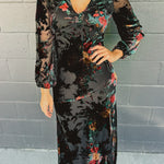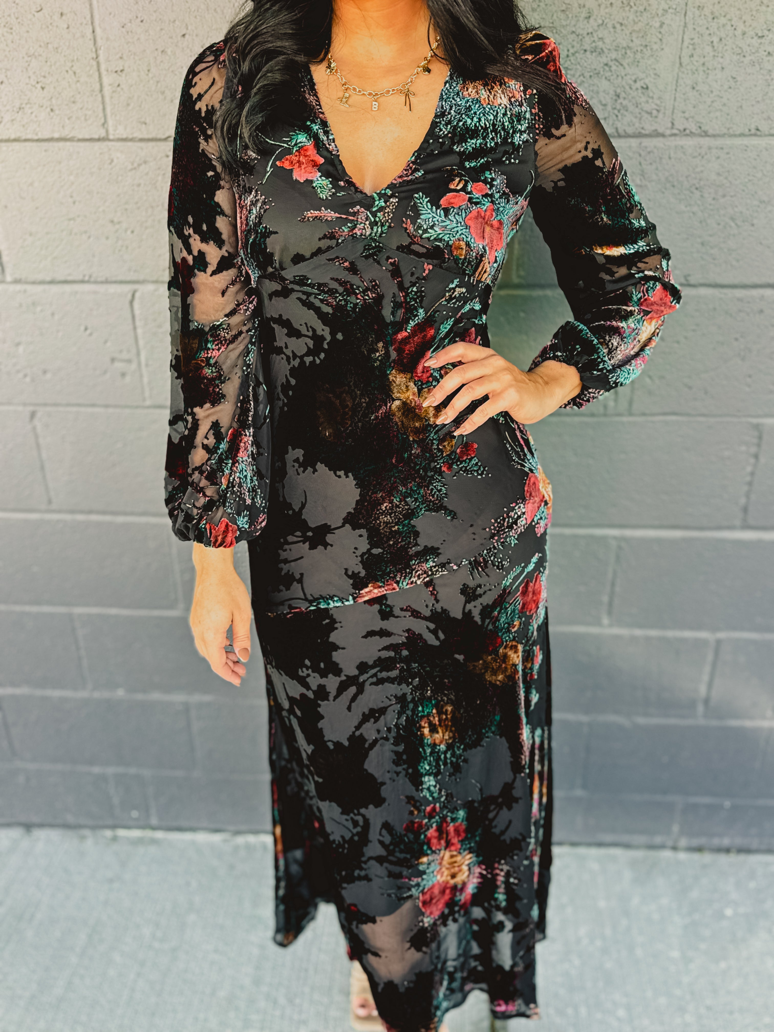 Burnout Velvet Long Sleeve Maxi Dress - Red Rose Gold