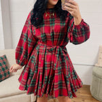 Christmas Plaid Belted Mini Dress - Red Multi