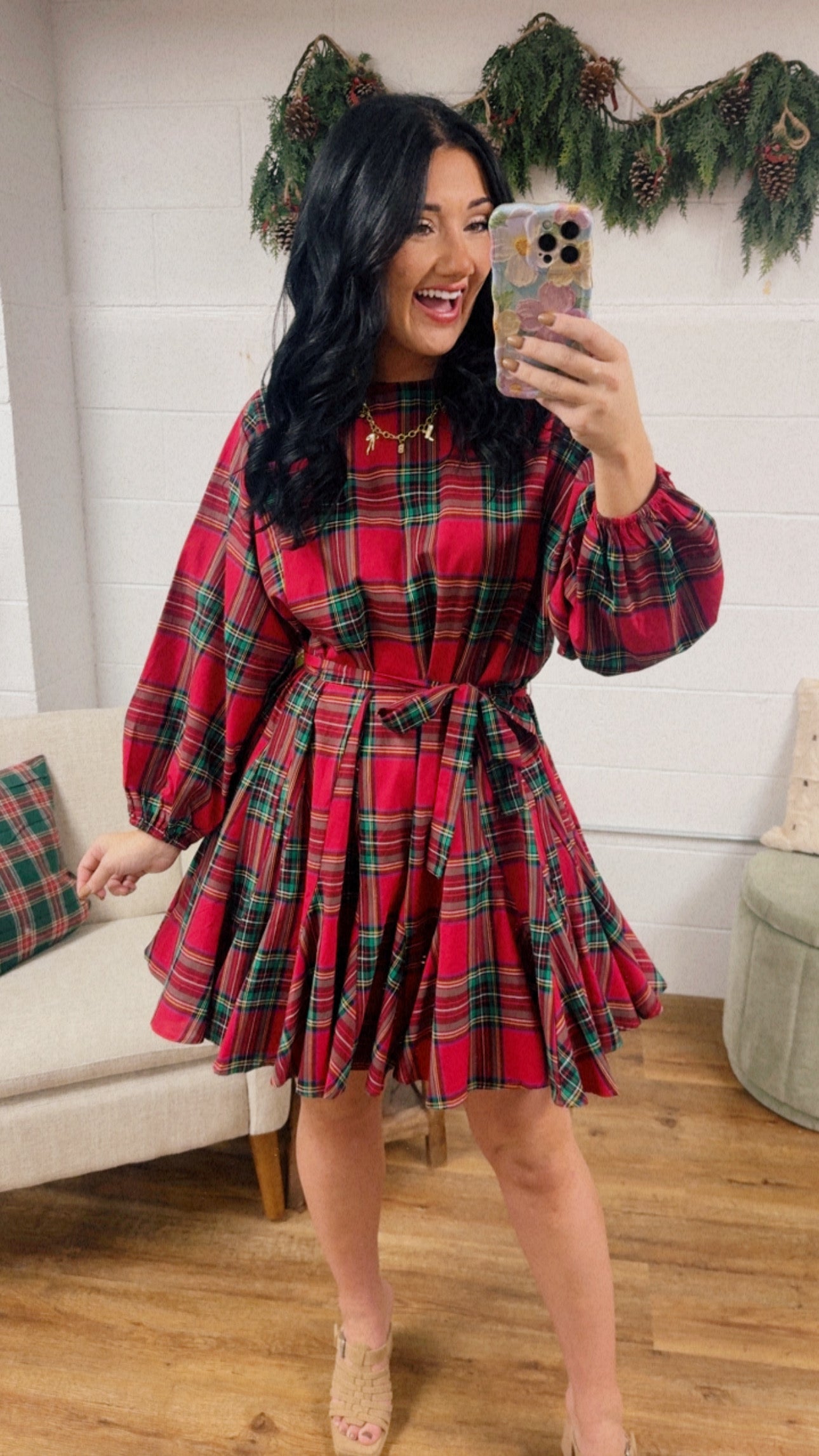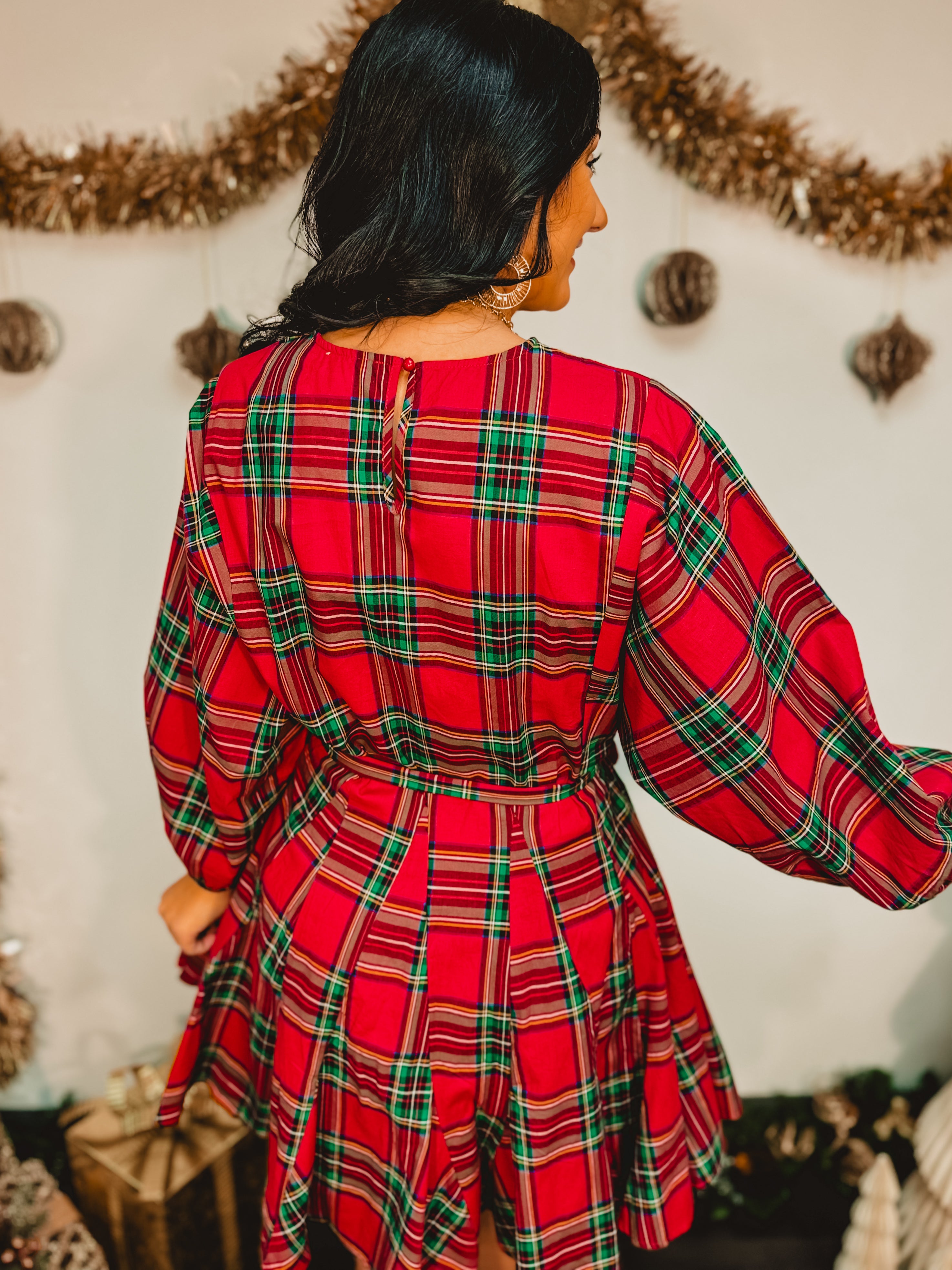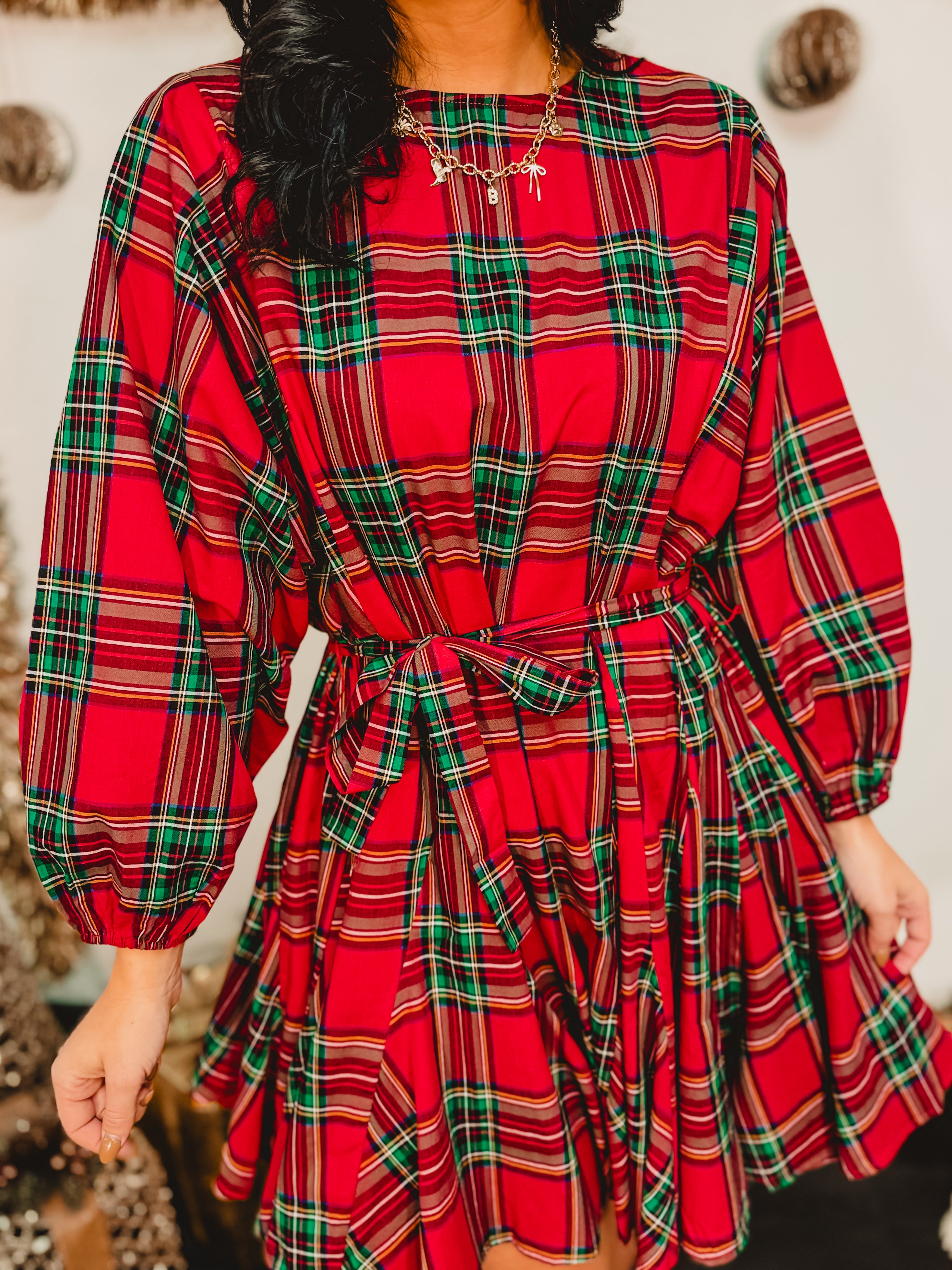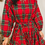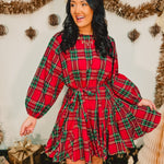 Festive and feminine, this red multi plaid mini dress features a flattering belted waist and classic holiday charm — perfect for parties, gatherings, and seasonal celebrations.
