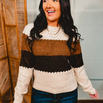 Colorblock Textured Knit Sweater - Oatmeal Combo