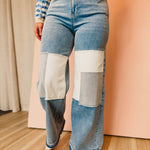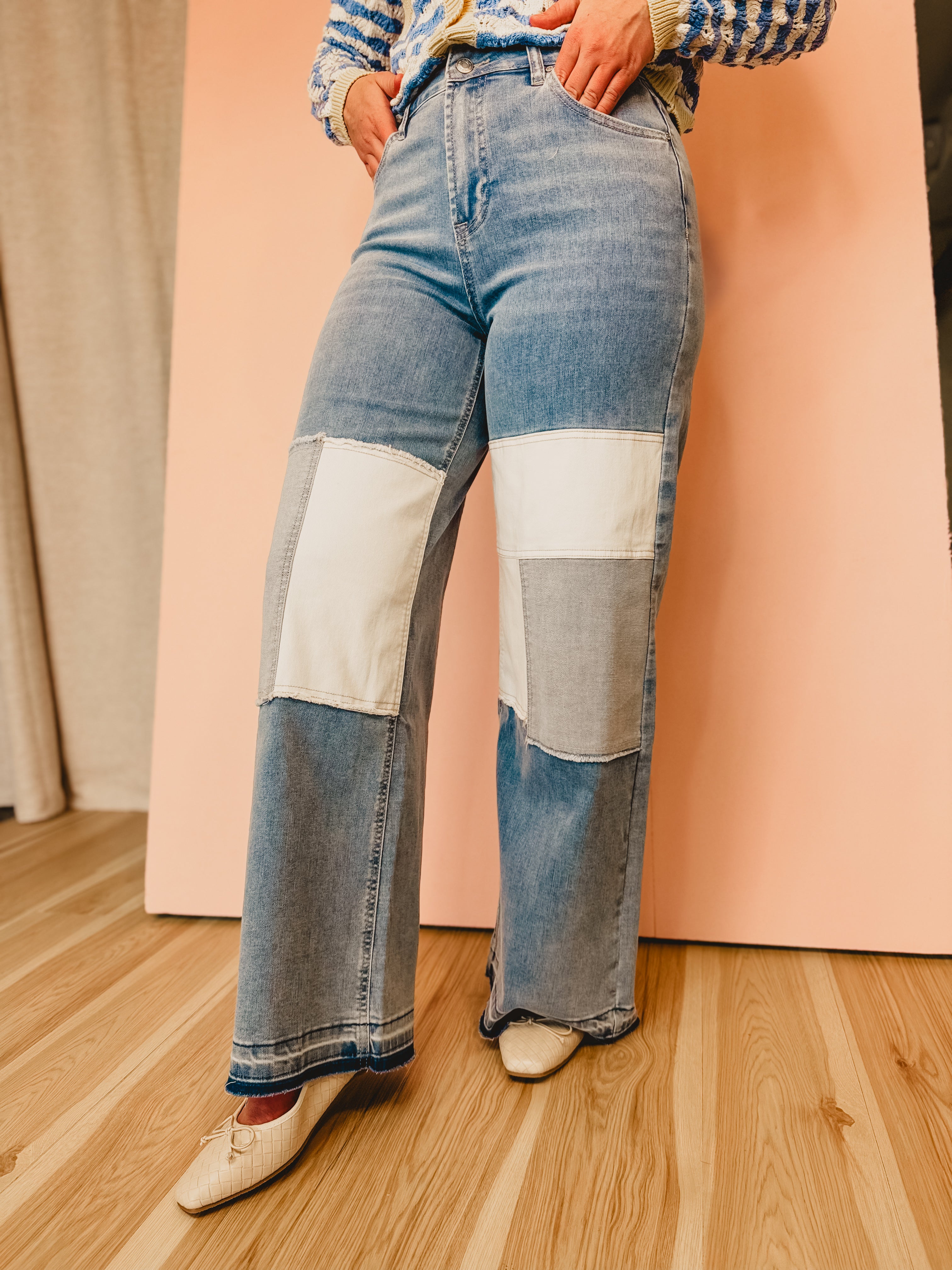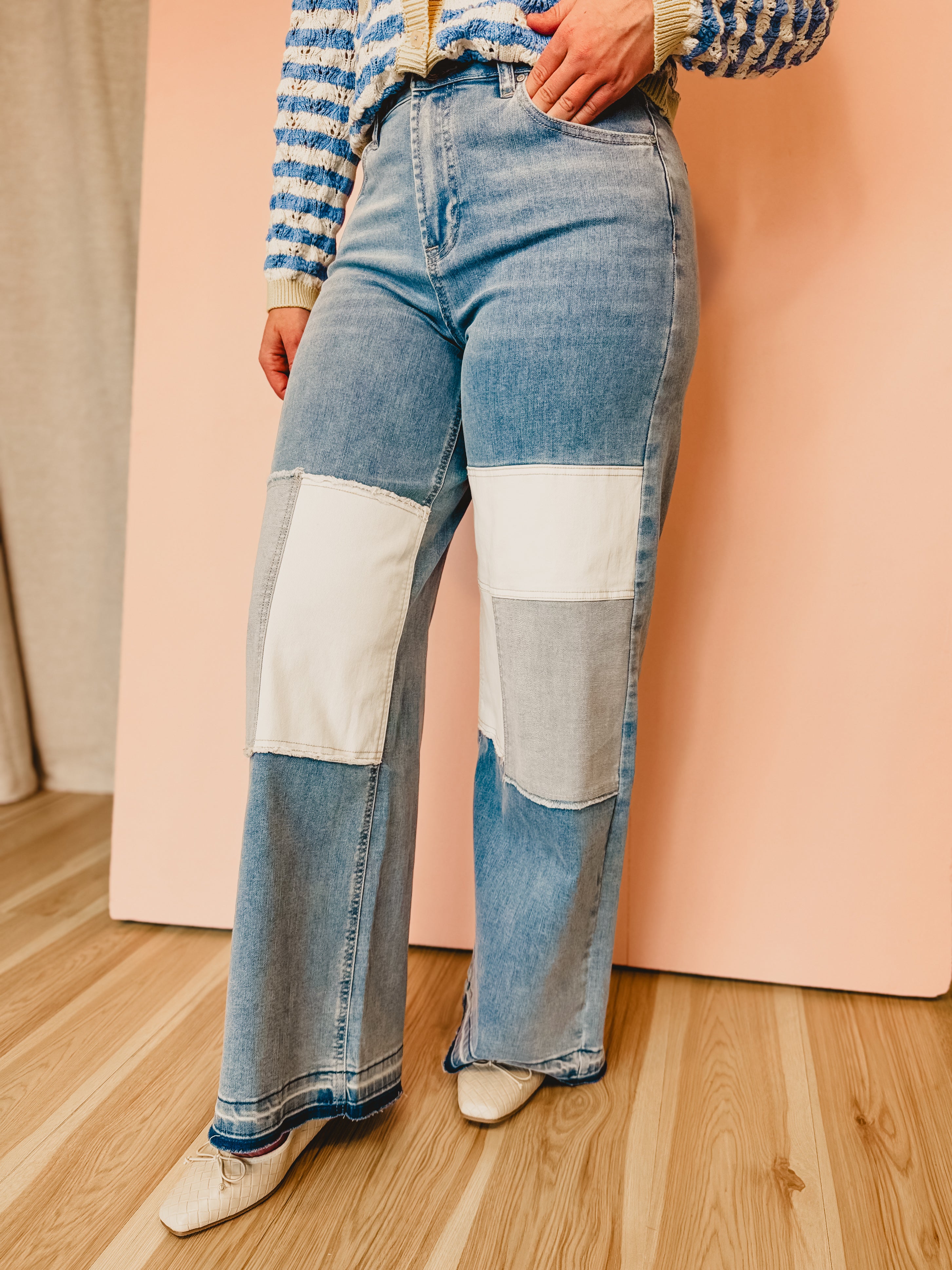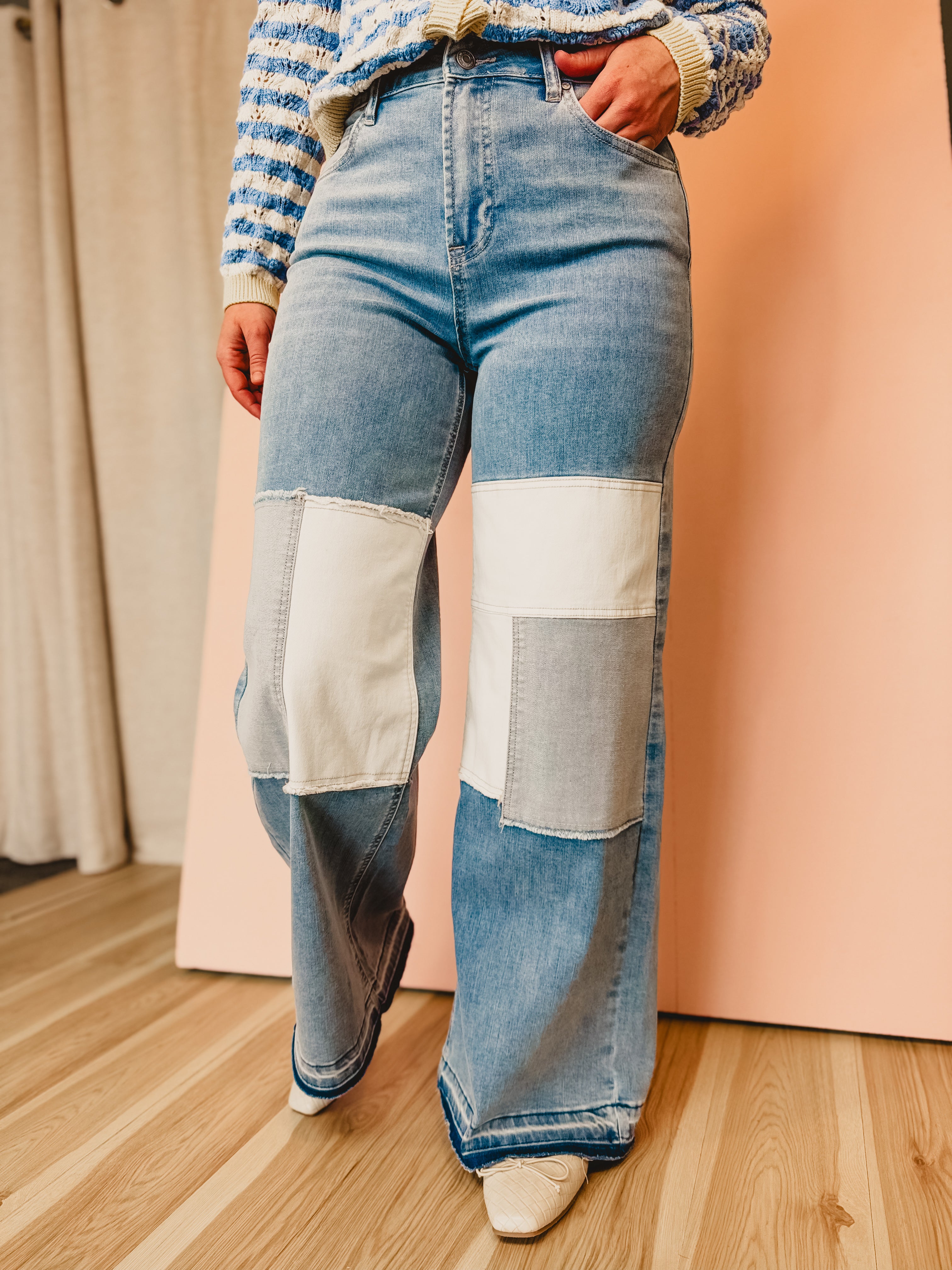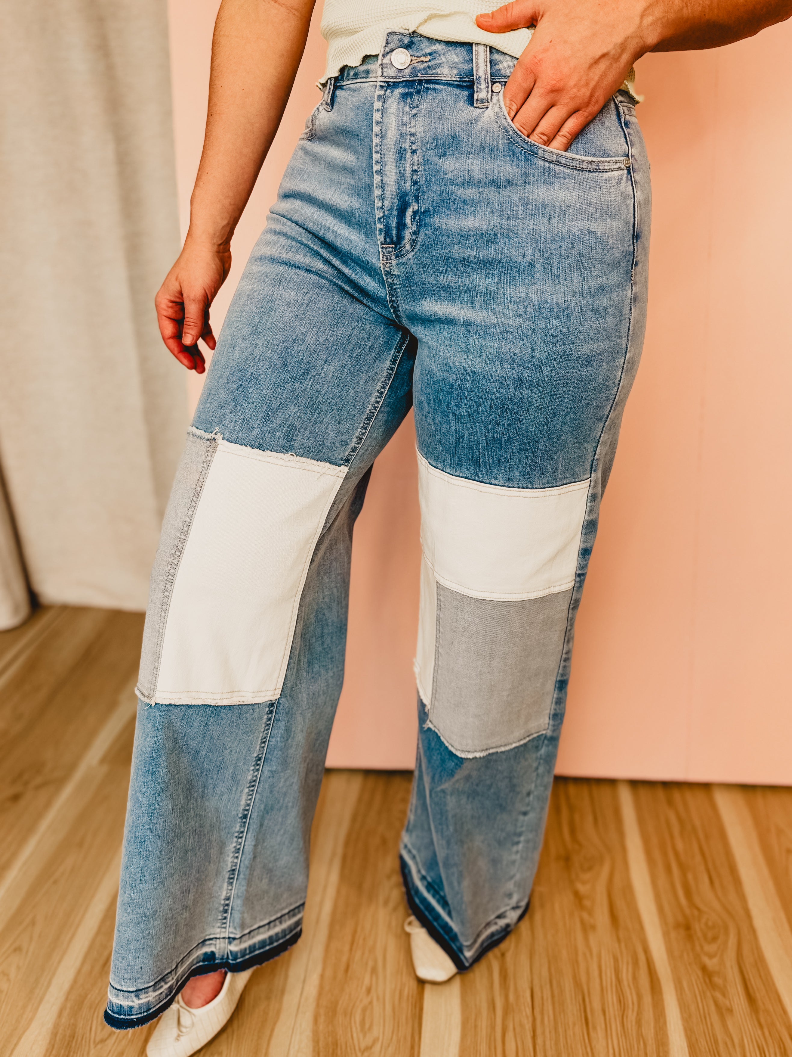 Comfort Stretch Patchwork Wide Leg Jeans - Medium