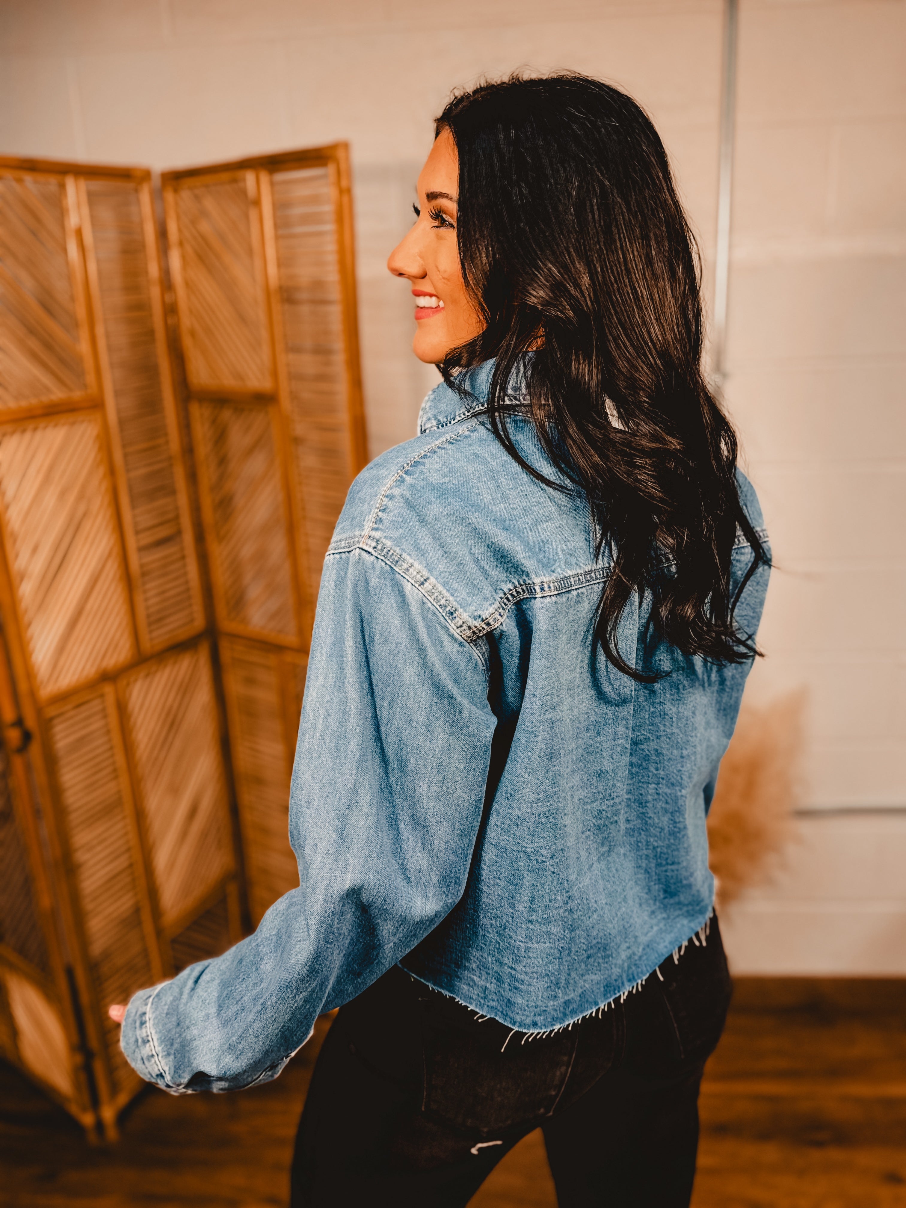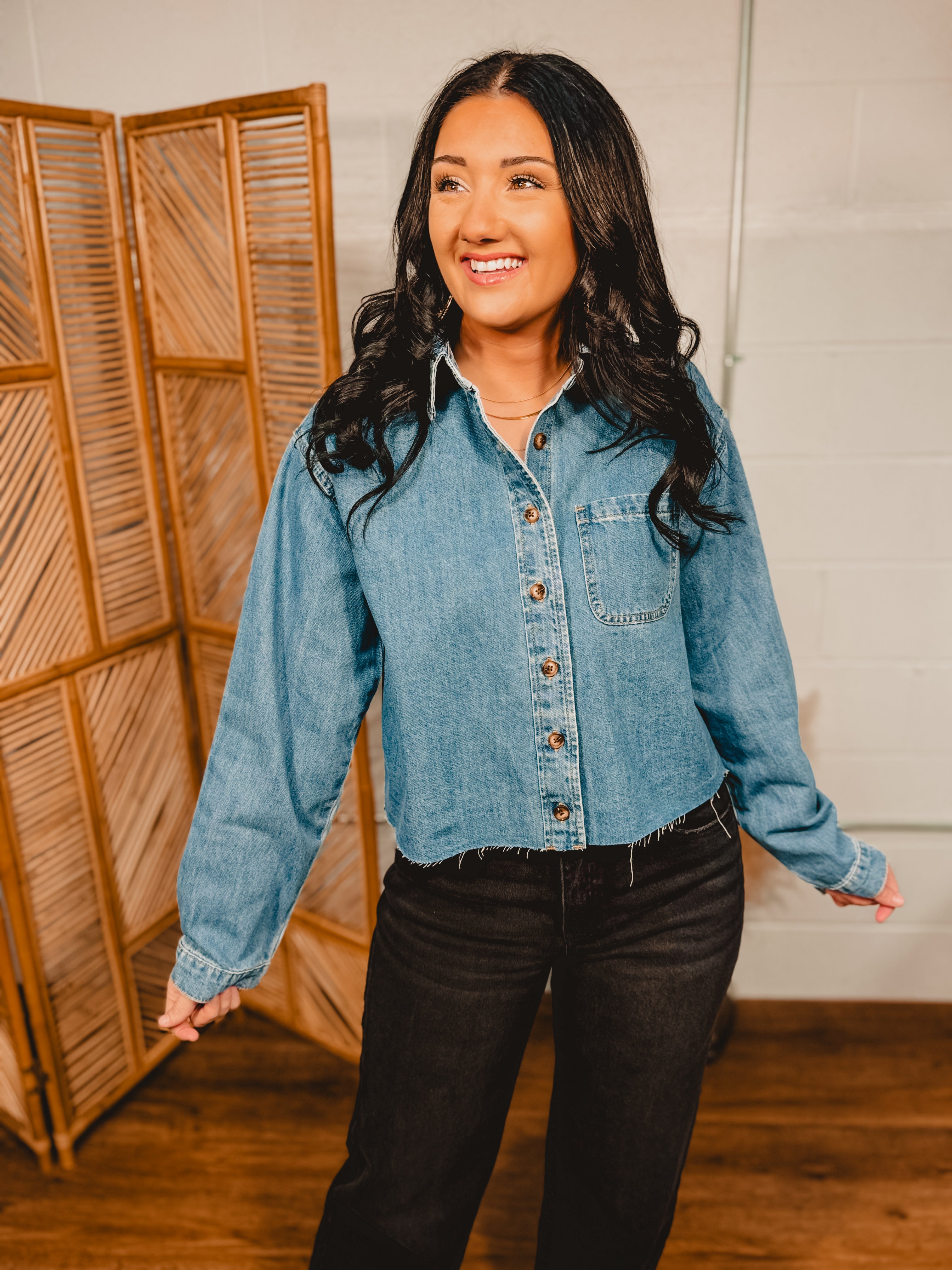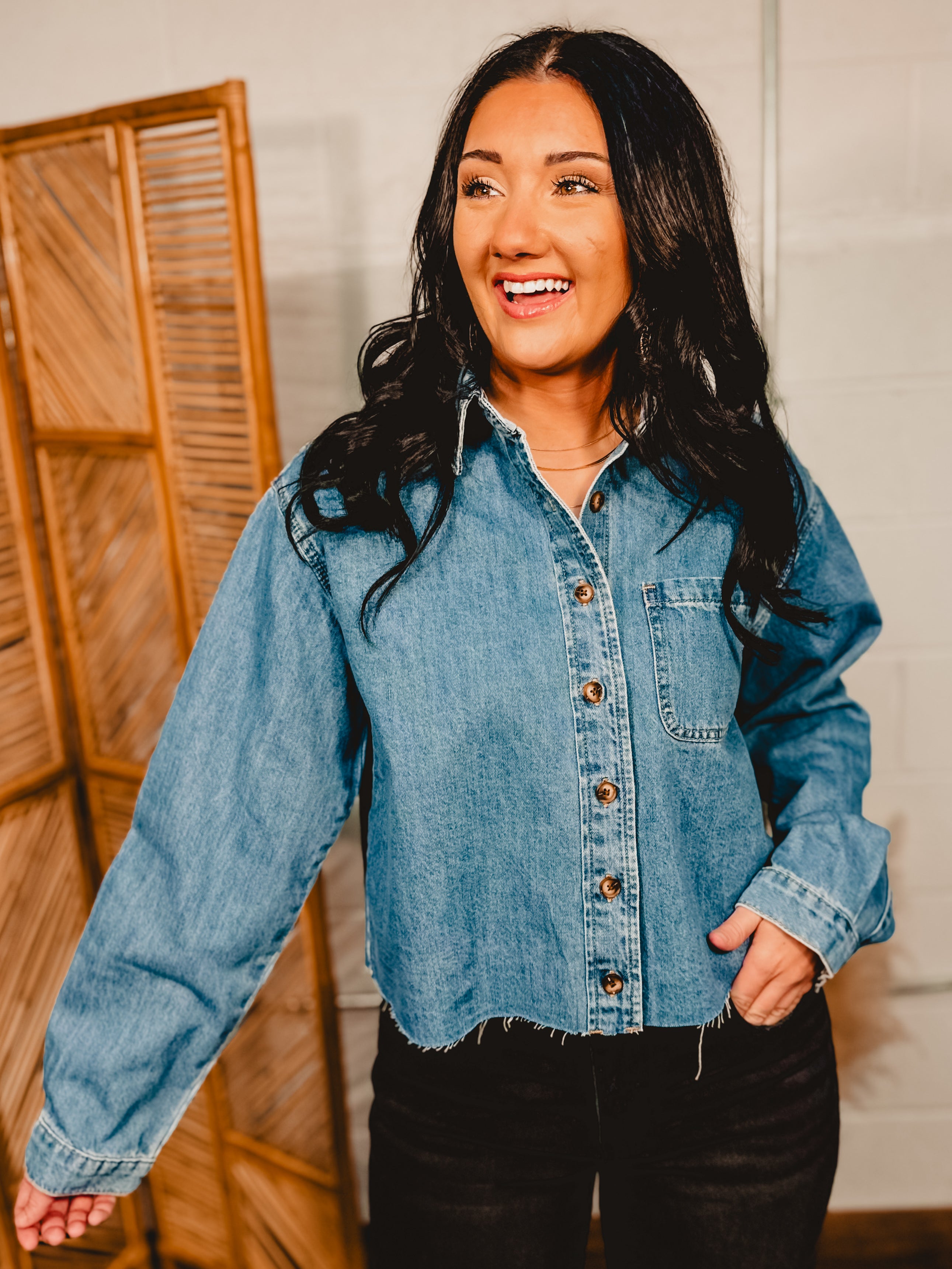 Effortlessly classic, this denim button up long sleeve top offers timeless style with endless versatility—perfect for layering or wearing on its own year-round.