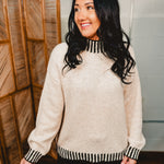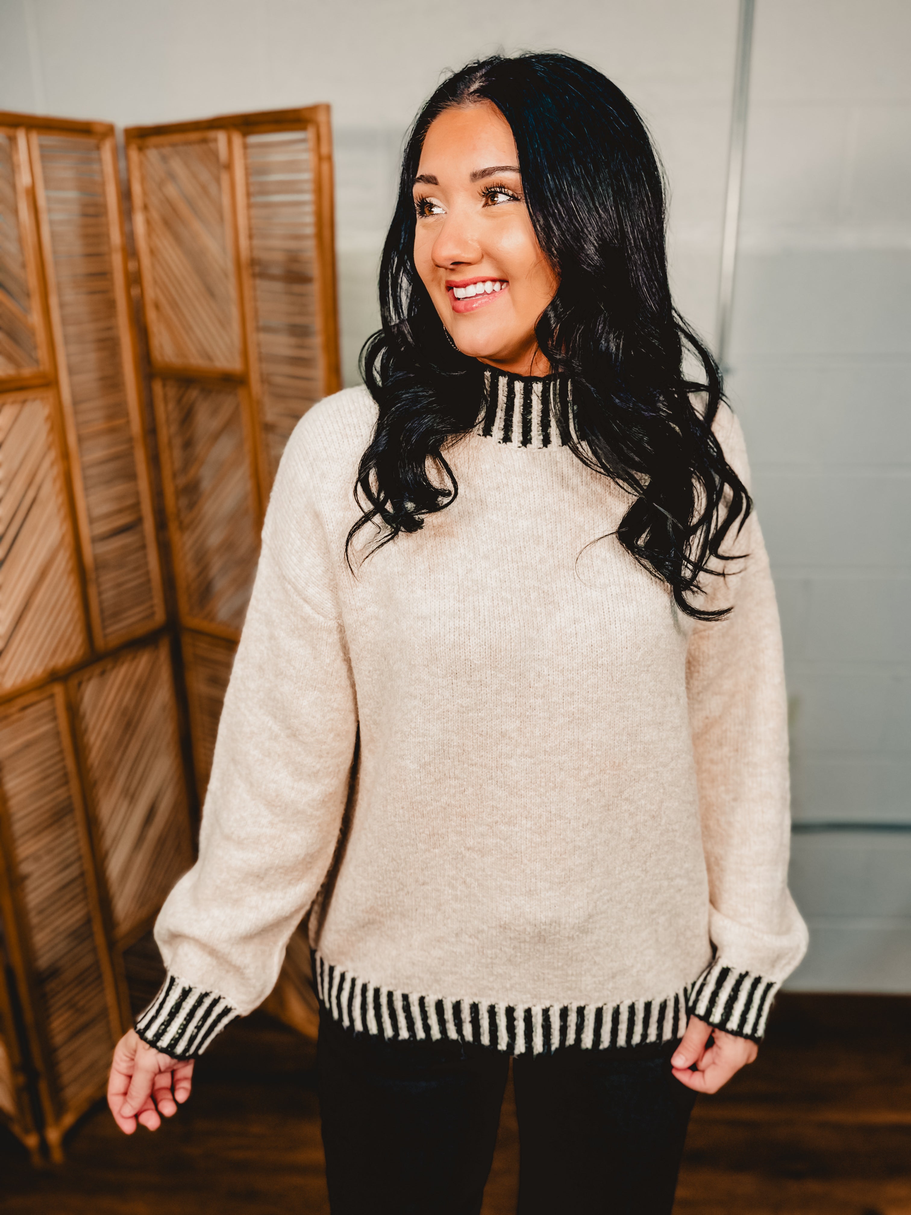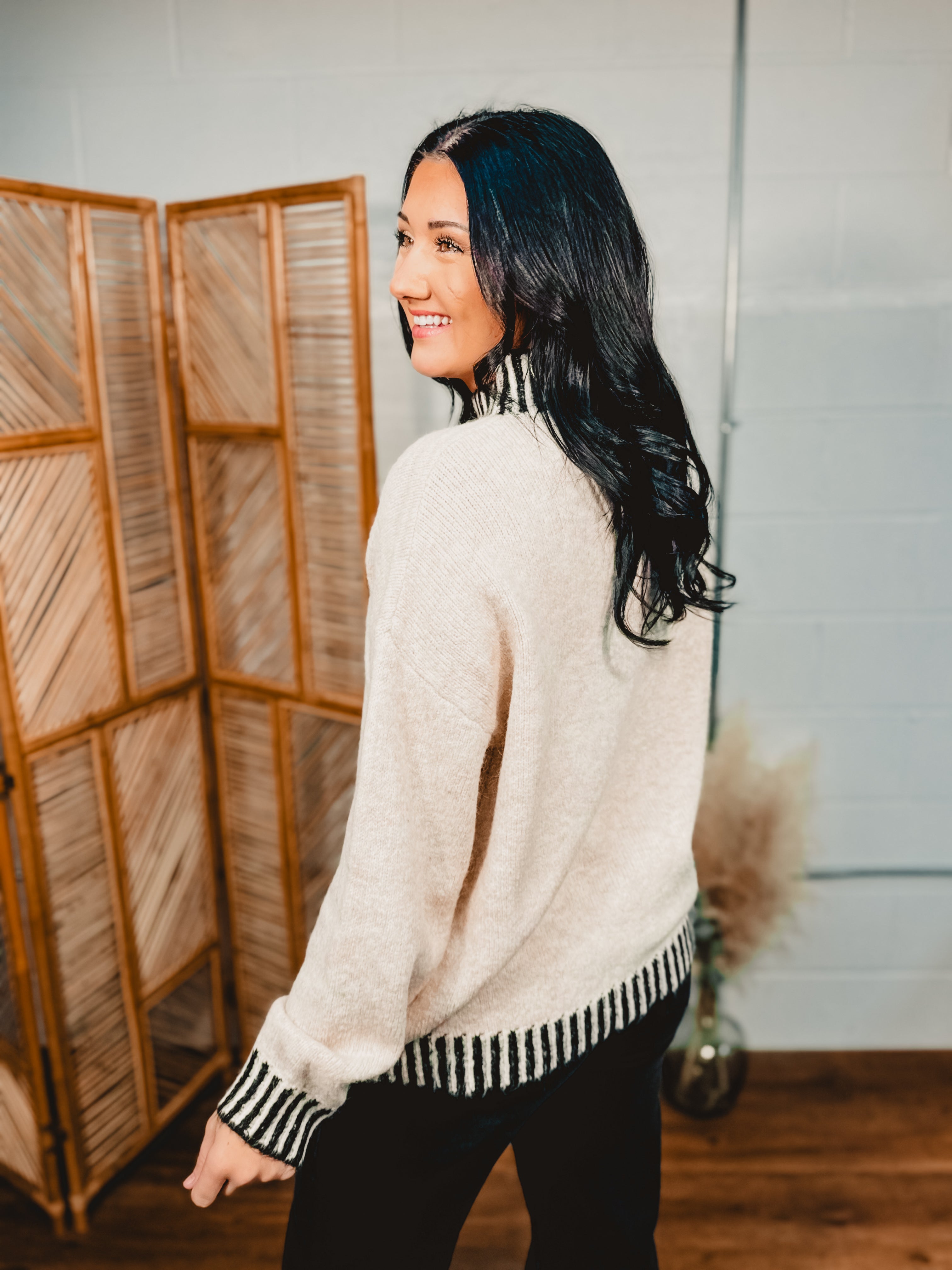 Edge Accent Mock Neck Knit Sweater - Oatmeal
