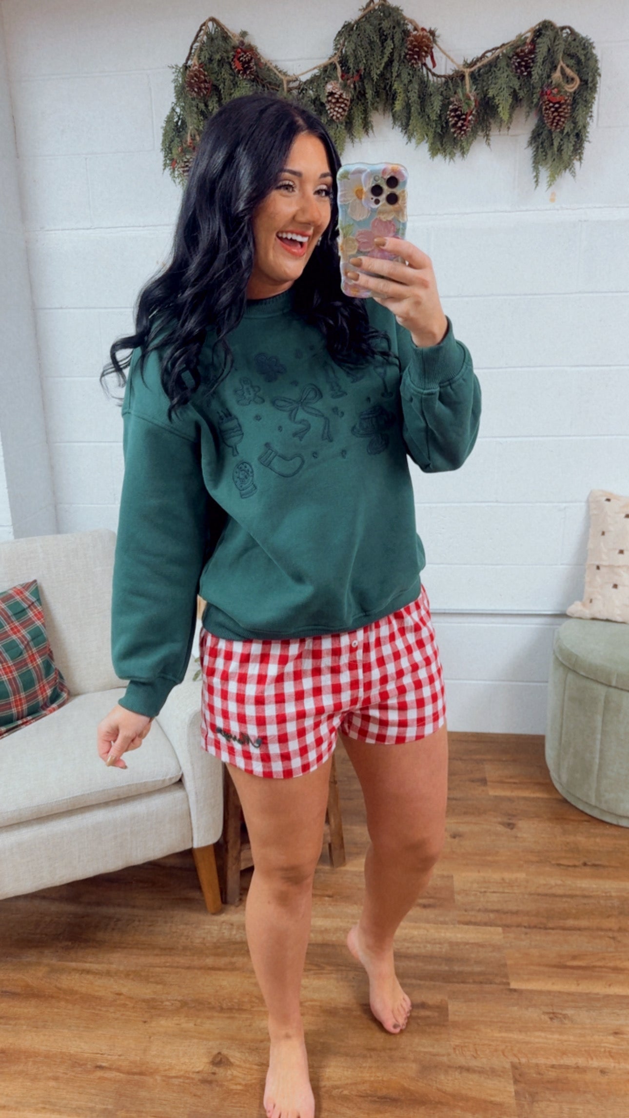 Embroidered Christmas Crewneck Sweatshirt - Green