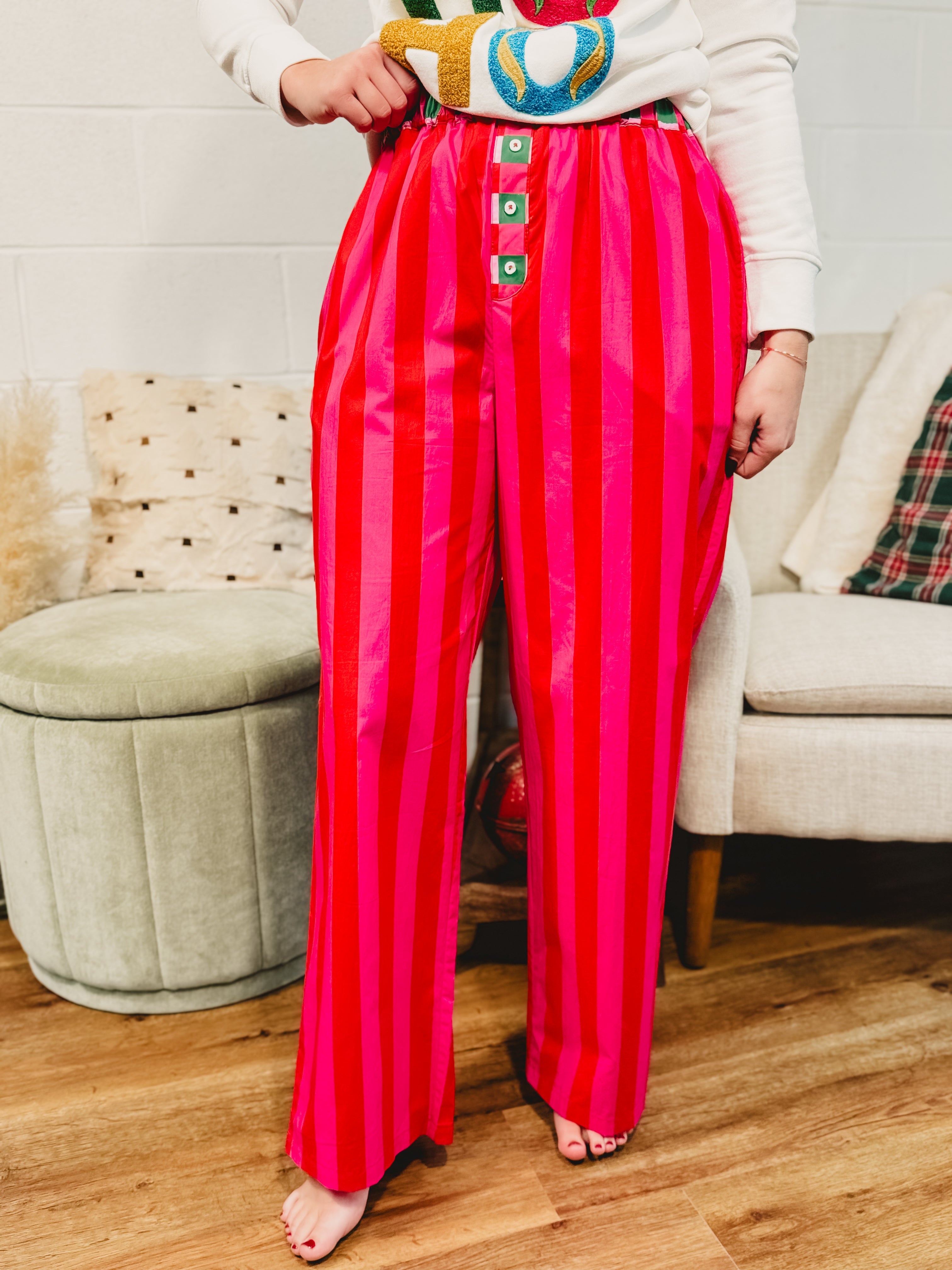 Stay comfy and festive all season long with these red multi striped boxer pants. Their soft feel and classic lounge fit make them perfect for cozy nights, lazy mornings, and holiday relaxing!