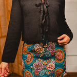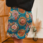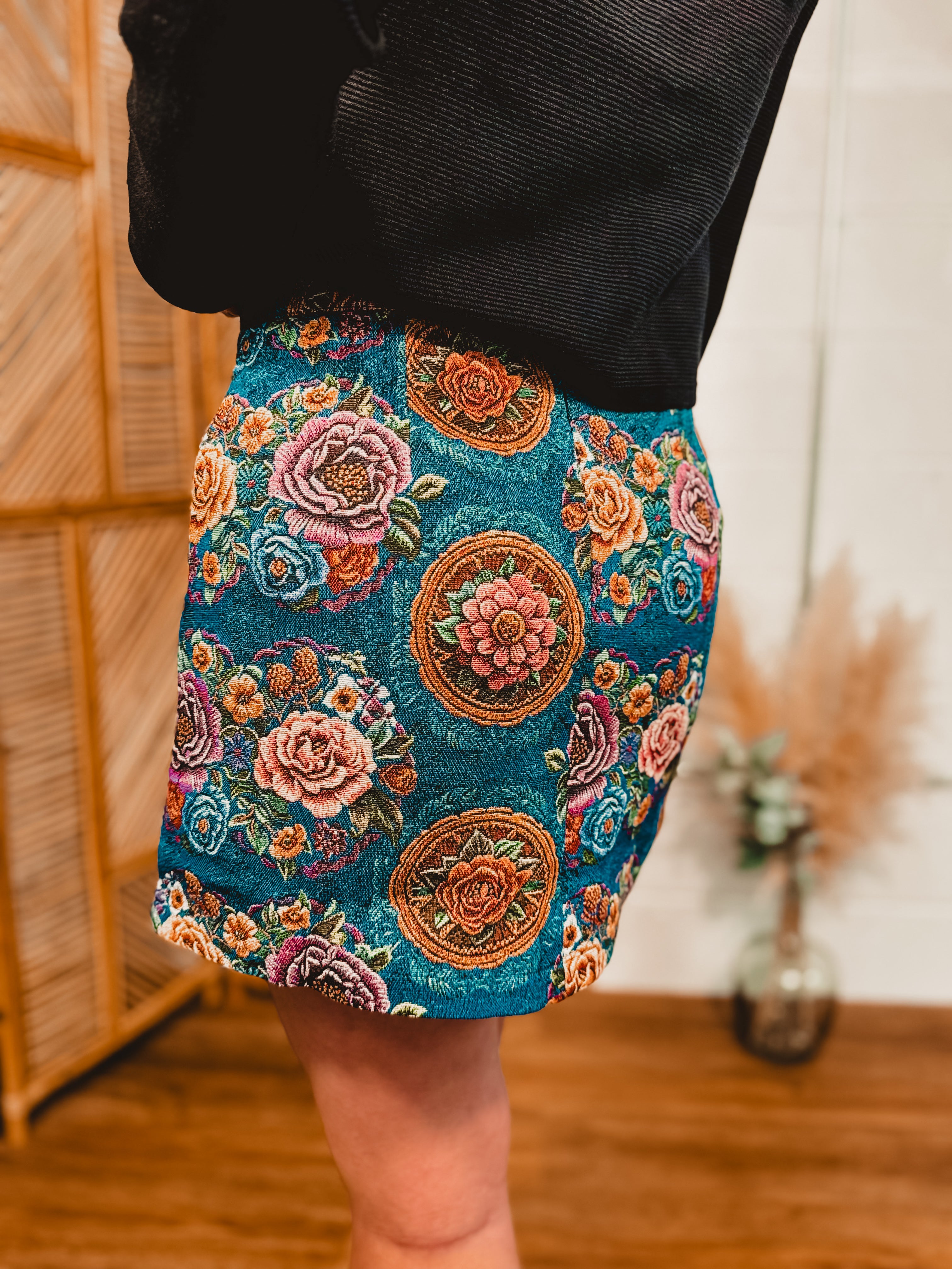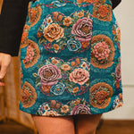 Floral Jacquard Tapestry Mini Skirt - Teal Blue