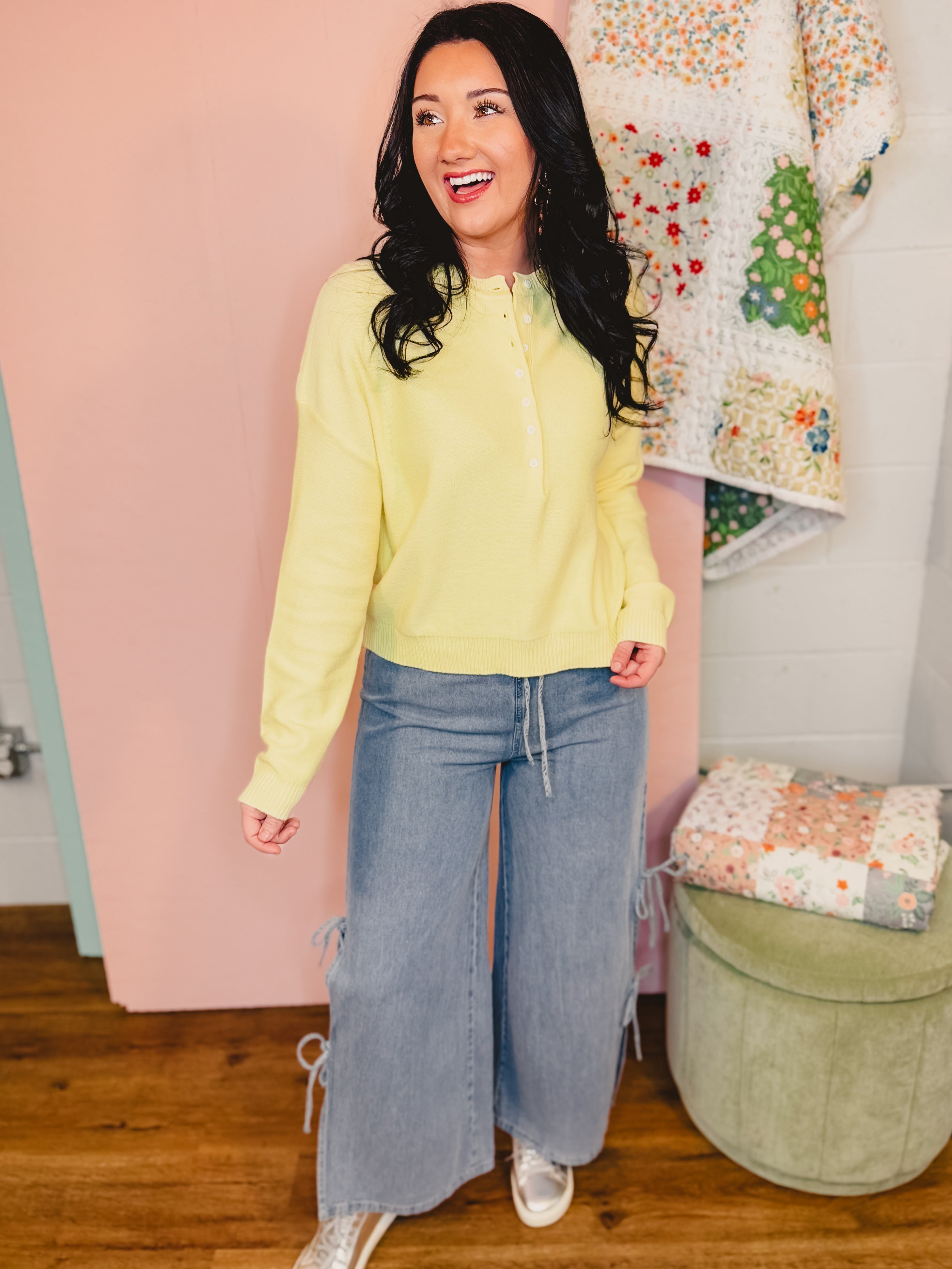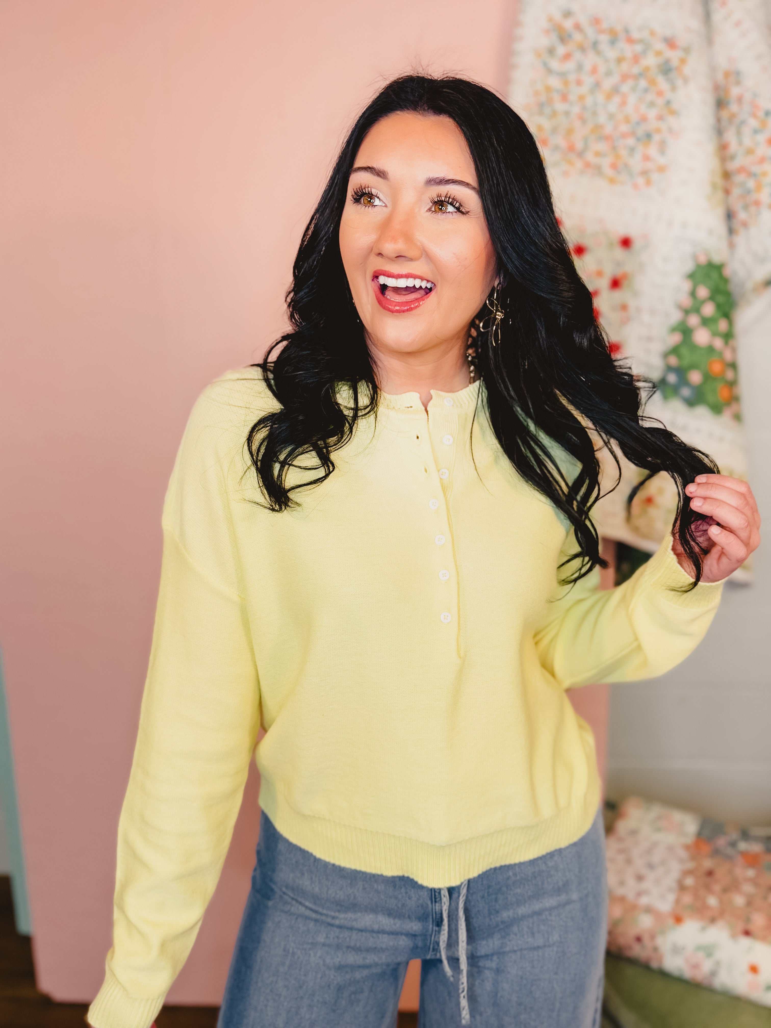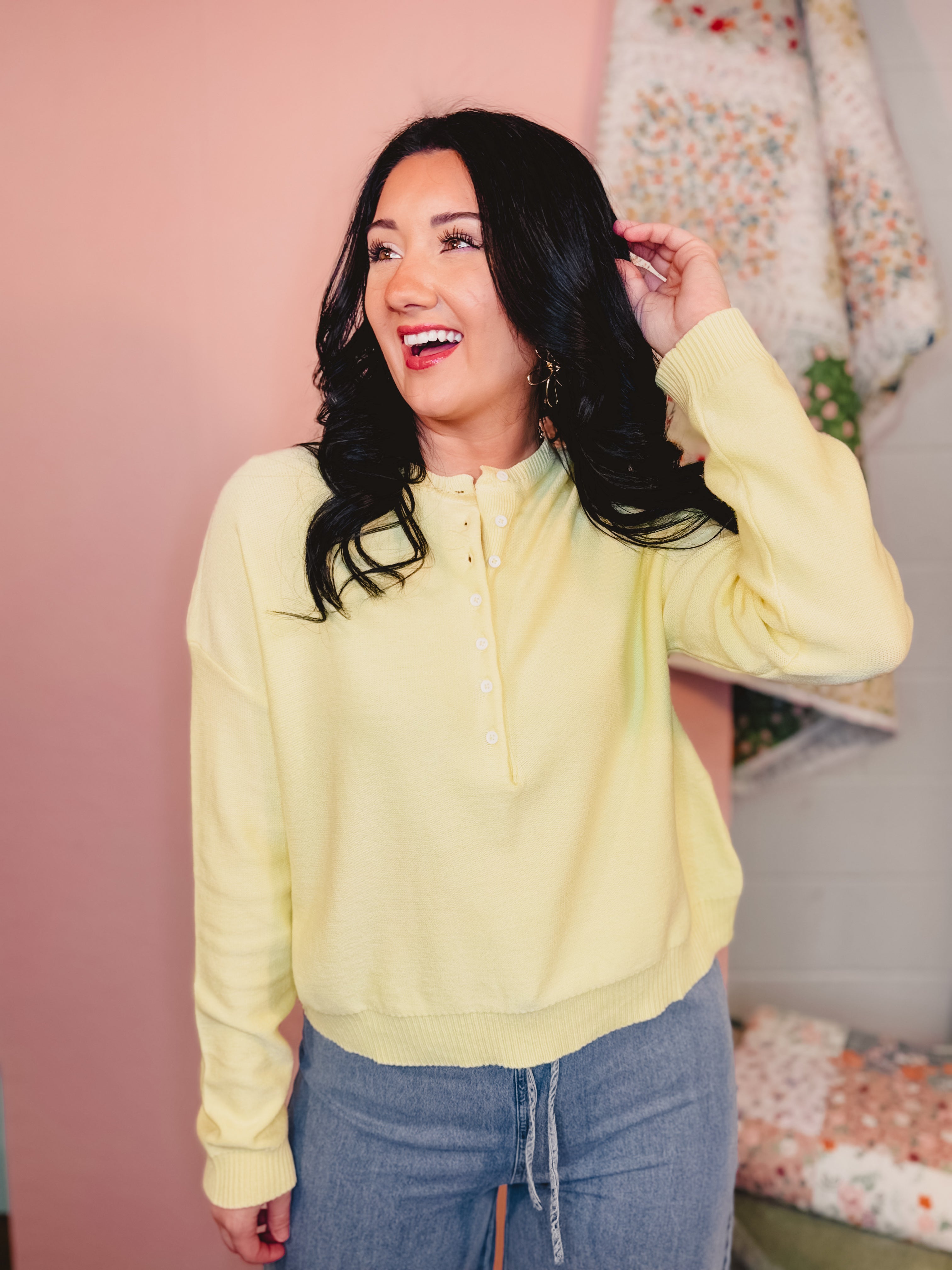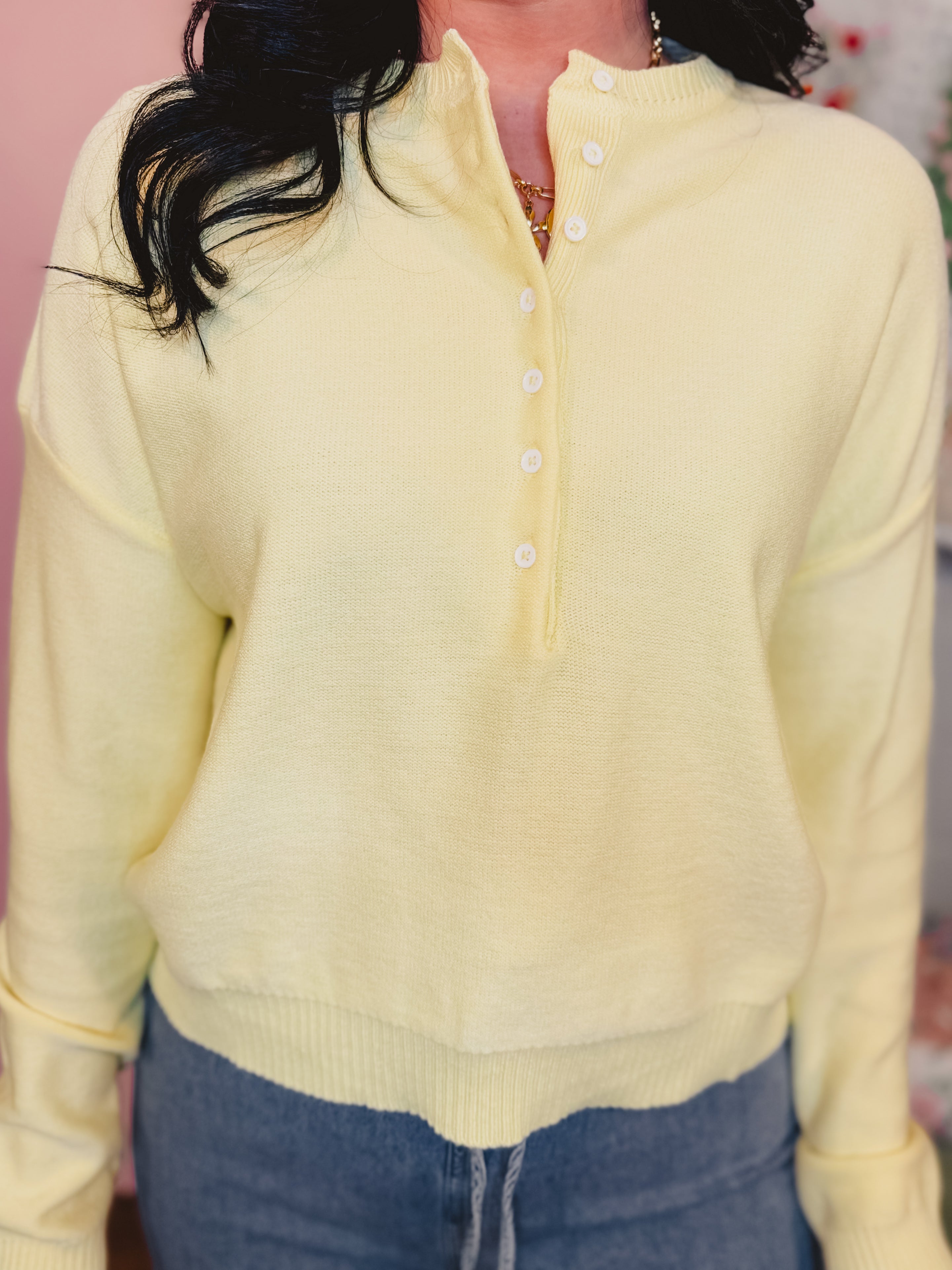 Henley Button-Up Sweater - Lemon