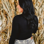 High Neck Long Sleeve Ribbed Bodysuit - Black