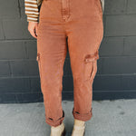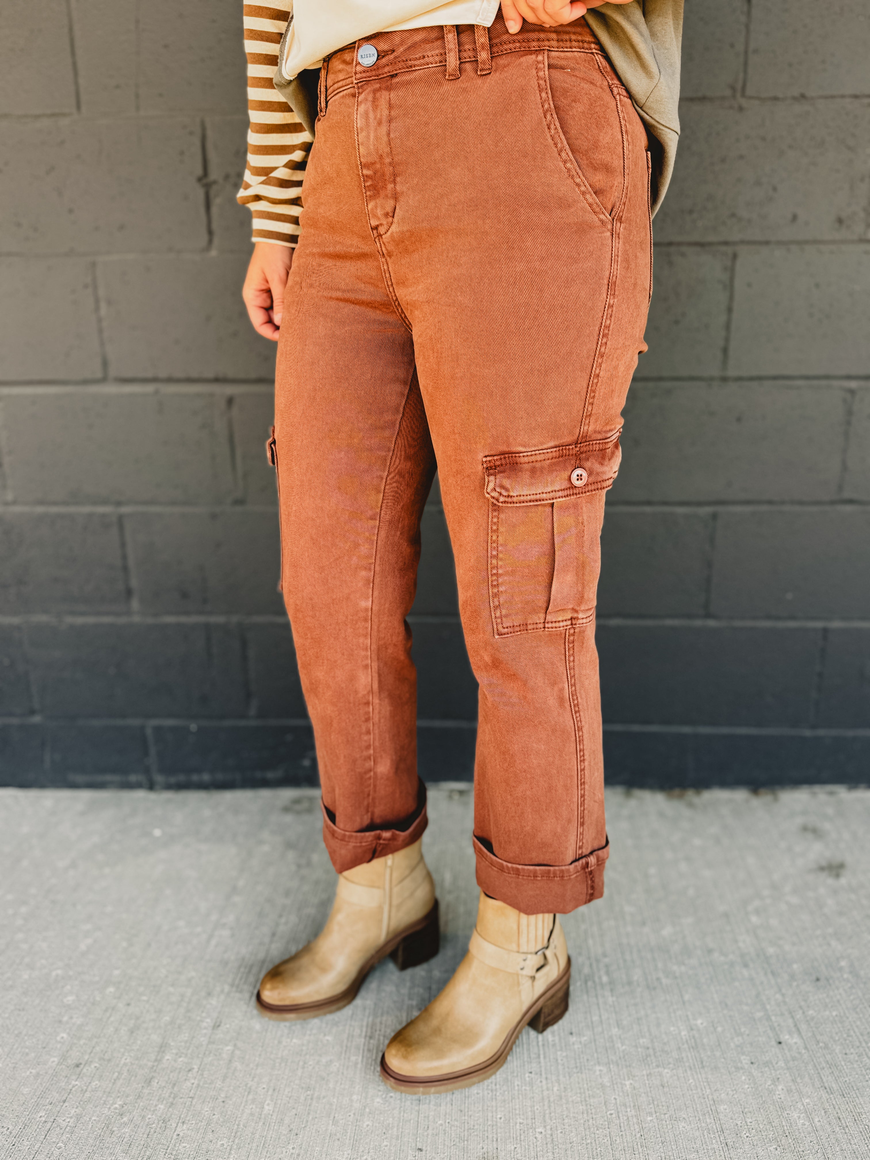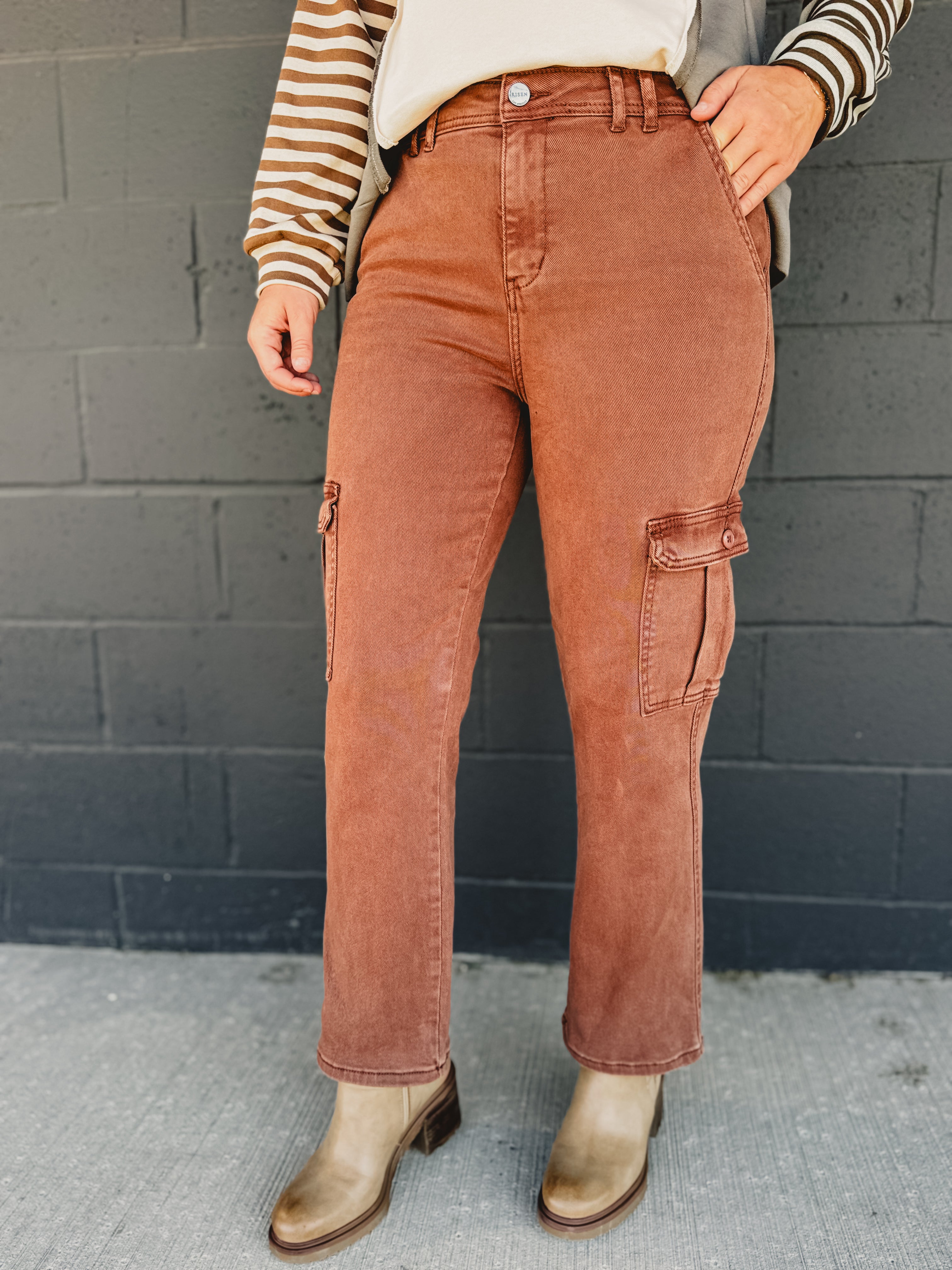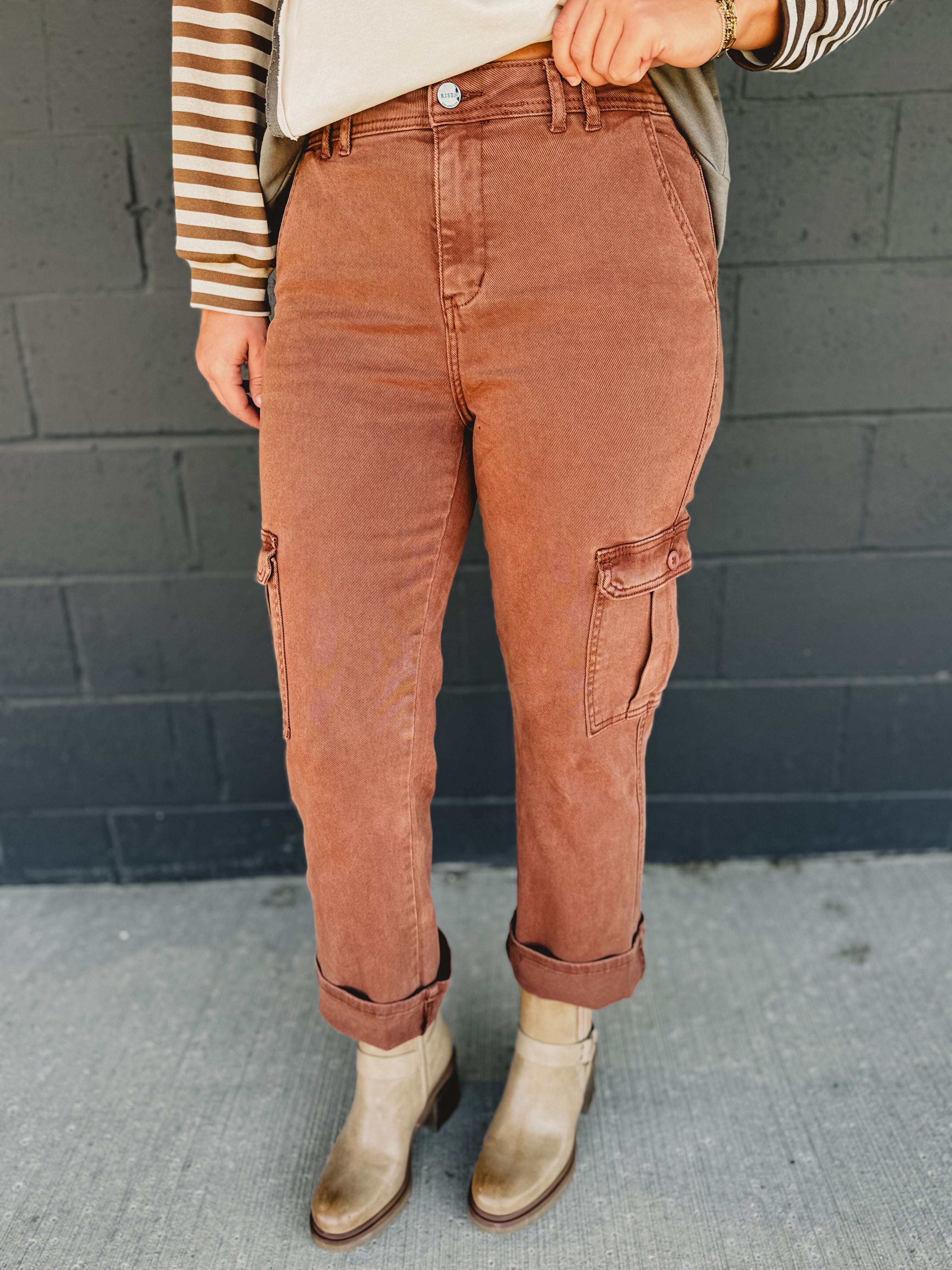 Utility meets style with these high rise cropped straight cargo pants in a rich espresso shade. Effortlessly cool and versatile, they’re perfect for everyday wear!
