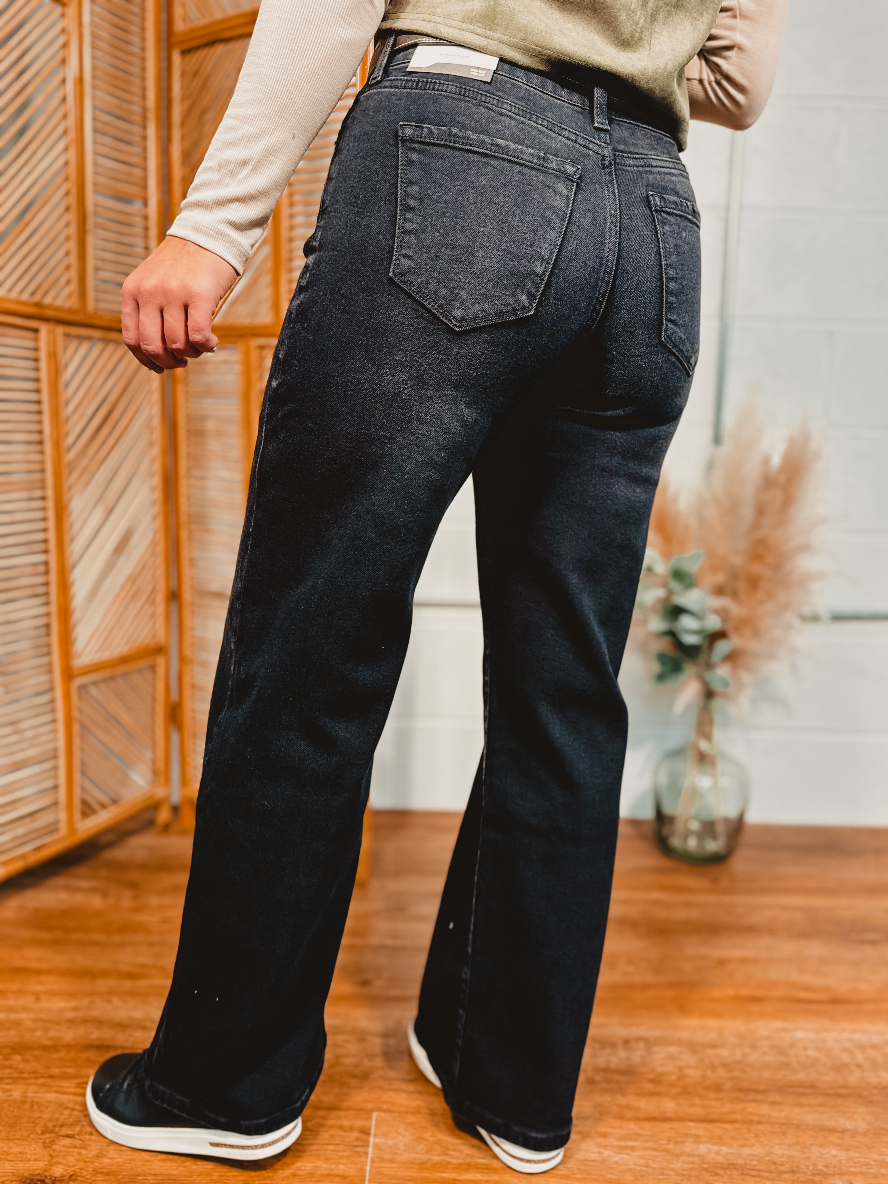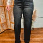 These black wash wide-leg jeans are the modern closet staple your wardrobe has been waiting for. With a flattering high rise, stretchy comfort-fit fabric, and a clean non-distressed finish, they bring an elevated, polished look to every outfit. Dress them up with a sleek bodysuit and heels or pair with cozy knits and sneakers — versatile, timeless, and oh-so flattering.