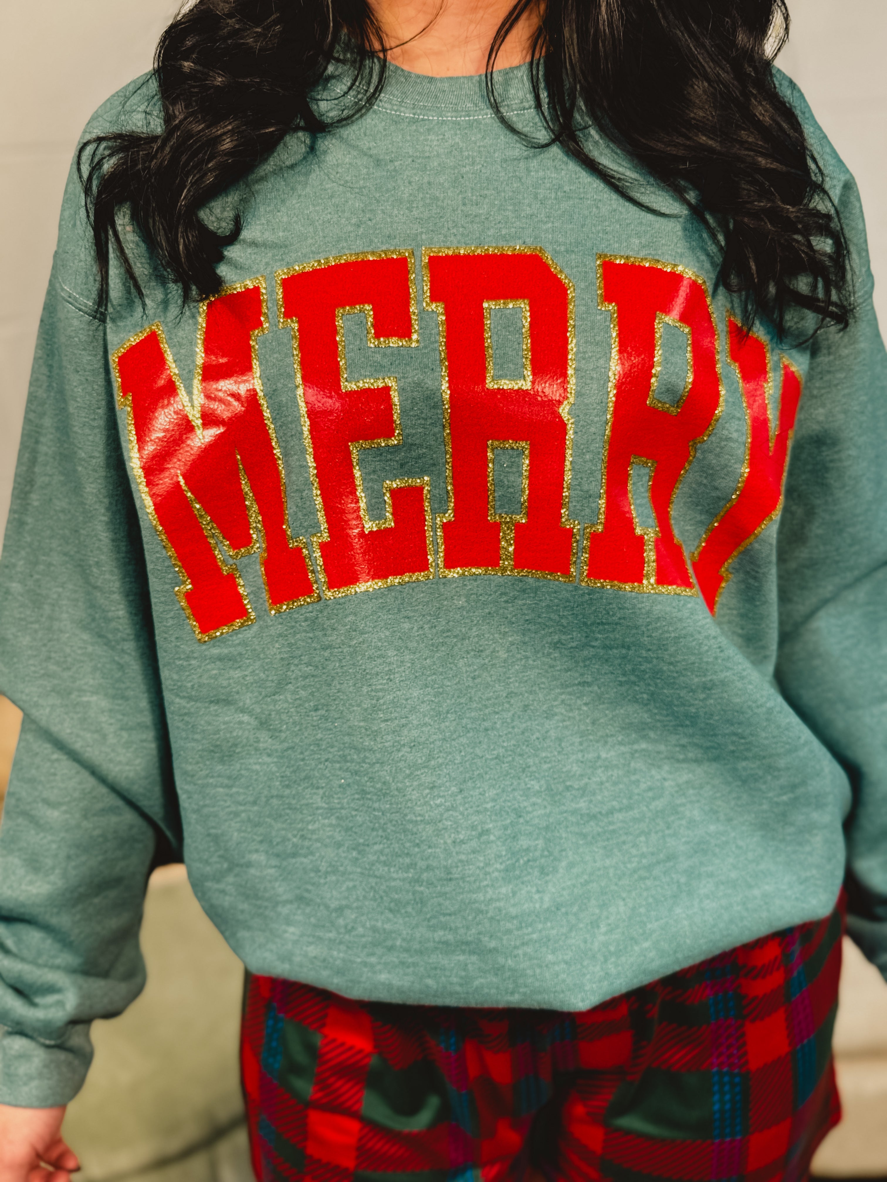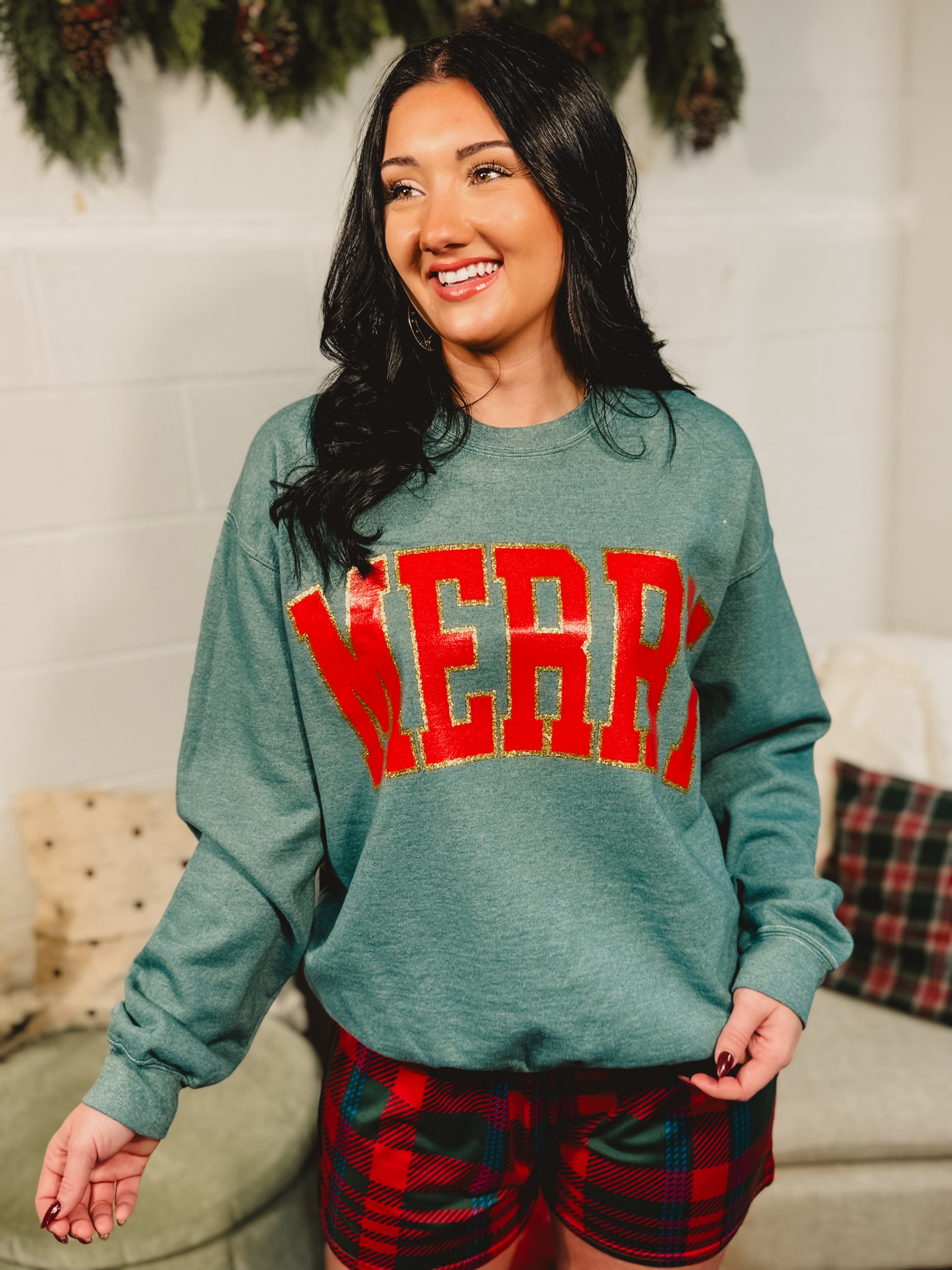 Merry Glitter Fleece Sweatshirt - Hunter Green