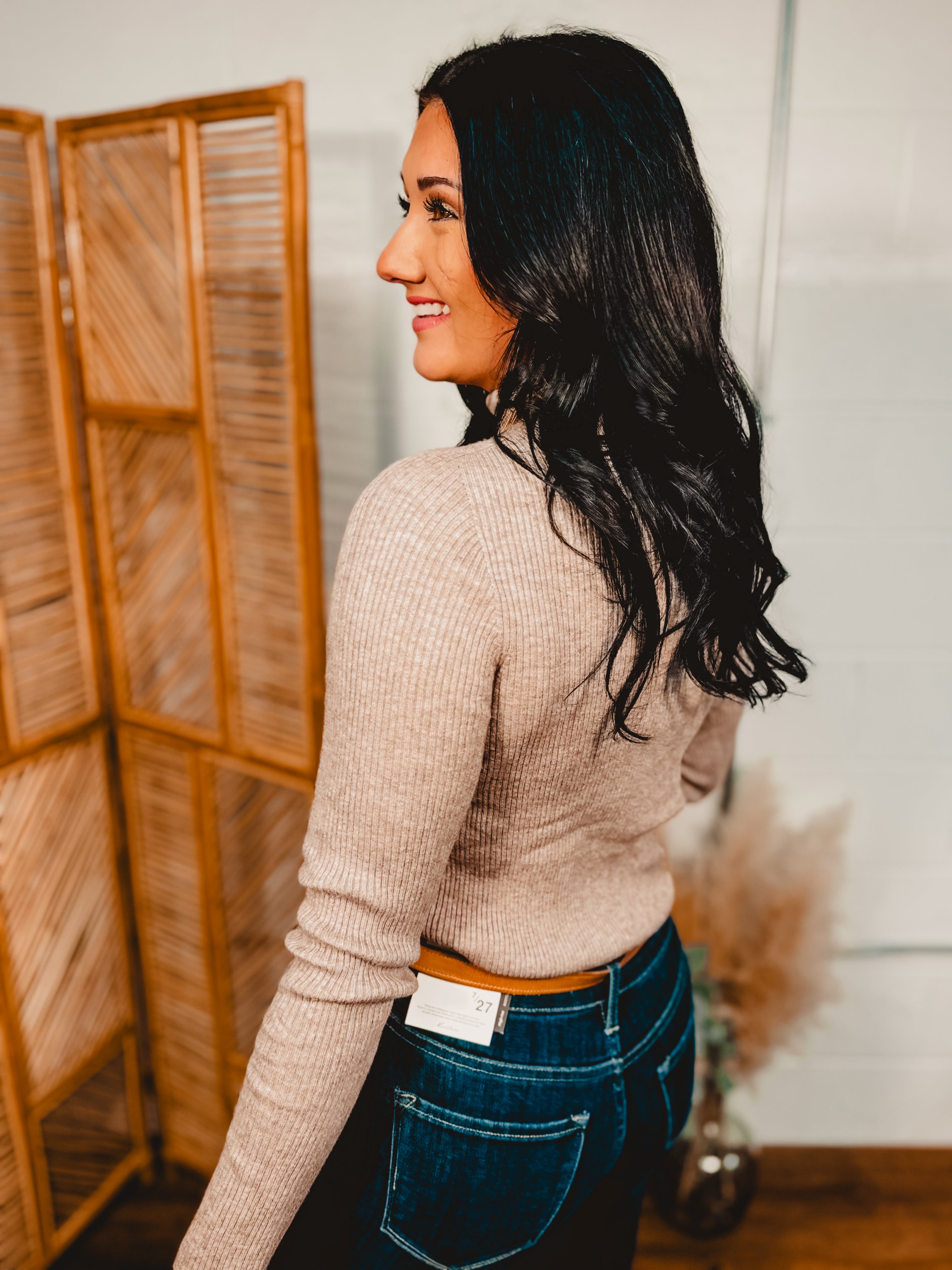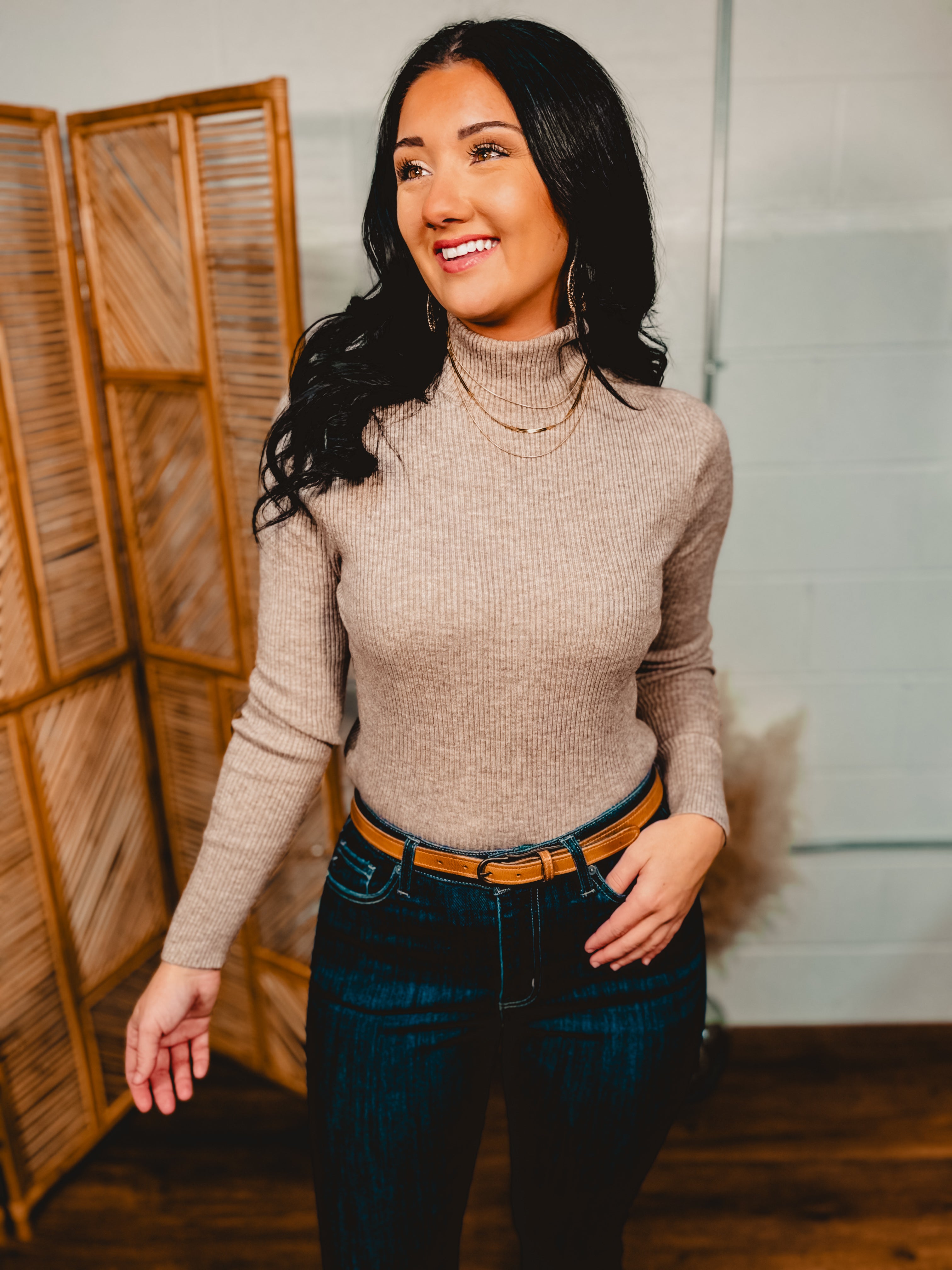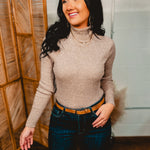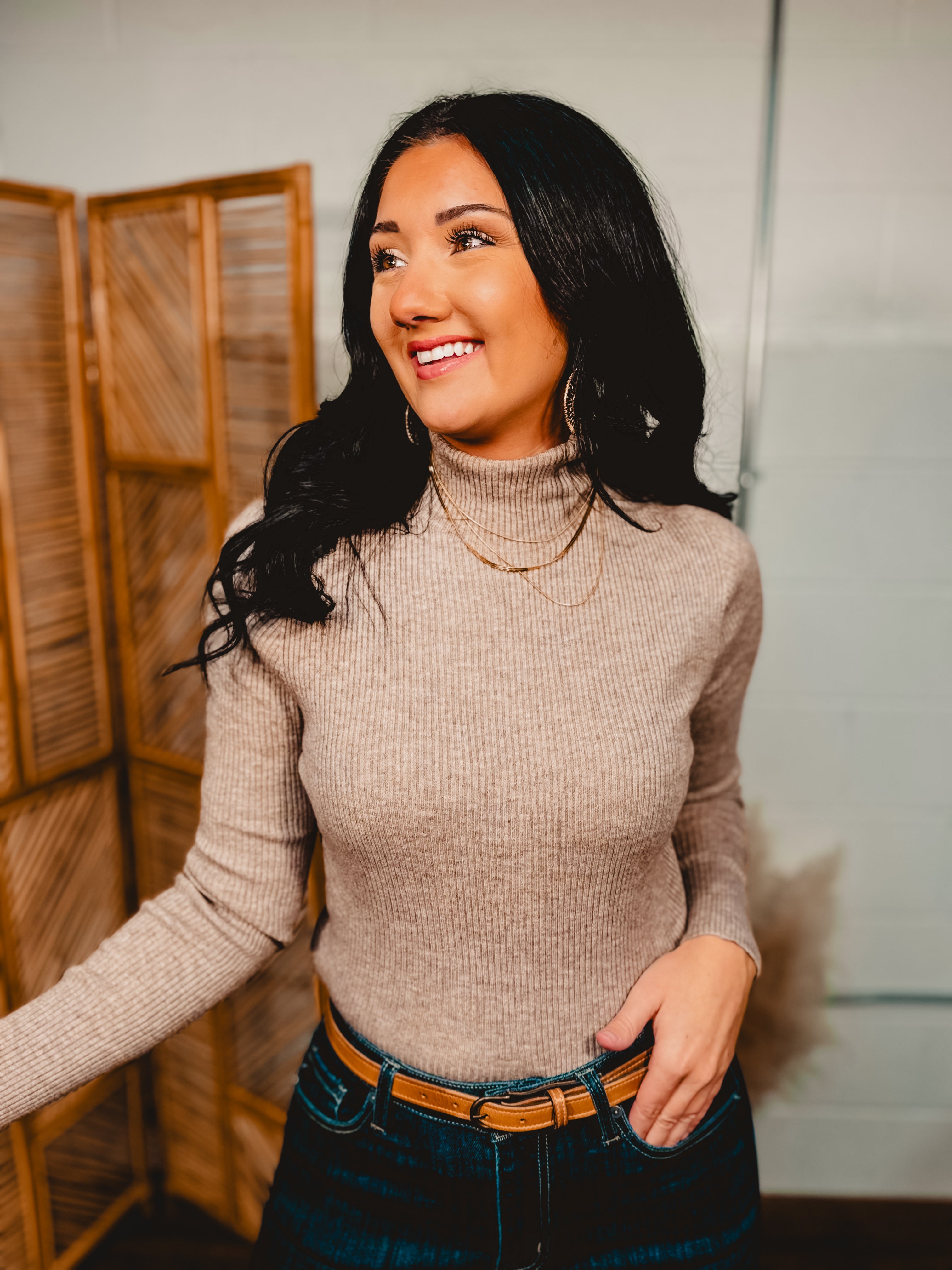 Ribbed Long Sleeve Mock Neck Top - Fudge