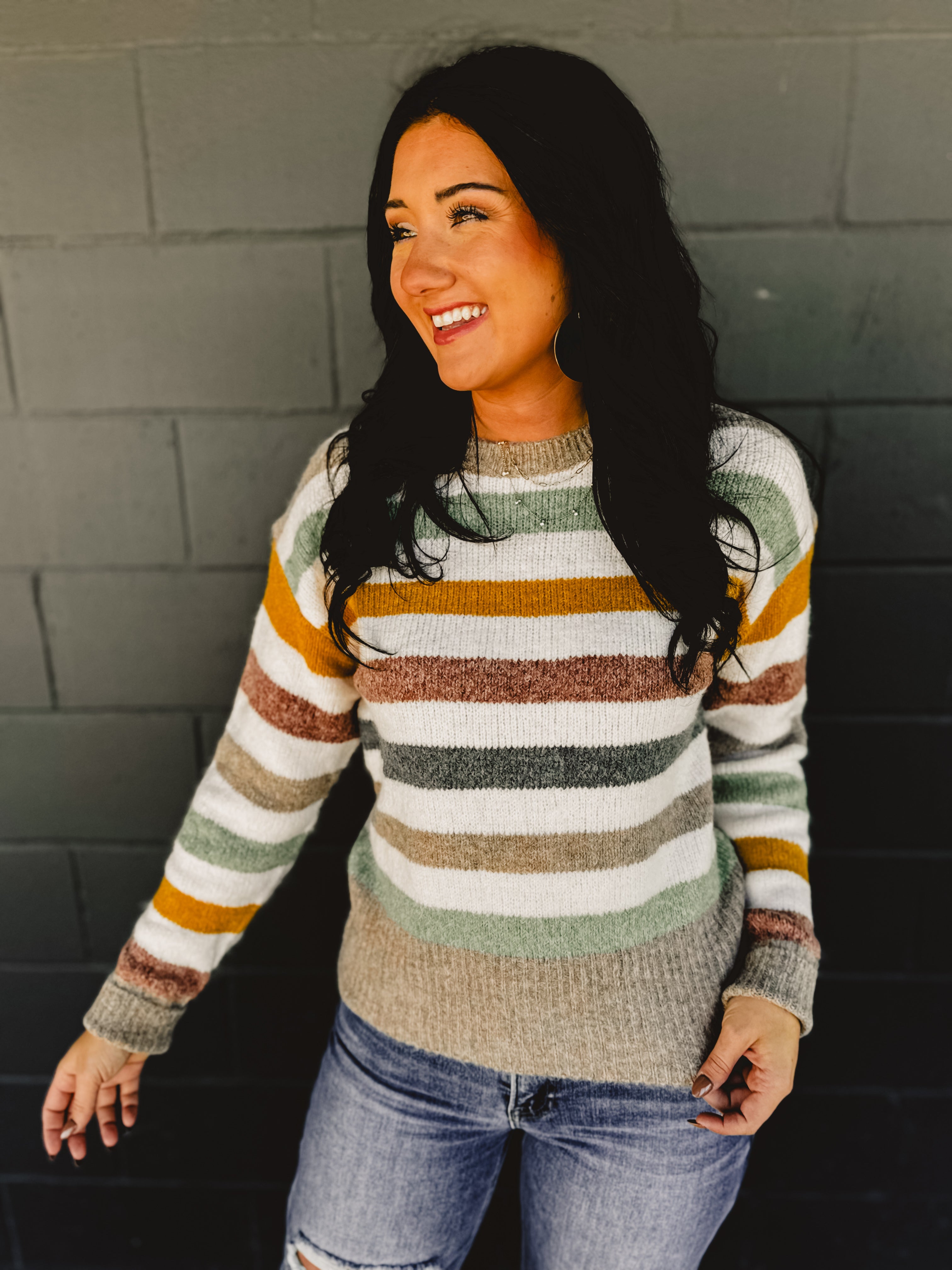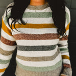 Bright and cheerful, this off-white sweater features multicolor stripes for a playful pop of style, making it a cozy favorite for cooler days.