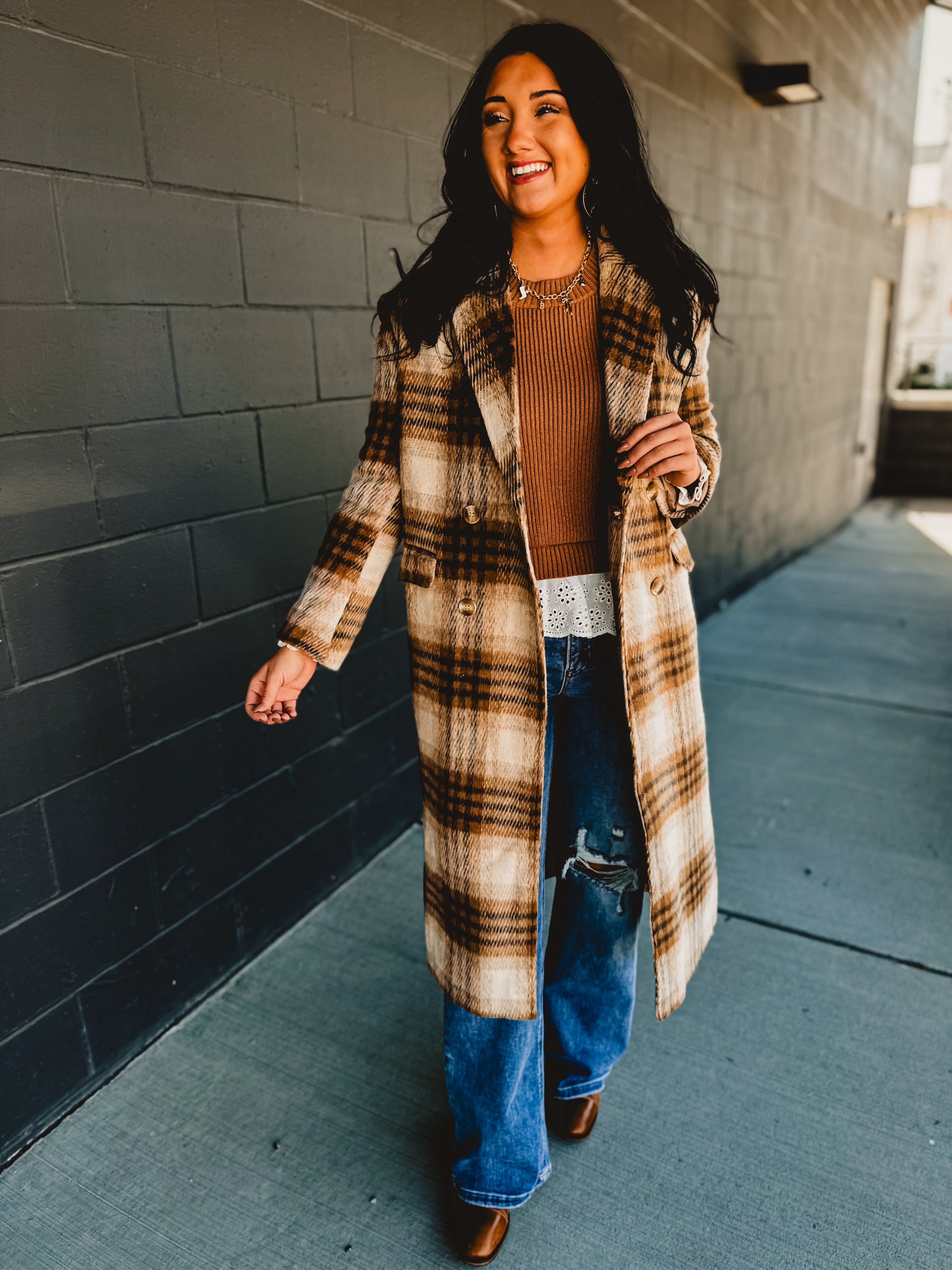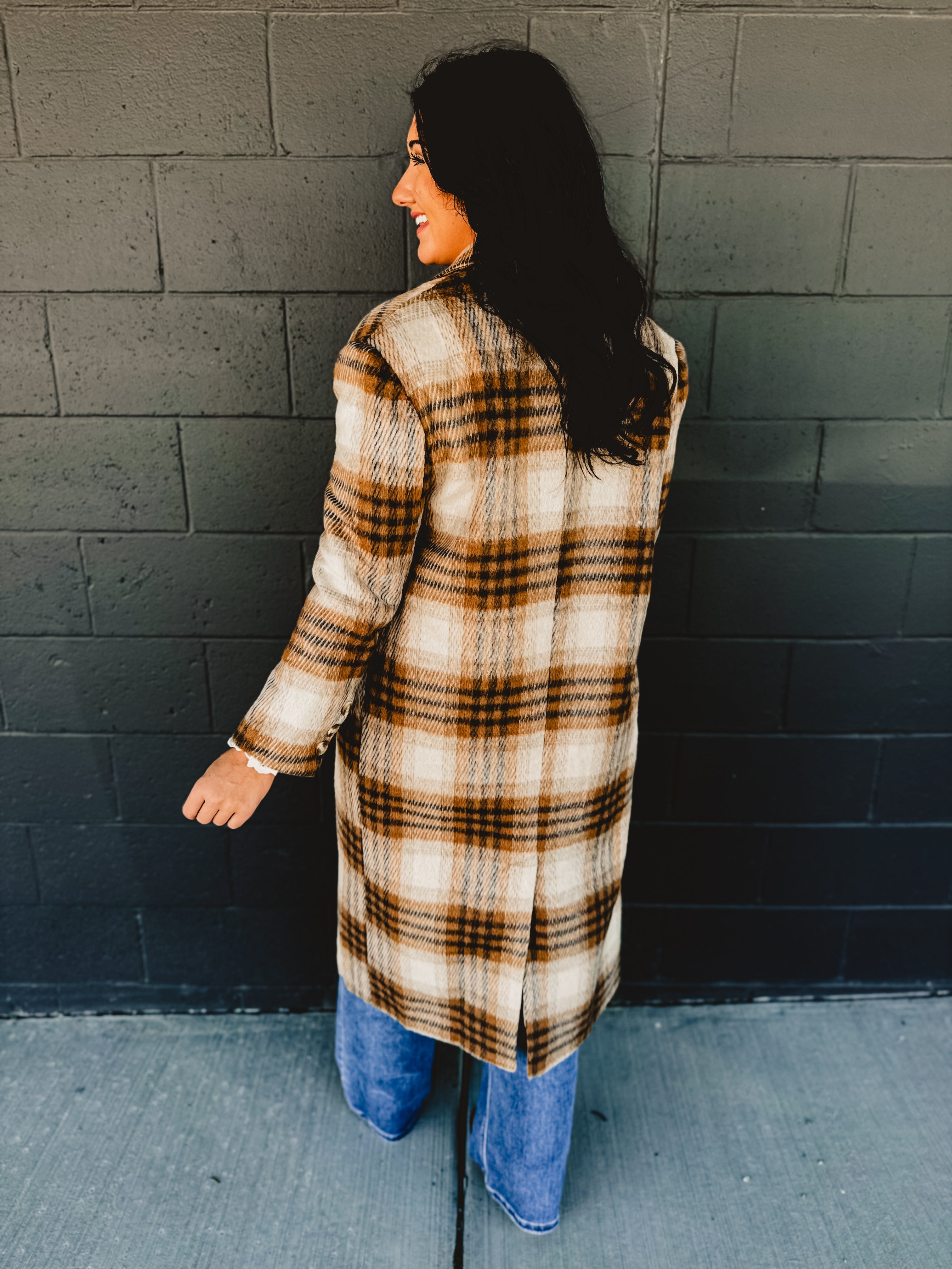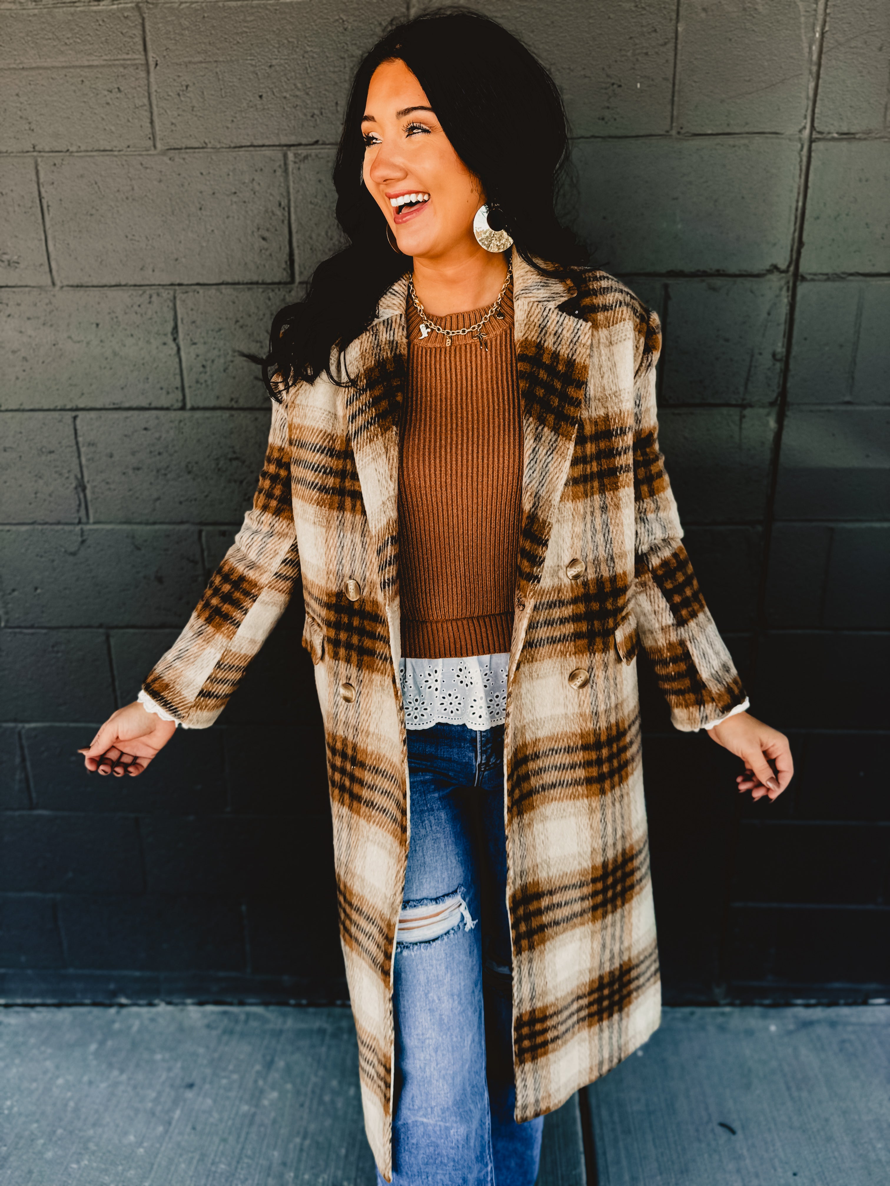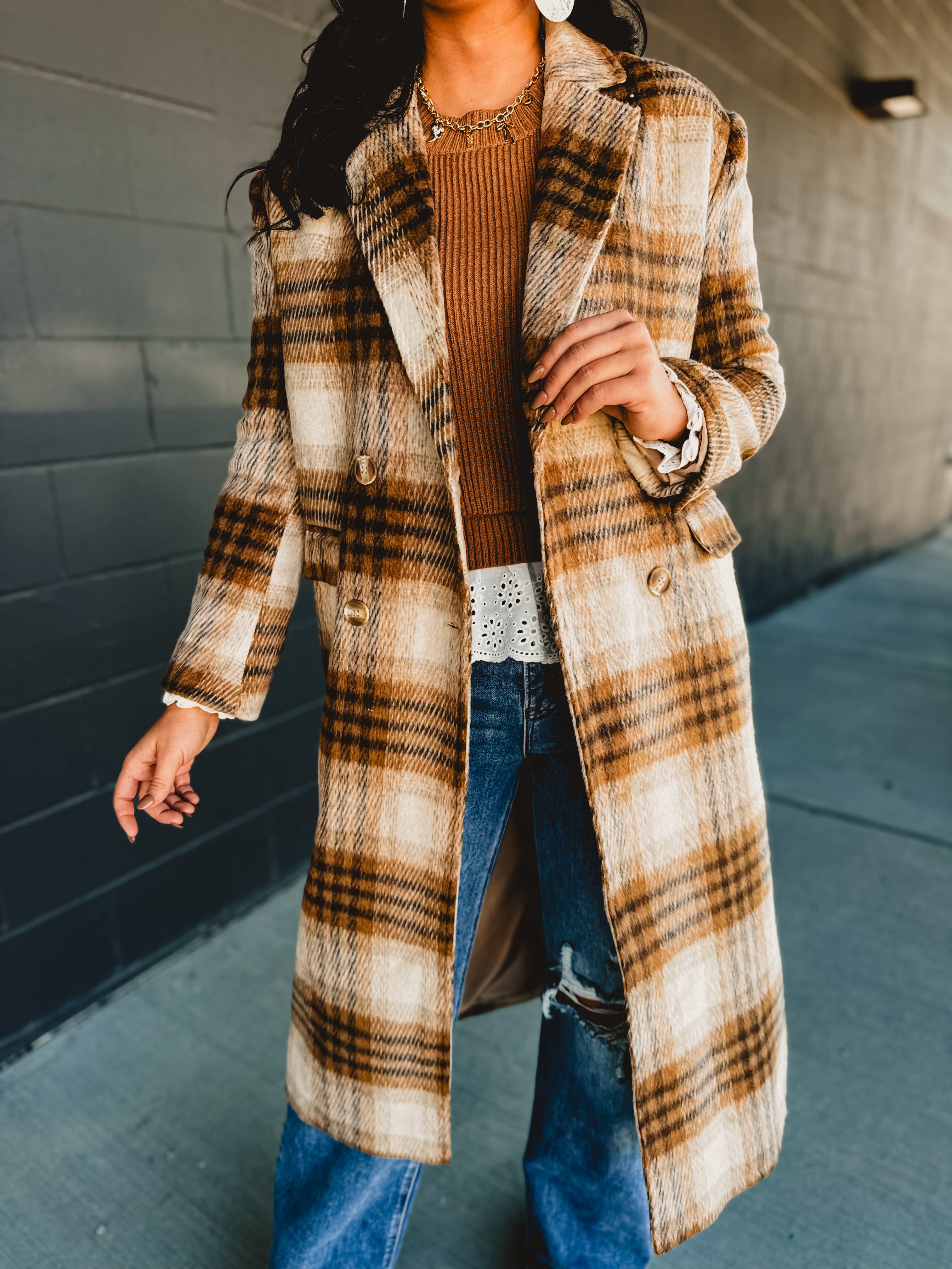 Classic and refined, this plaid coat adds effortless sophistication to any outfit — the perfect statement layer for the season and plenty warm too!