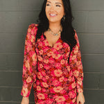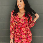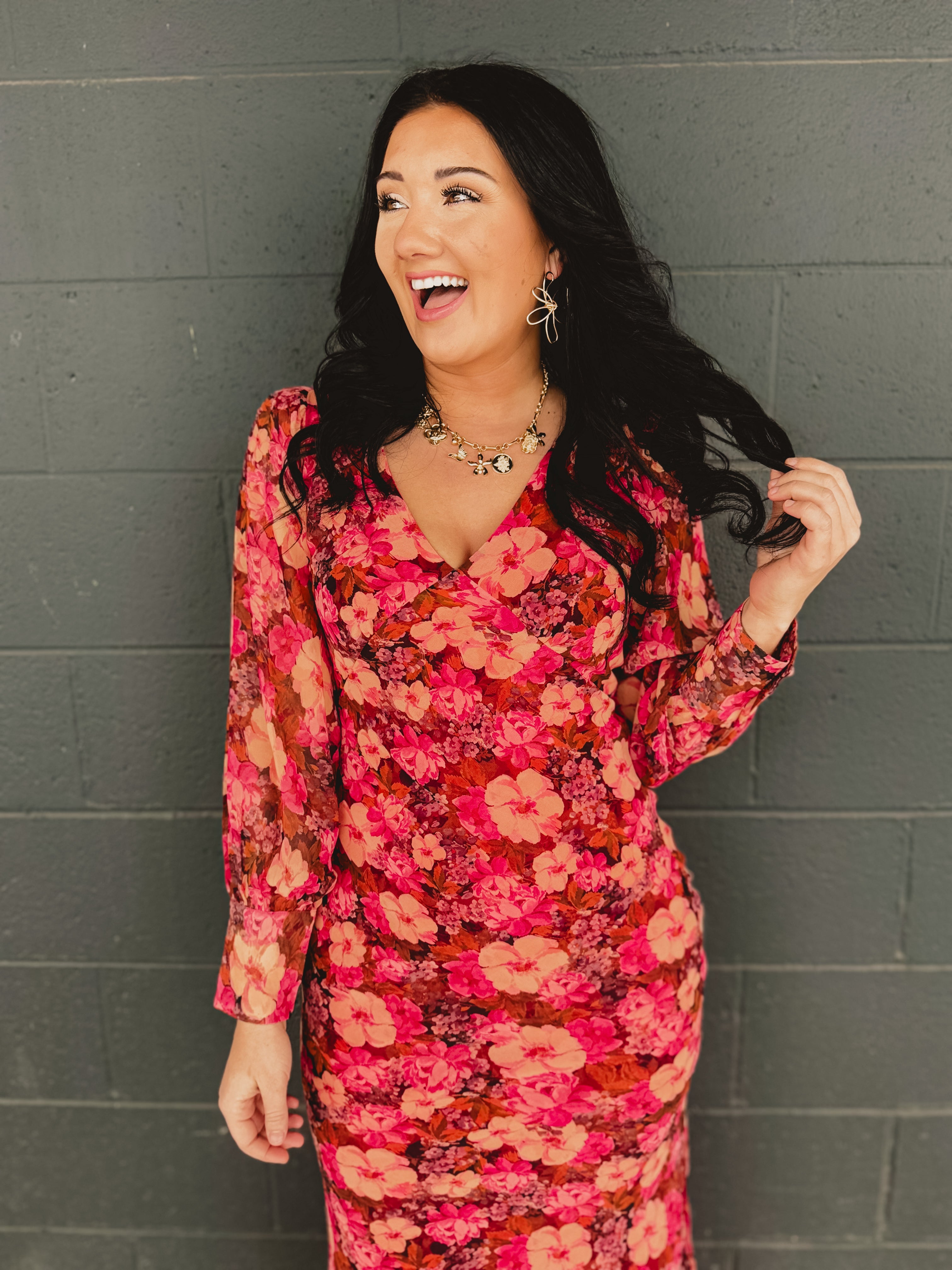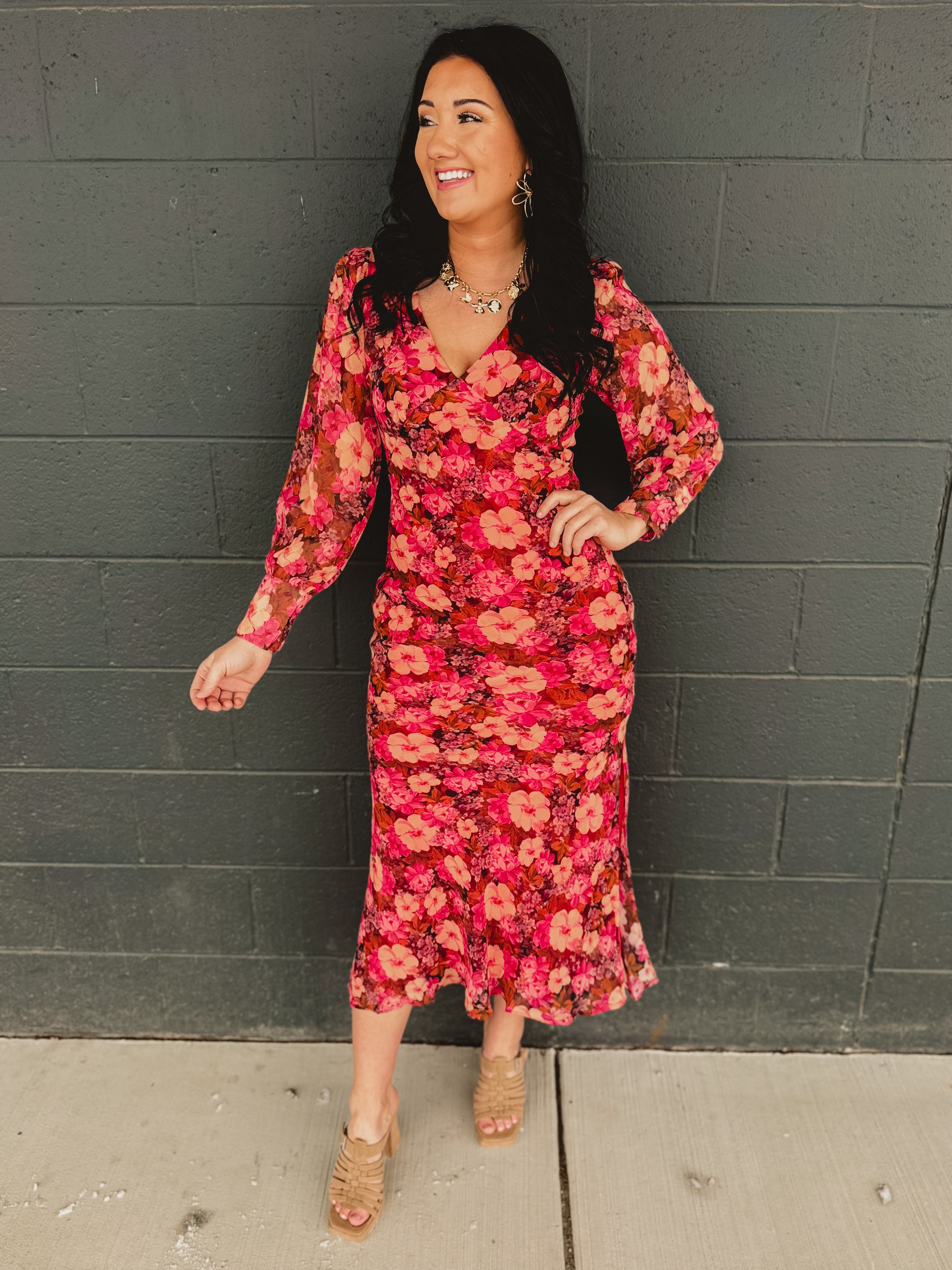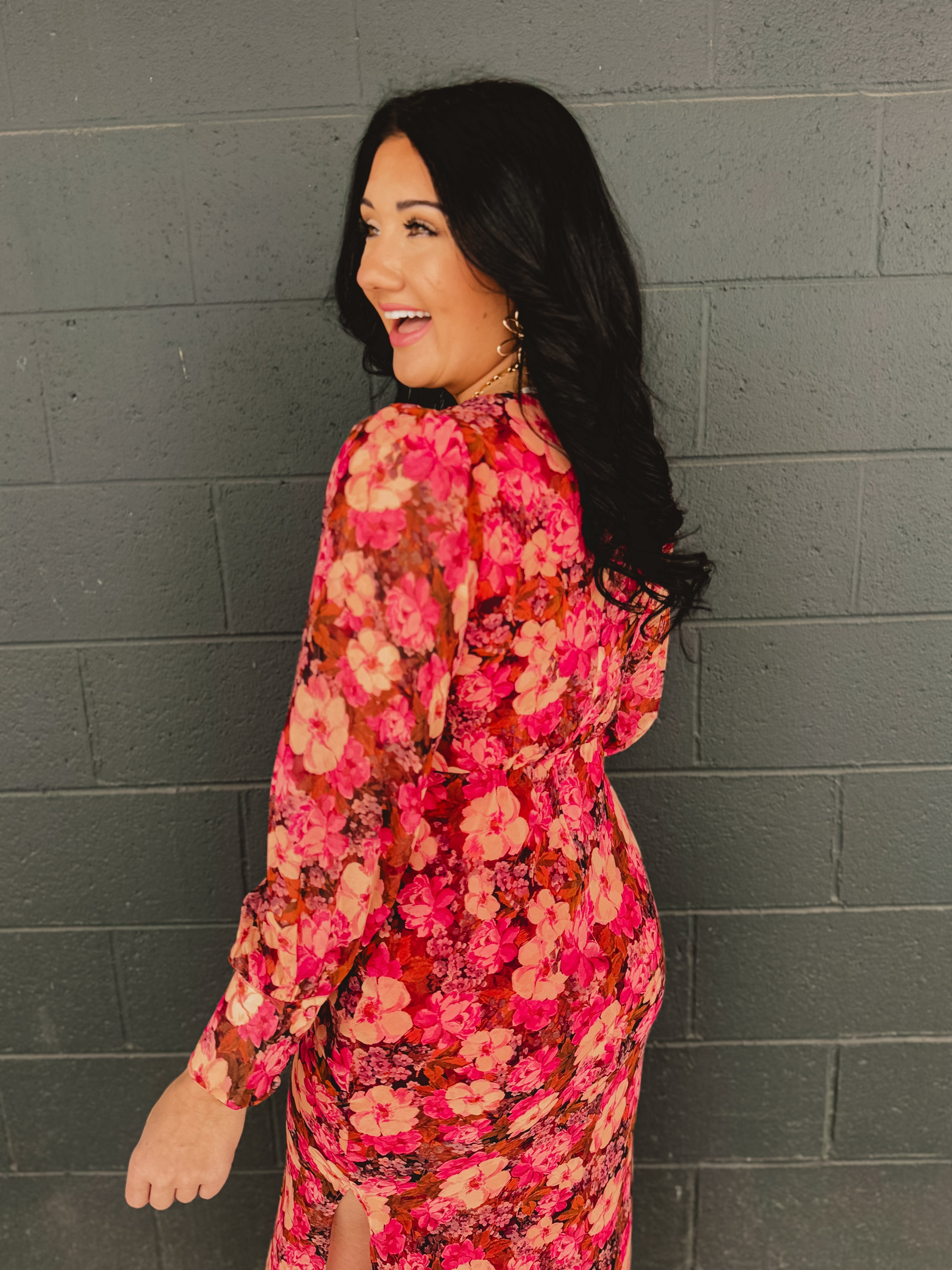 Plunging V-Neck Long Sleeve Maxi Dress - Carmine Rose
