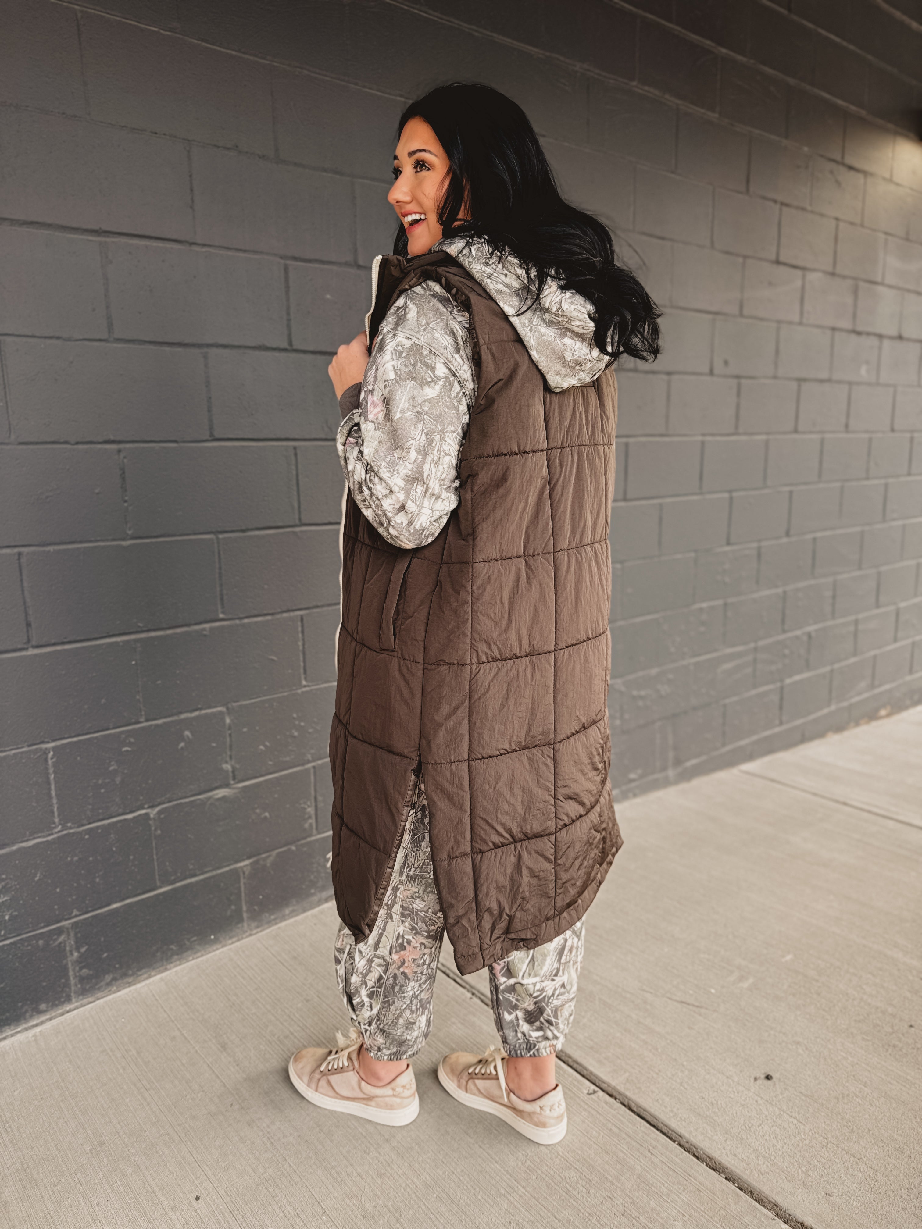 This longline puffer vest is a modern essential for effortless layering, offering lightweight warmth with a sleek, everyday silhouette. The neutral ash tone makes it endlessly versatile for fall and winter styling.