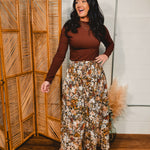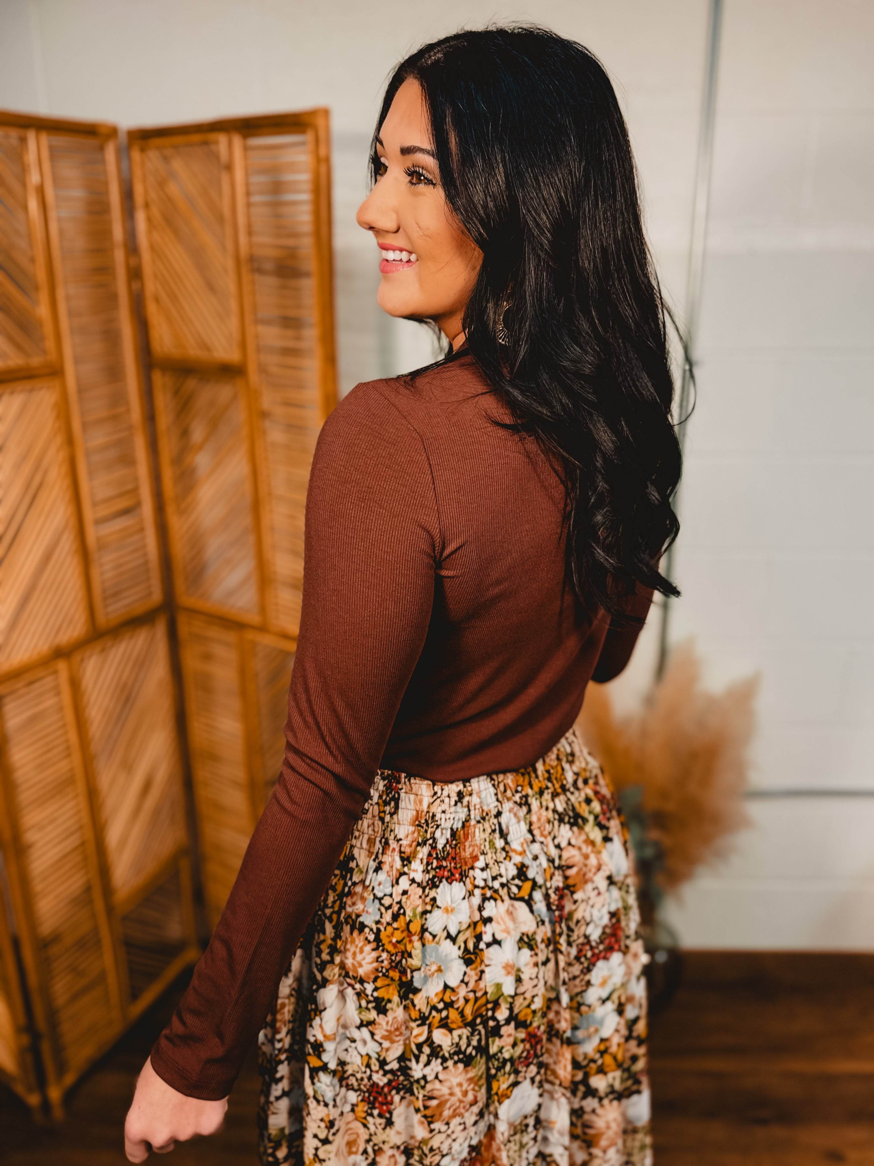 Velvet Embossed Long Sleeve Maxi Dress - Mocha