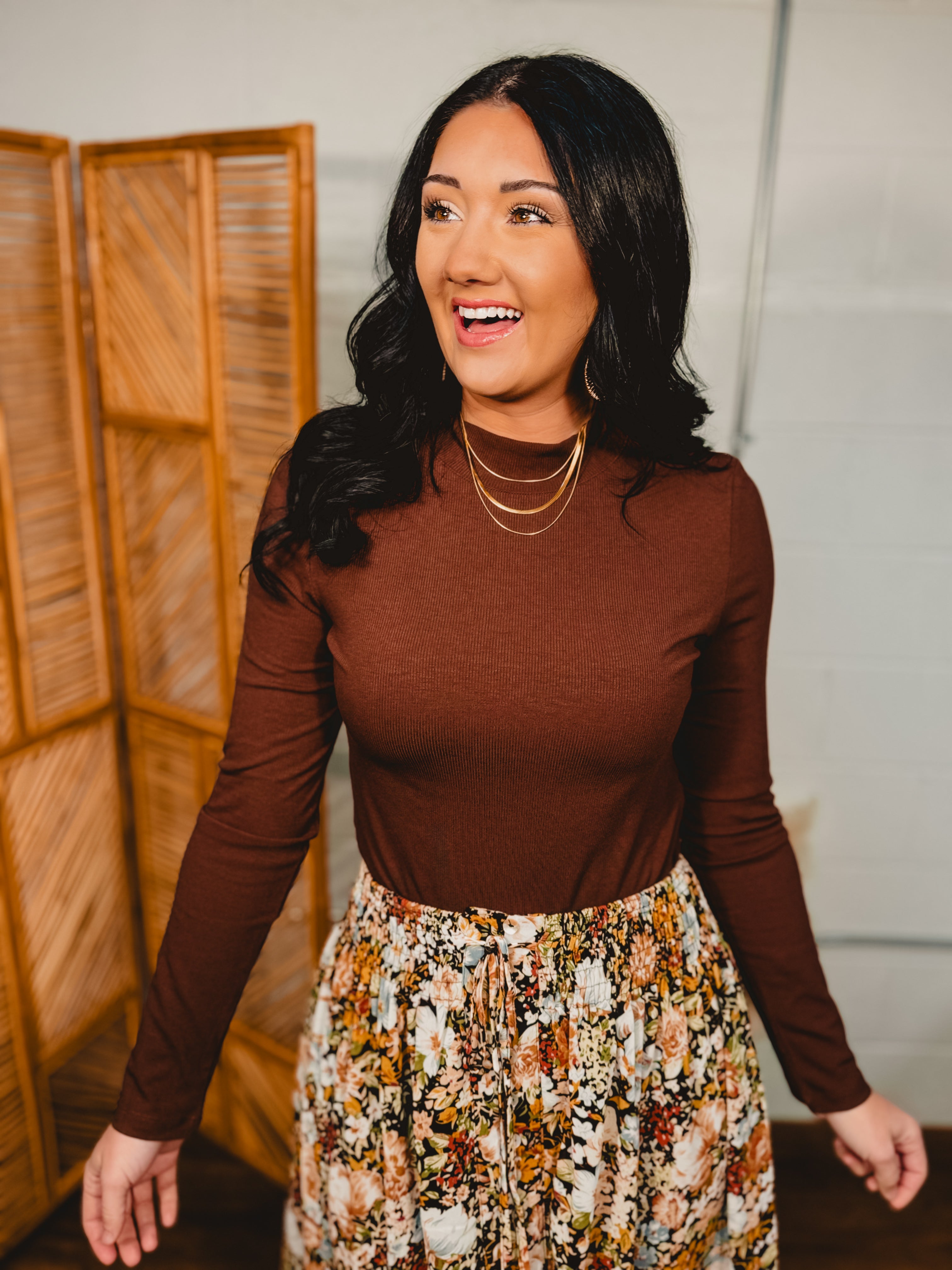 Ribbed Long Sleeve Mock Neck Top - Fudge
