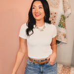 Ribbed Relaxed Crop Knit Tee - Ivory