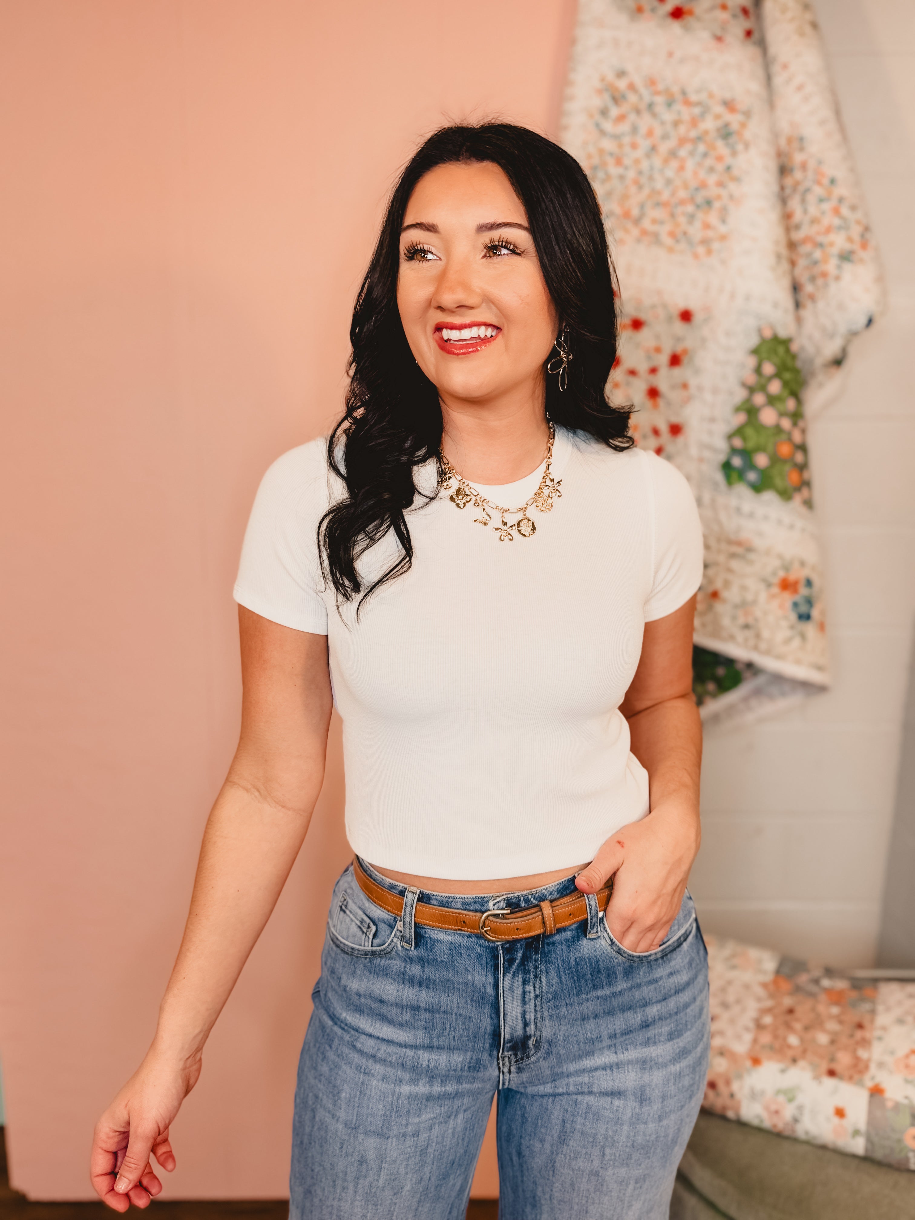 This ribbed relaxed crop knit tee is soft, comfy, and perfect for easy everyday wear. Its casual style makes it a go-to for spring and summer outfits.