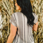Striped Side Button Down Top - Mocha