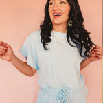 Textured Knit Loose Fit Set - Sky