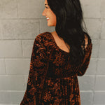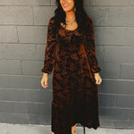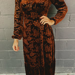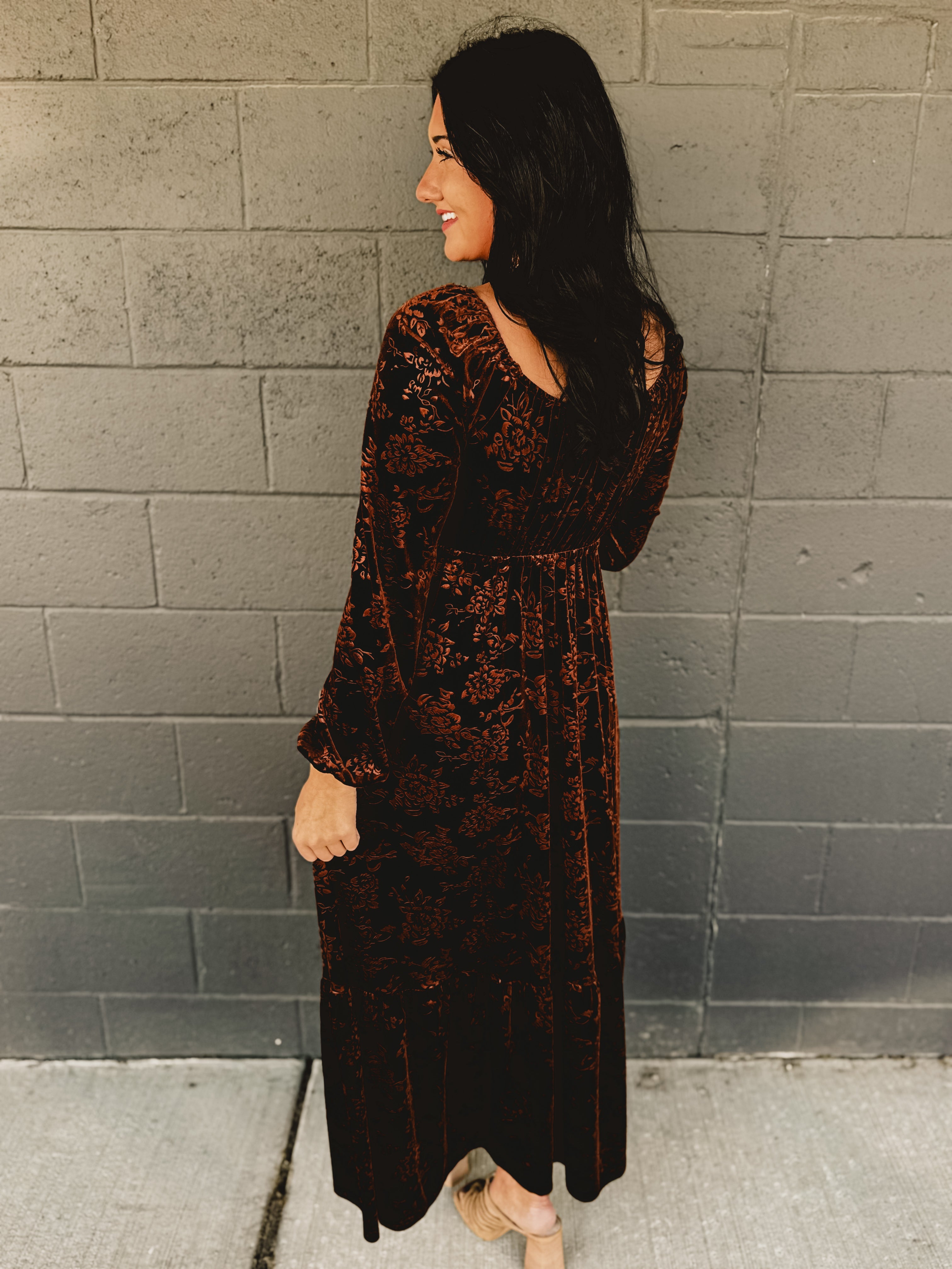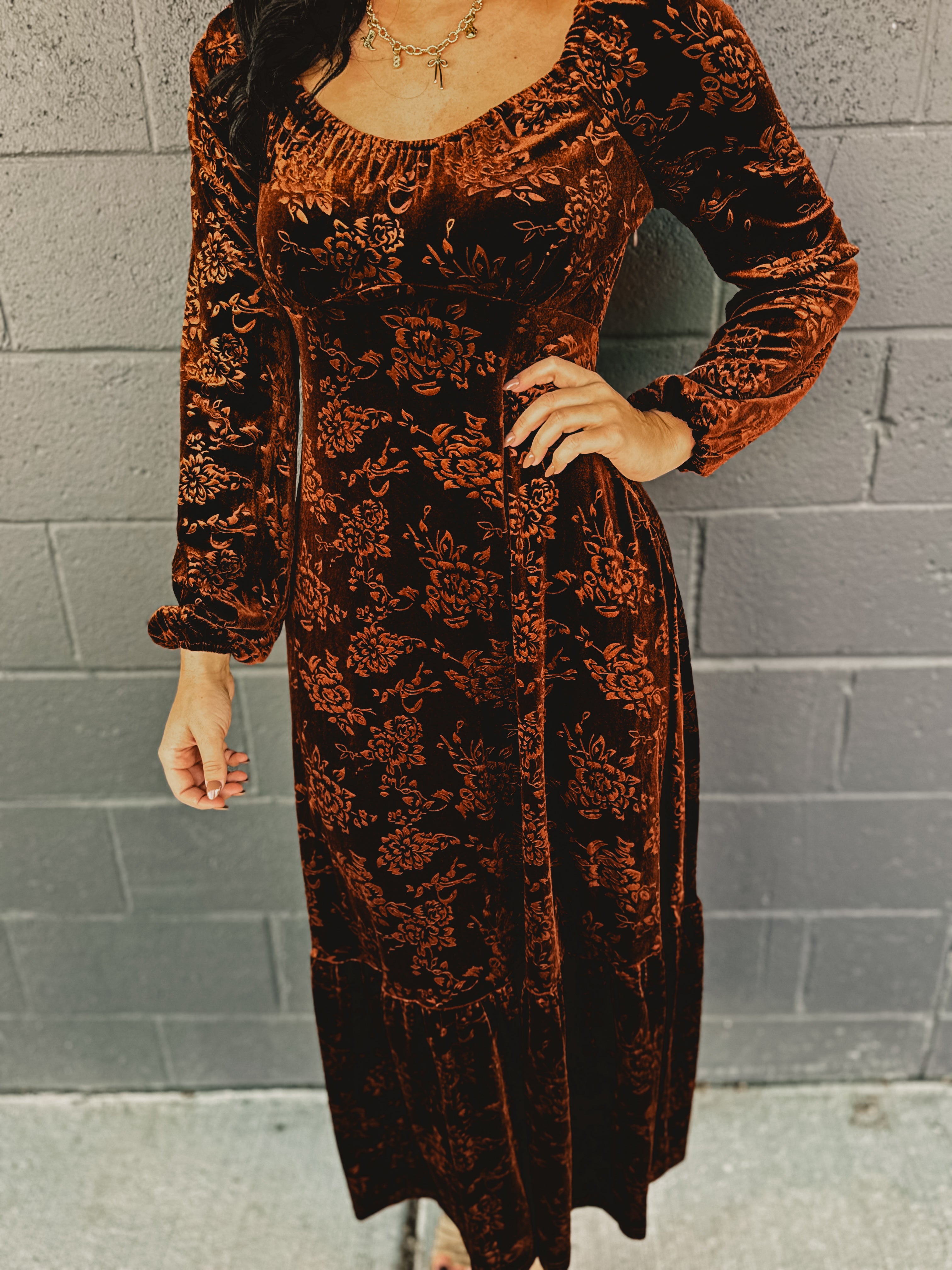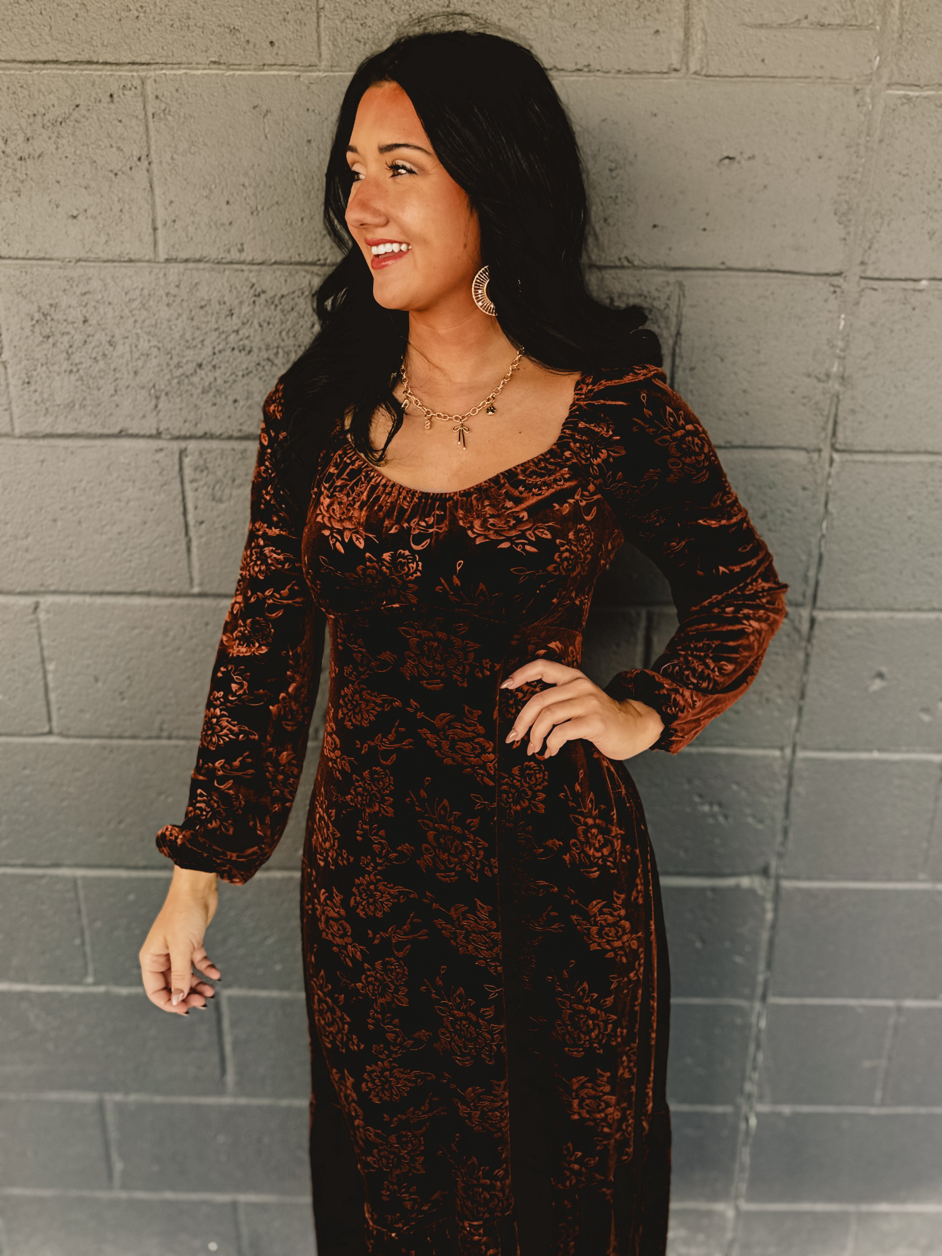 Velvet Embossed Long Sleeve Maxi Dress - Mocha