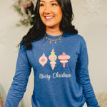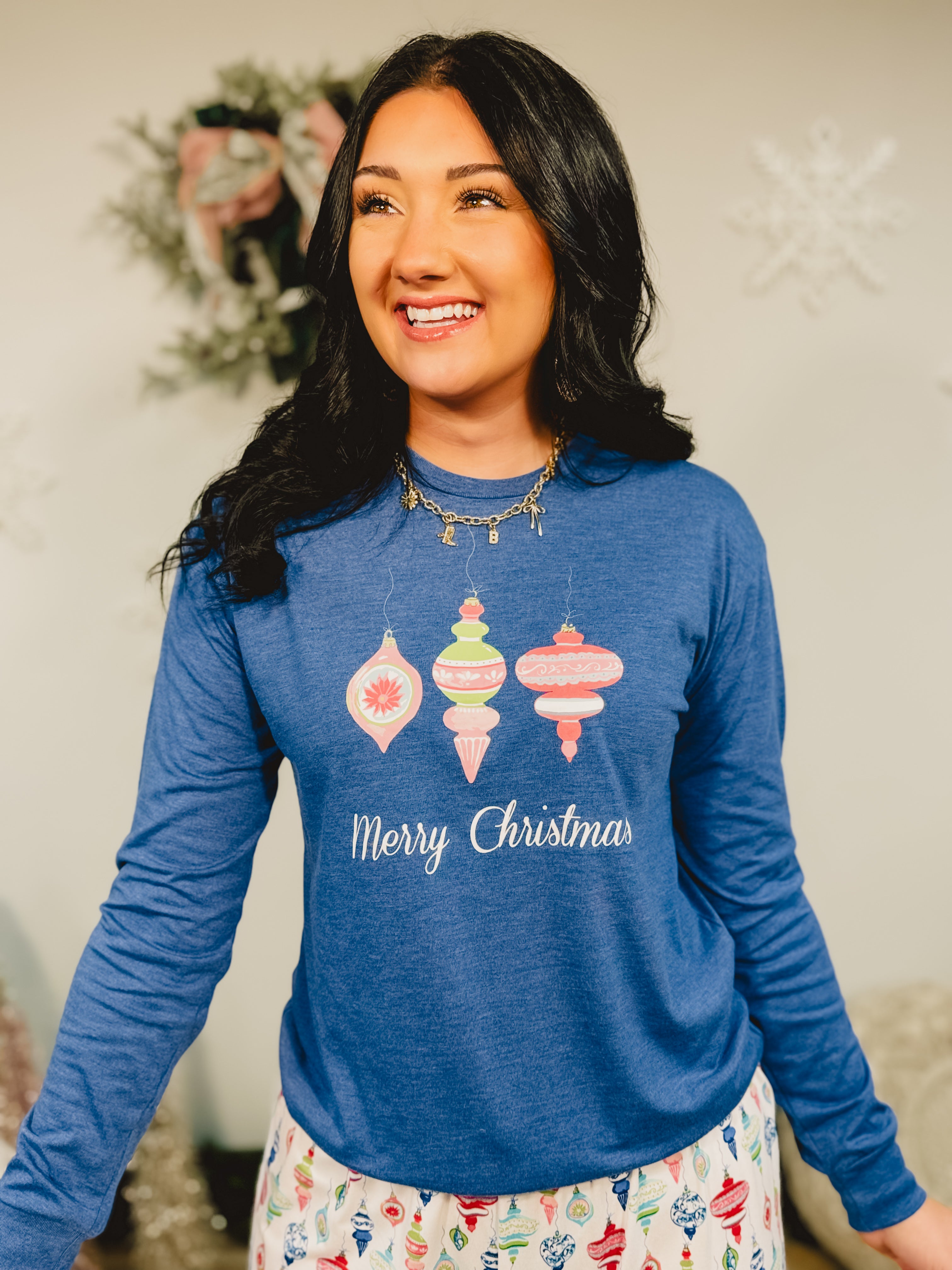Cozy up in festive style with this long sleeve crewneck featuring a playful vintage ornament design. Its soft tri-blend fabric makes it the perfect go-to for holiday comfort. Grab a pair of the Vintage Ornament shorts and make it a set!